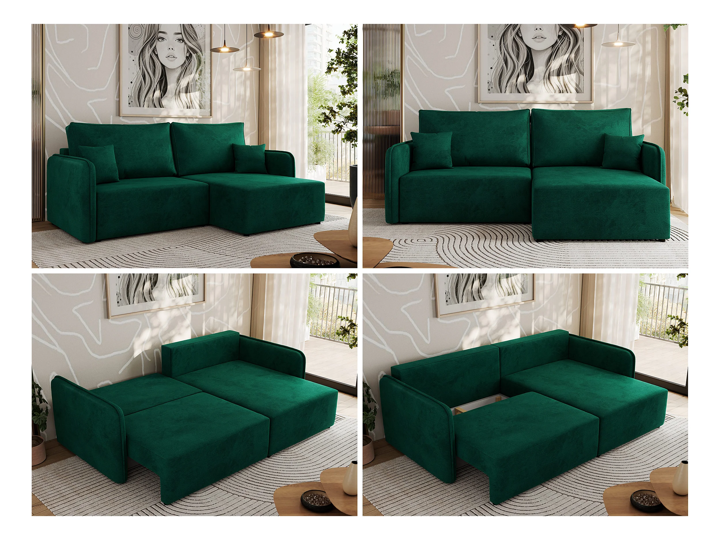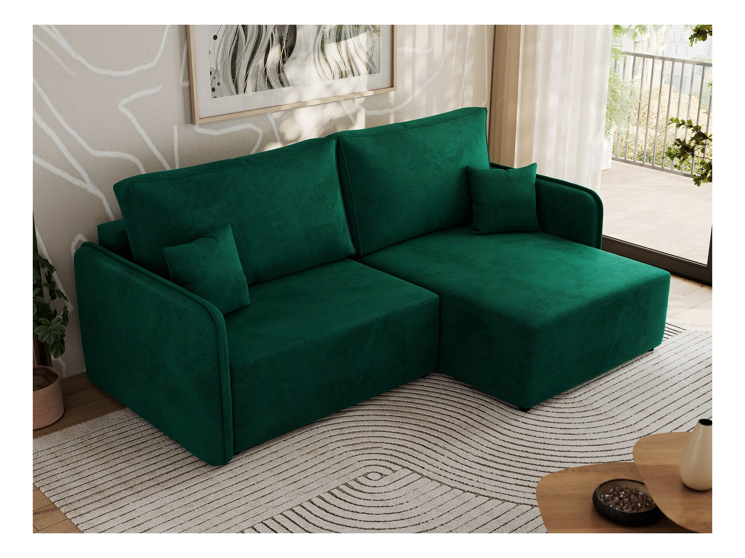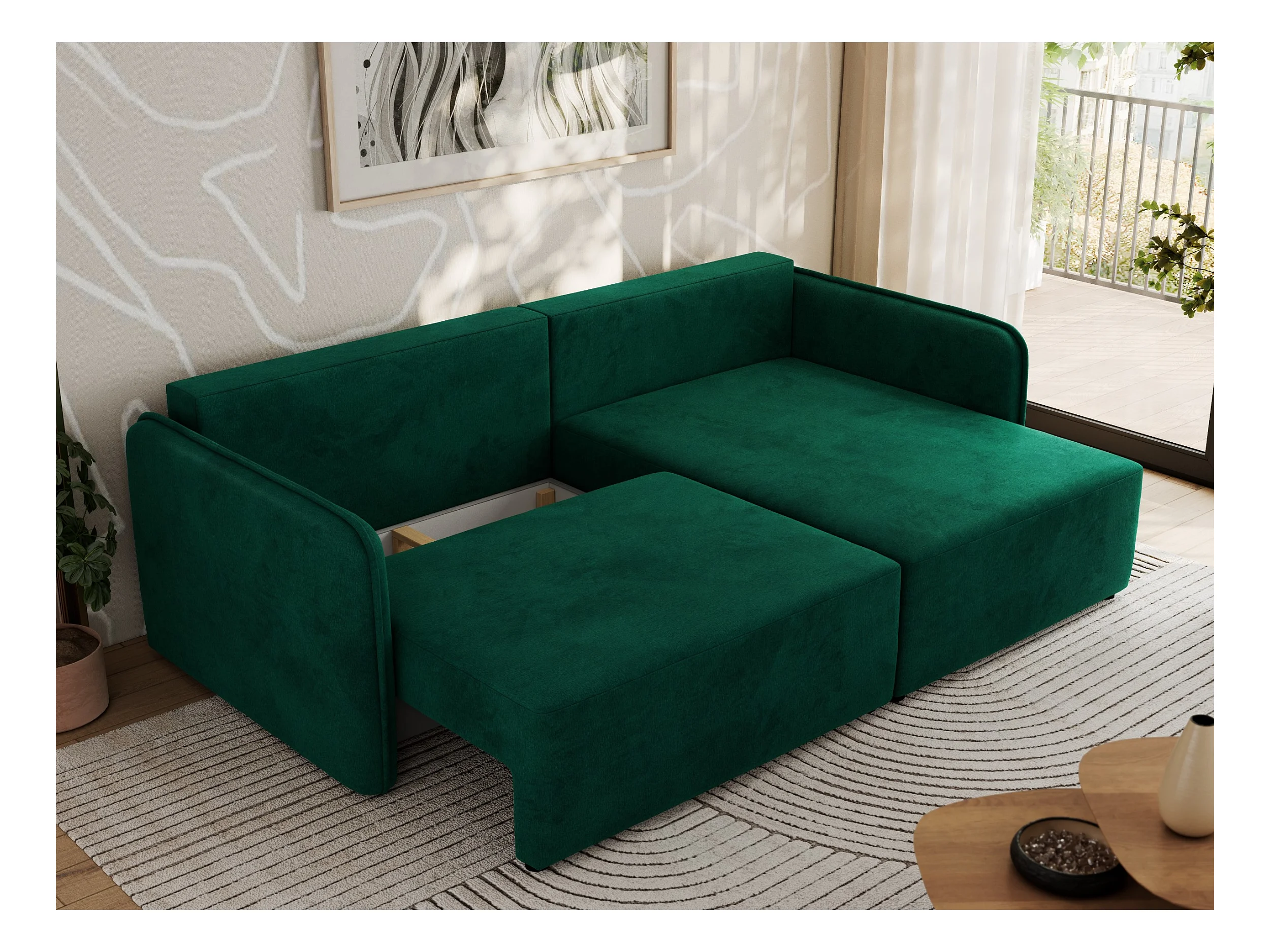 Ecksofa MESTO - Schlaffunktion und Bettkasten, L-form Couch für das Wohnzimmer, Armlehnen - Dunkelgrün Velvet - Ecke Rechts