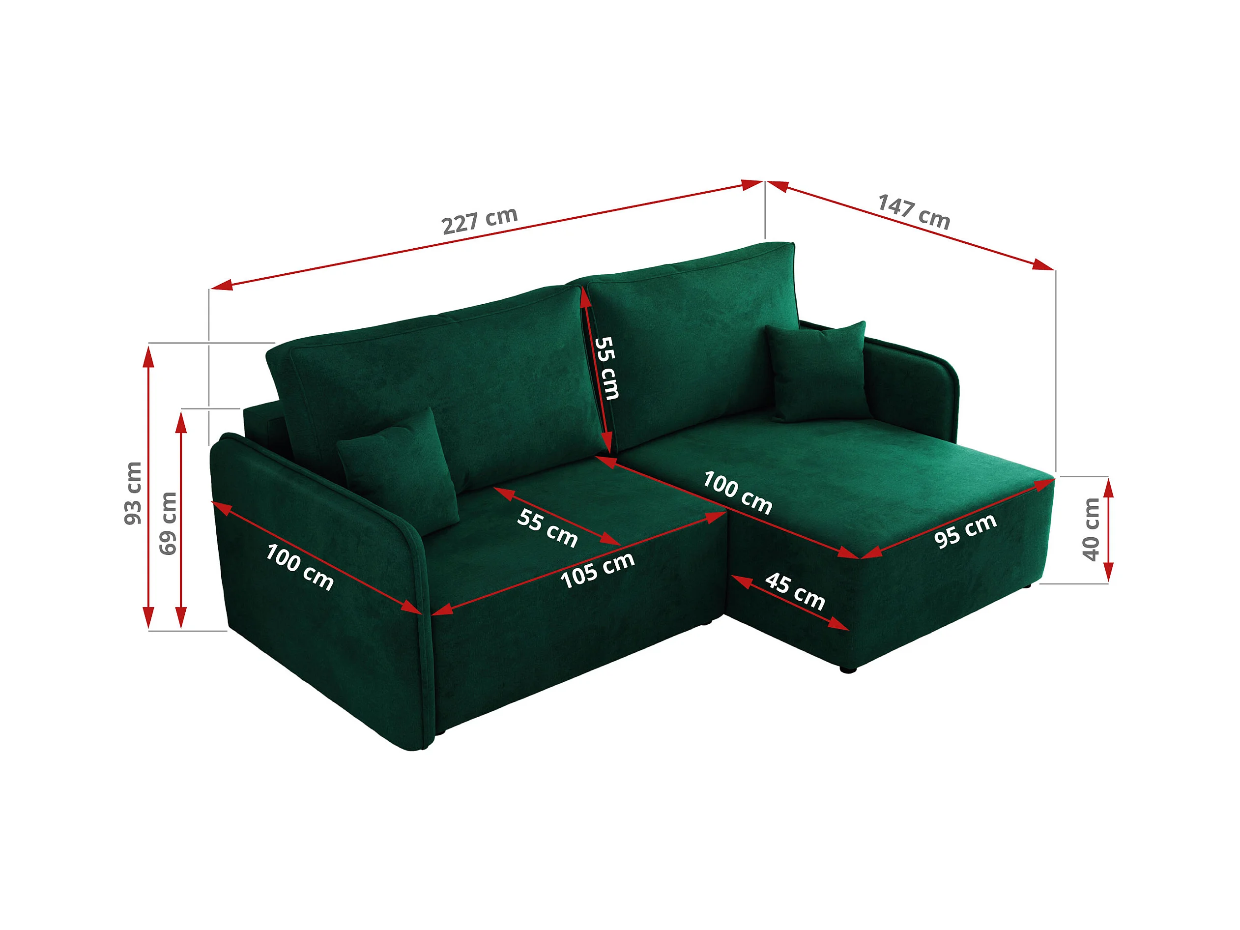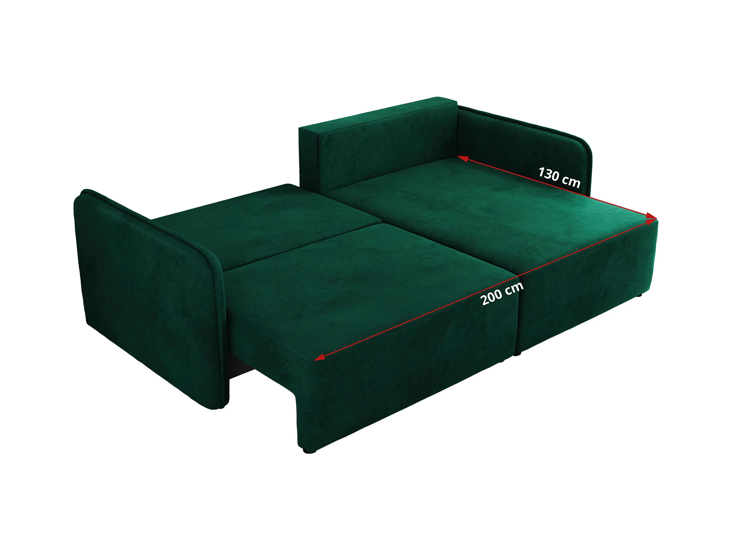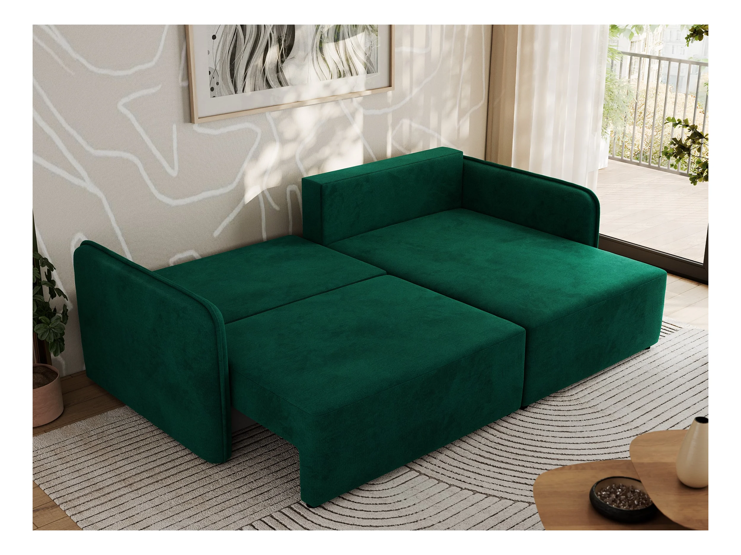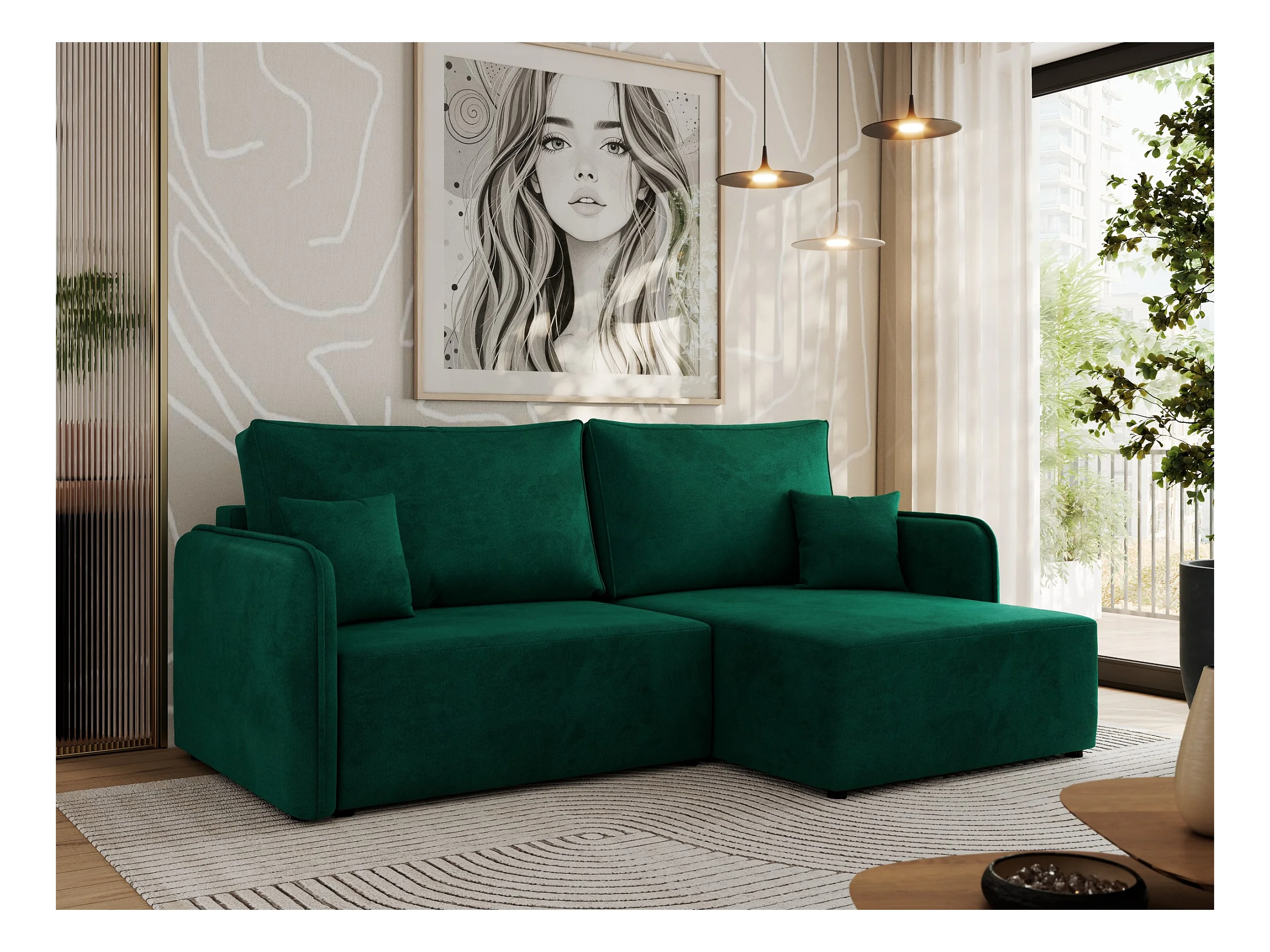 Ecksofa MESTO - Schlaffunktion und Bettkasten, L-form Couch für das Wohnzimmer, Armlehnen - Dunkelgrün Velvet - Ecke Rechts
