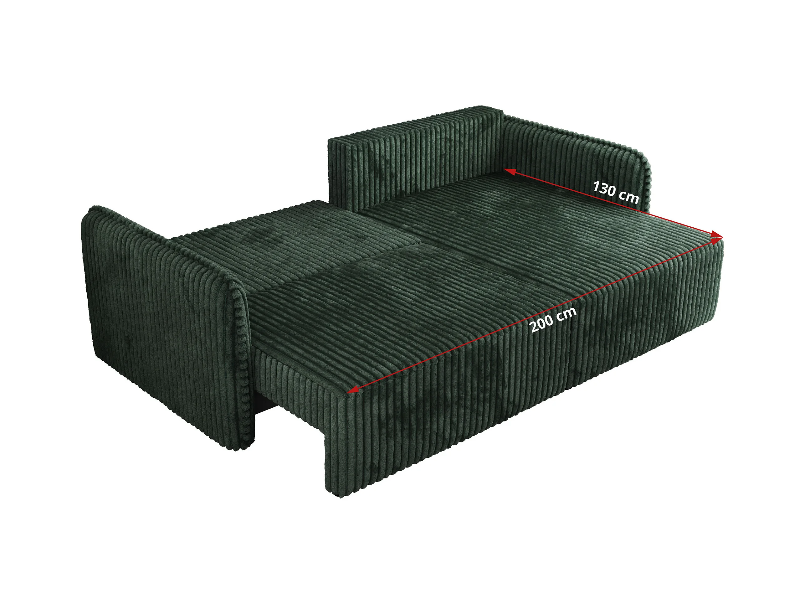 Ecksofa MESTO - Schlaffunktion und Bettkasten, L-form Couch für das Wohnzimmer, Armlehnen - Grün Cord - Ecke Links
