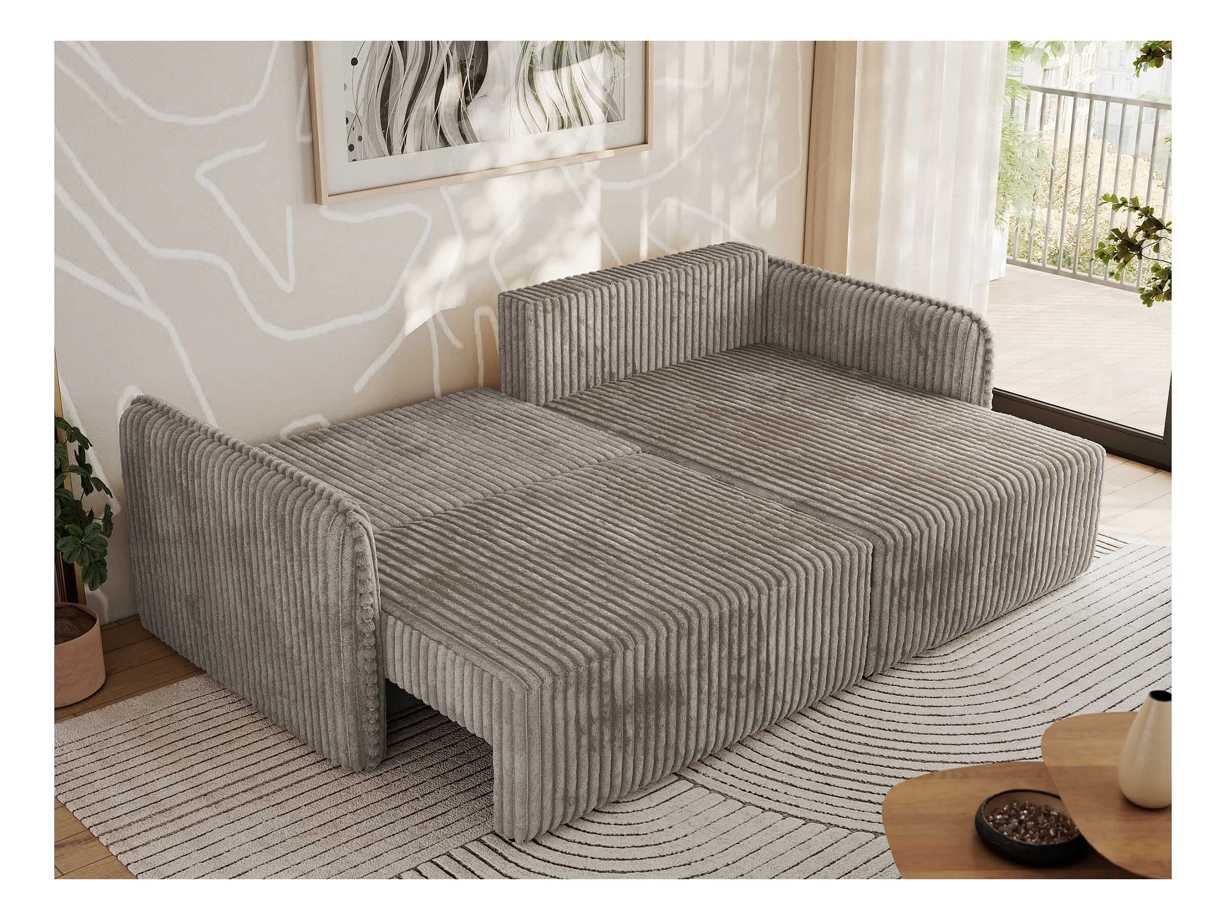 Ecksofa MESTO - Schlaffunktion und Bettkasten, L-form Couch für das Wohnzimmer, Armlehnen - Hellbraun Cord - Ecke Rechts
