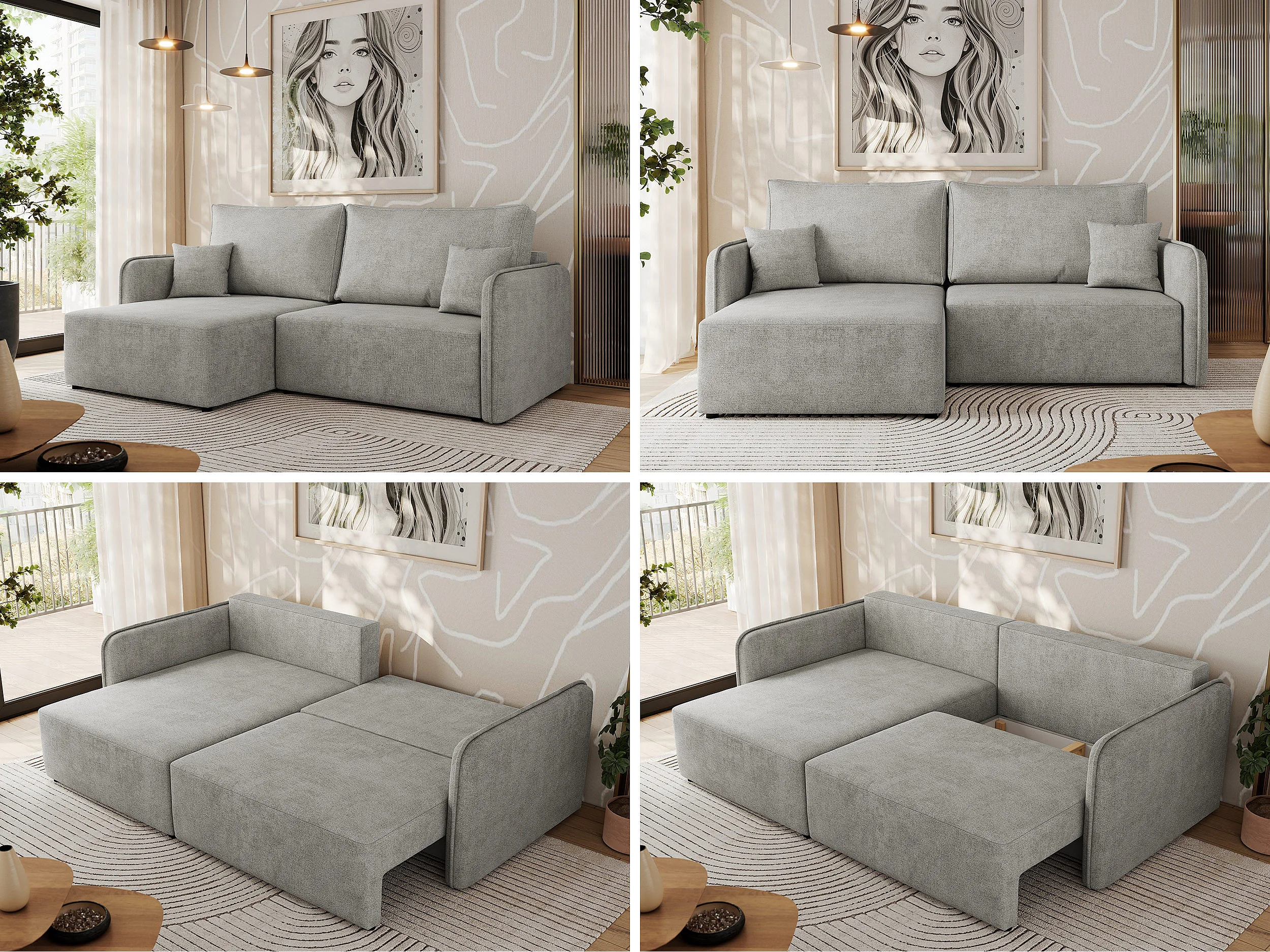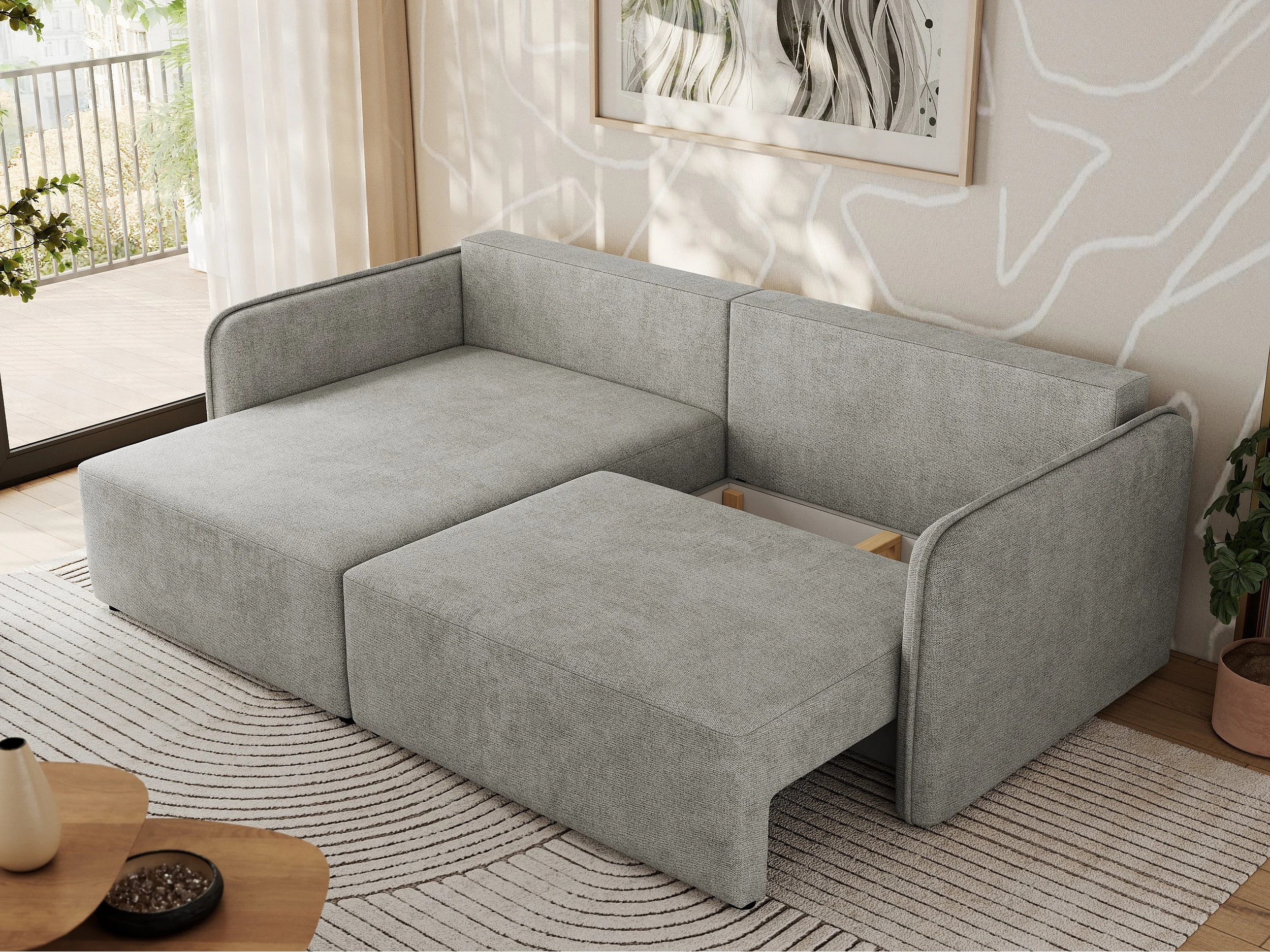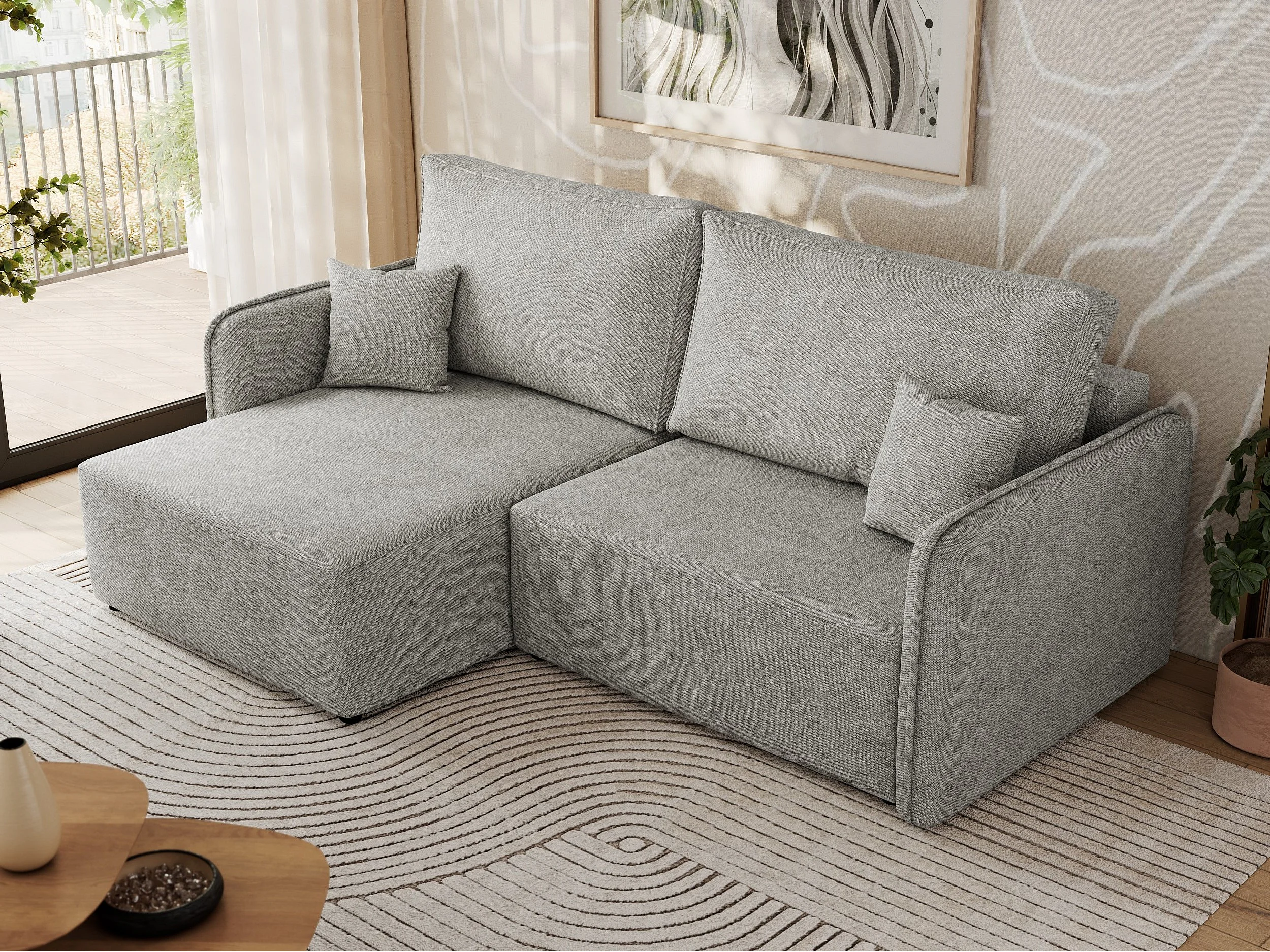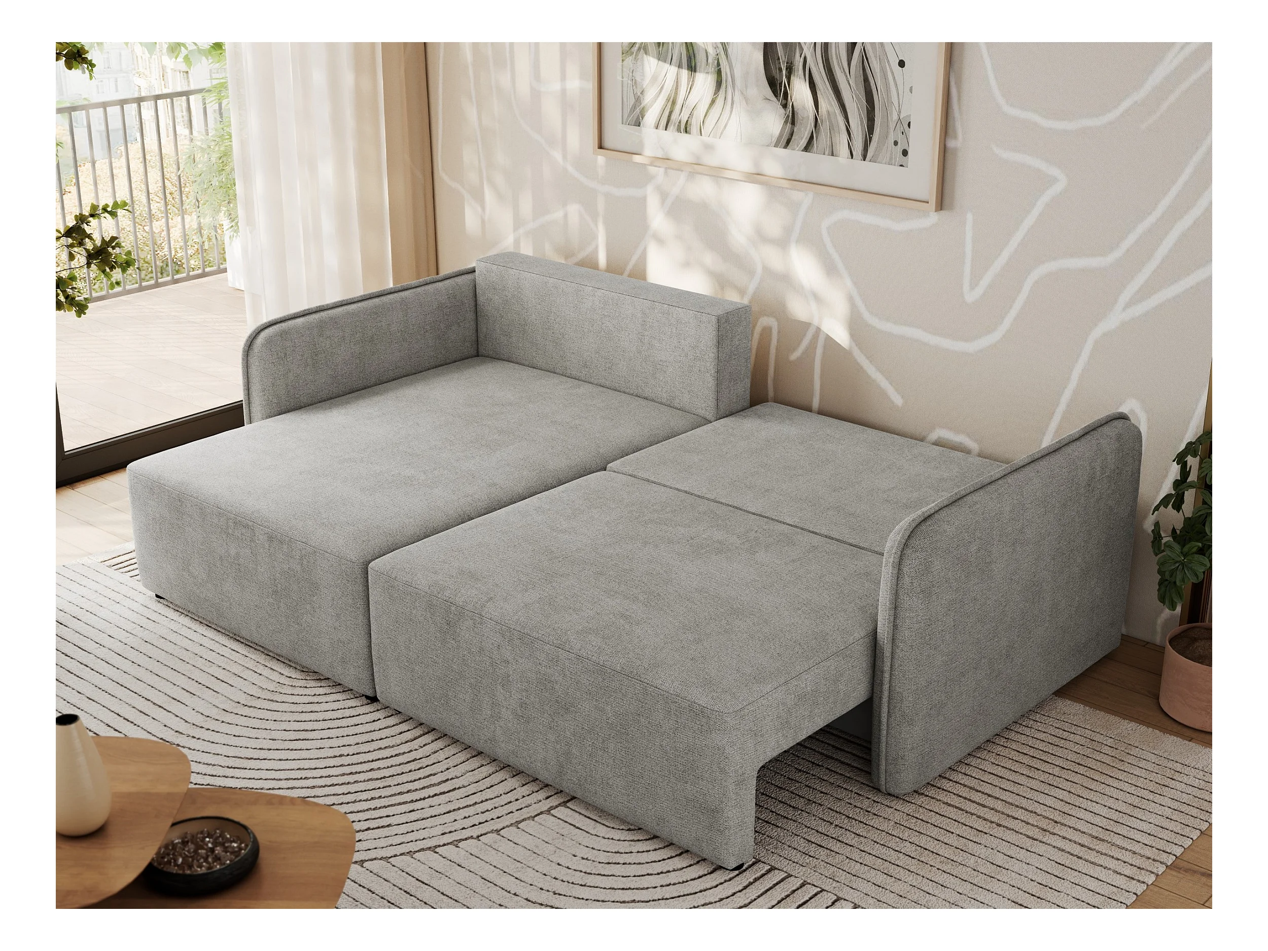 Ecksofa MESTO - Schlaffunktion und Bettkasten, L-form Couch für das Wohnzimmer, Armlehnen - Hellgrau Struktur - Ecke Links