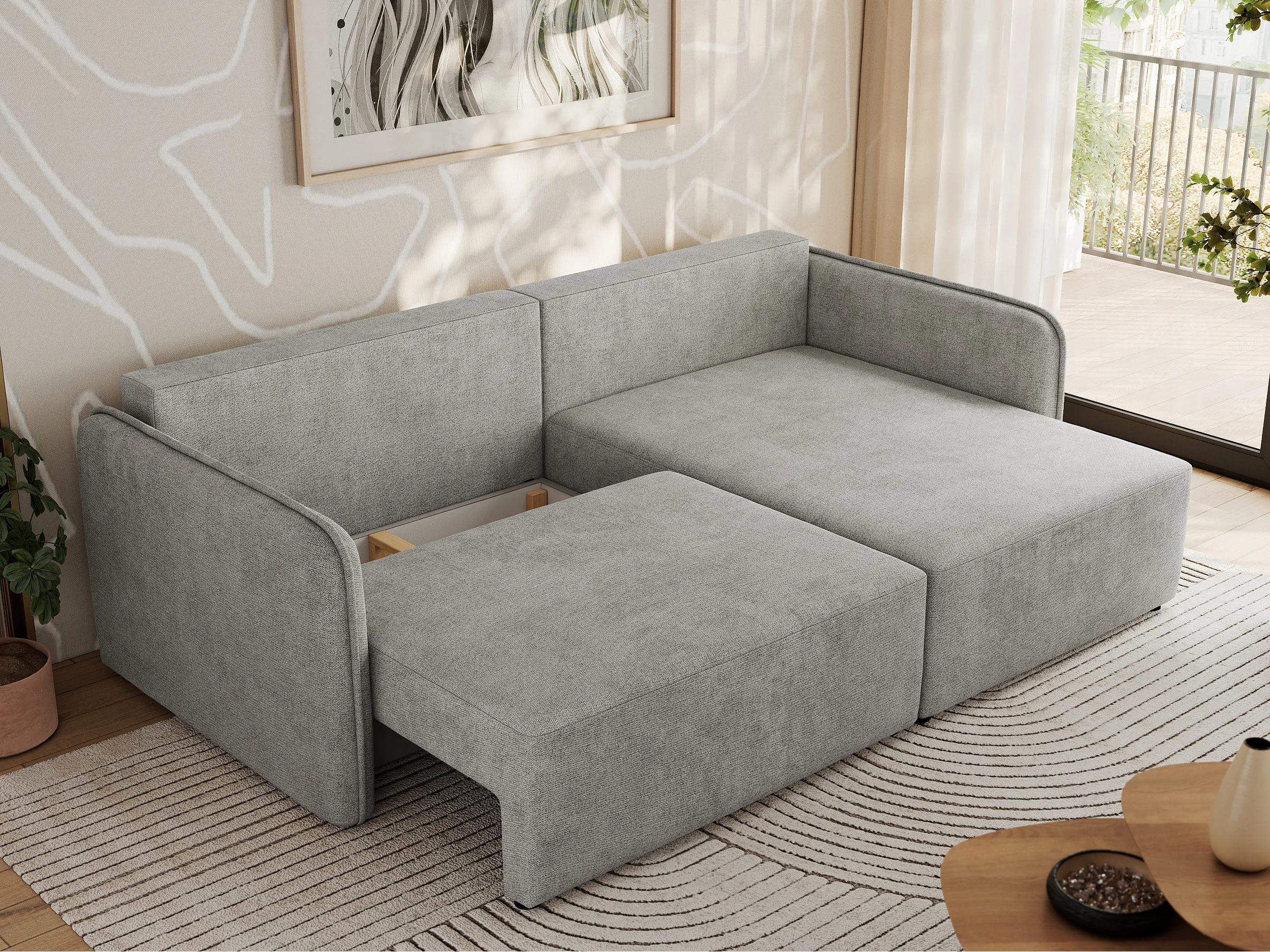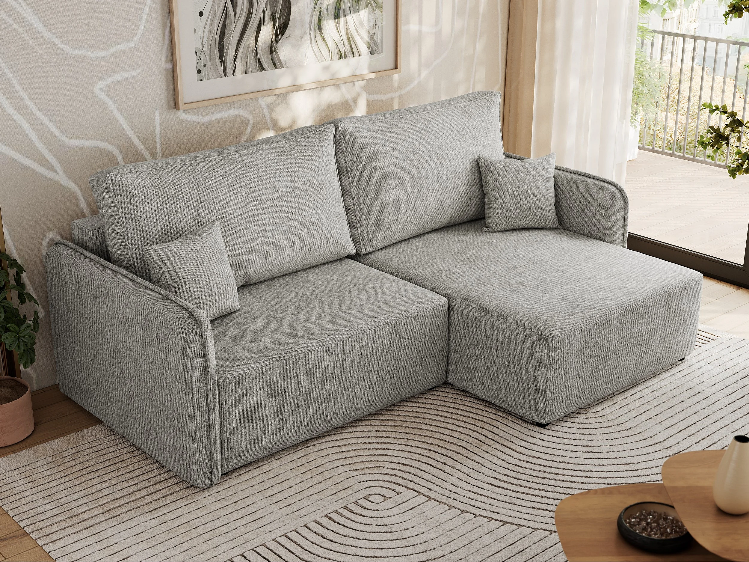 Ecksofa MESTO - Schlaffunktion und Bettkasten, L-form Couch für das Wohnzimmer, Armlehnen - Hellgrau Struktur - Ecke Rechts