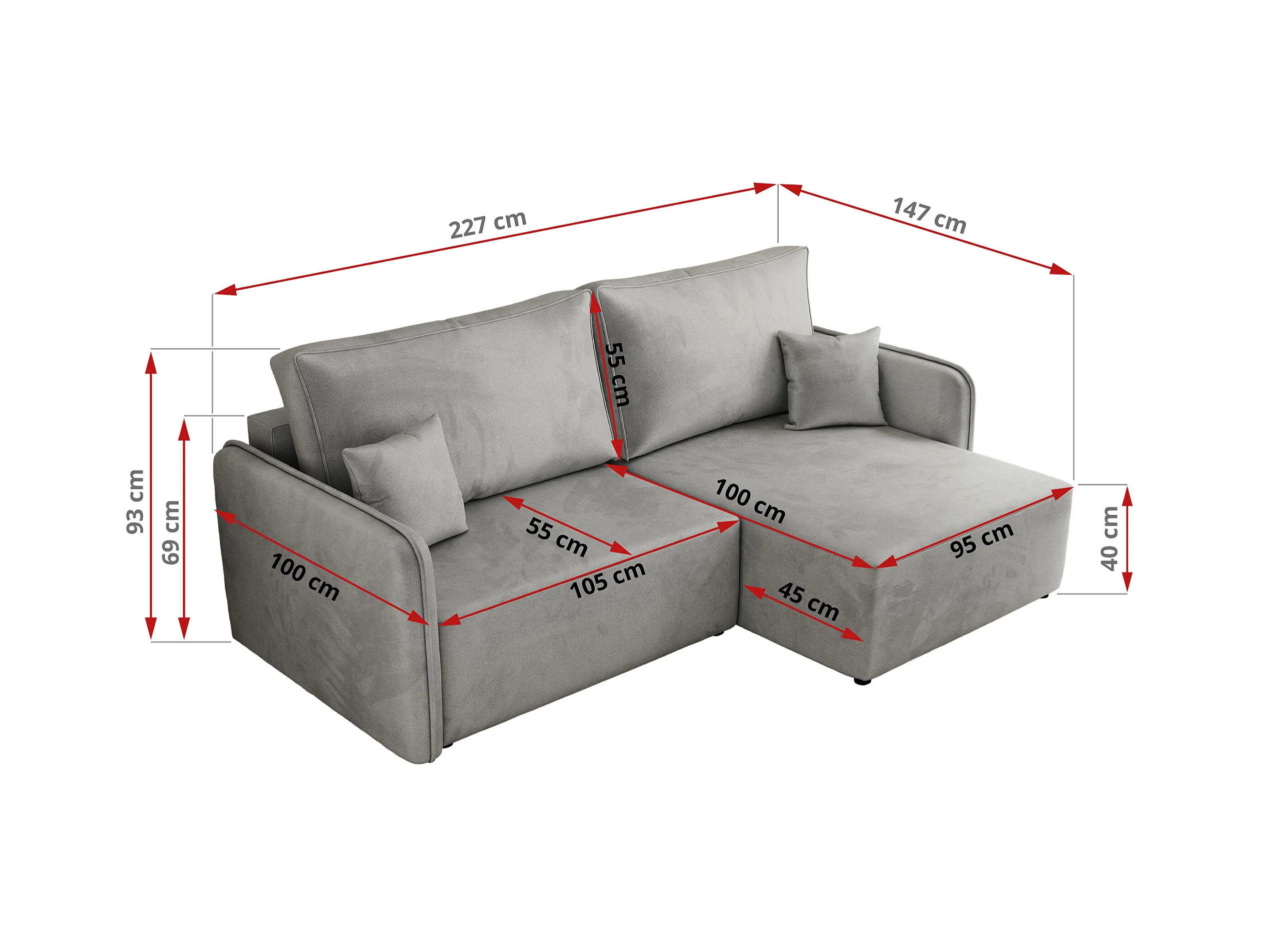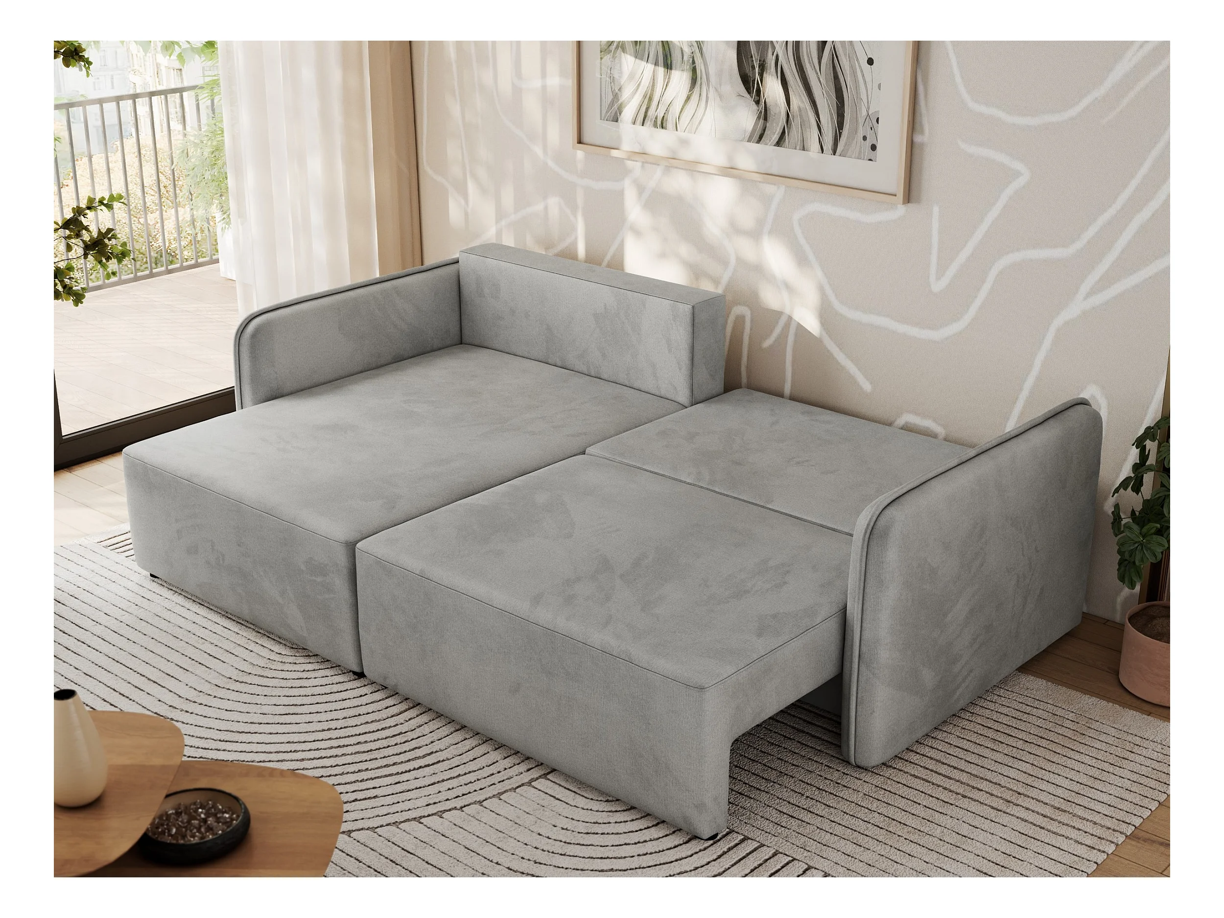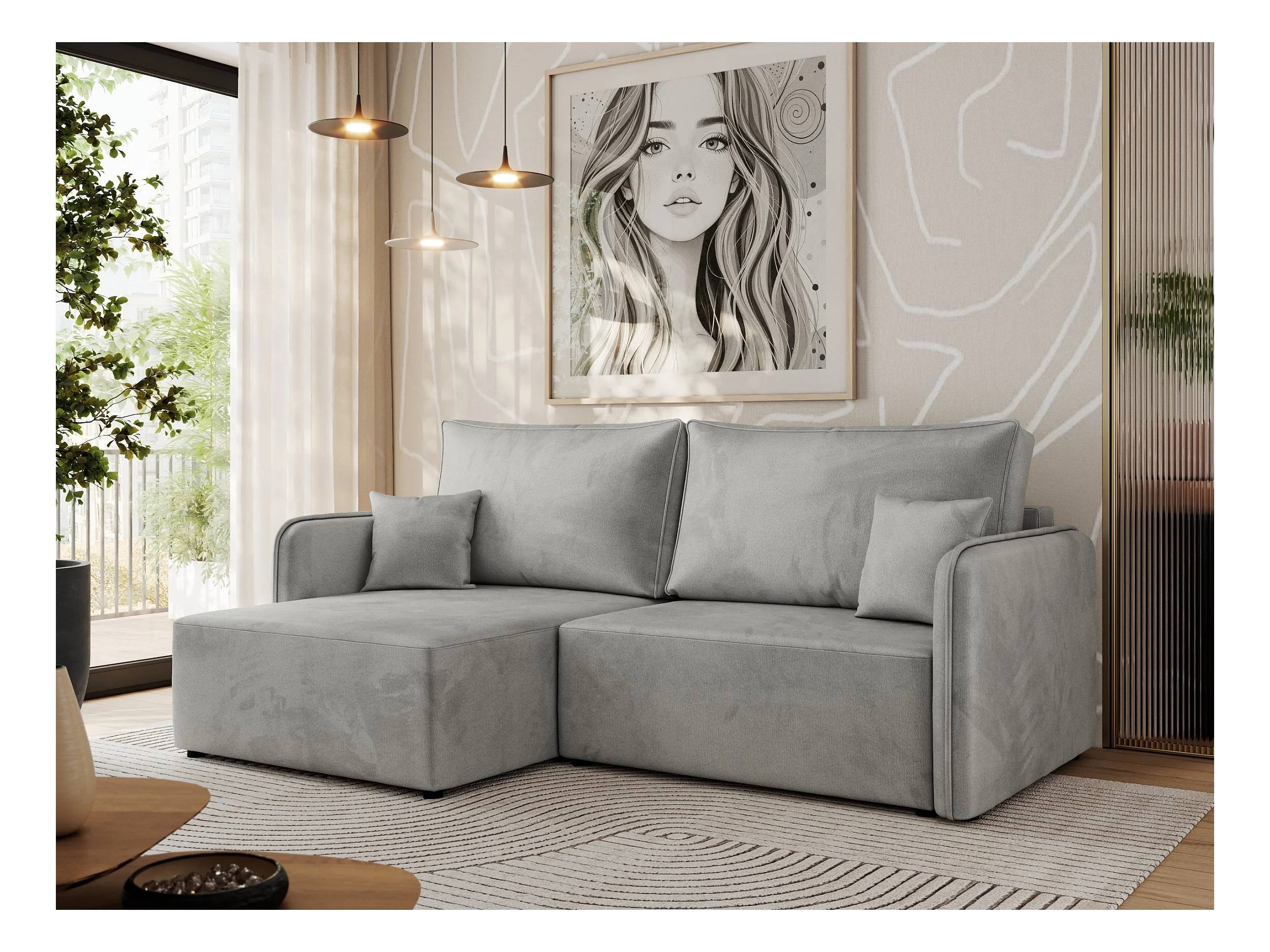 Ecksofa MESTO - Schlaffunktion und Bettkasten, L-form Couch für das Wohnzimmer, Armlehnen - Hellgrau Velvet - Ecke Links