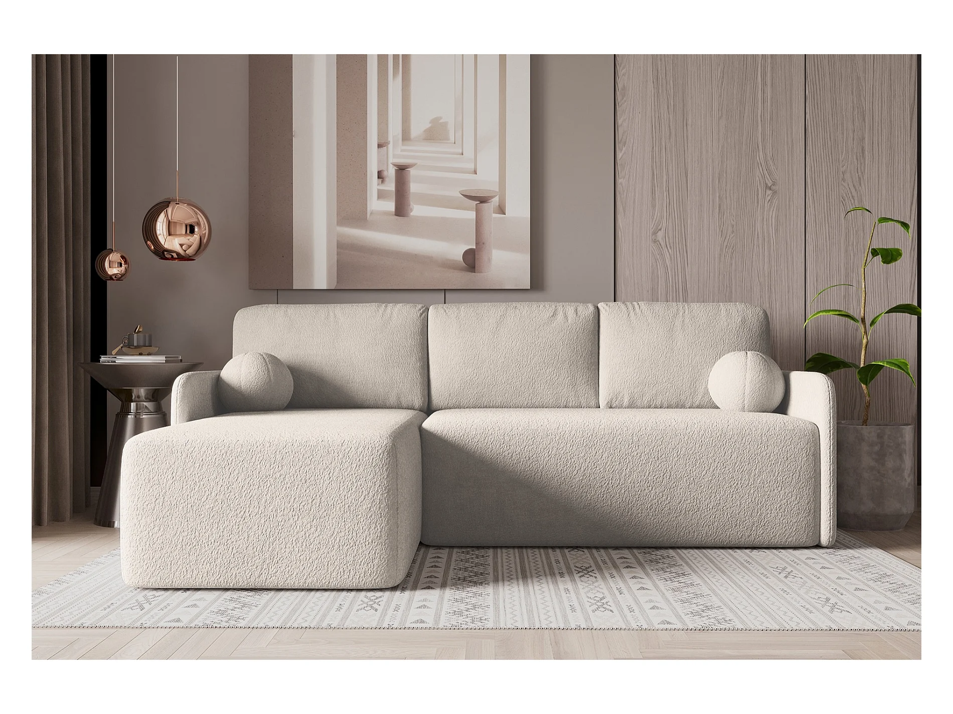 Ecksofa mit Schlaffunktion - Bouclé-Bezug in Beige - BLOOM