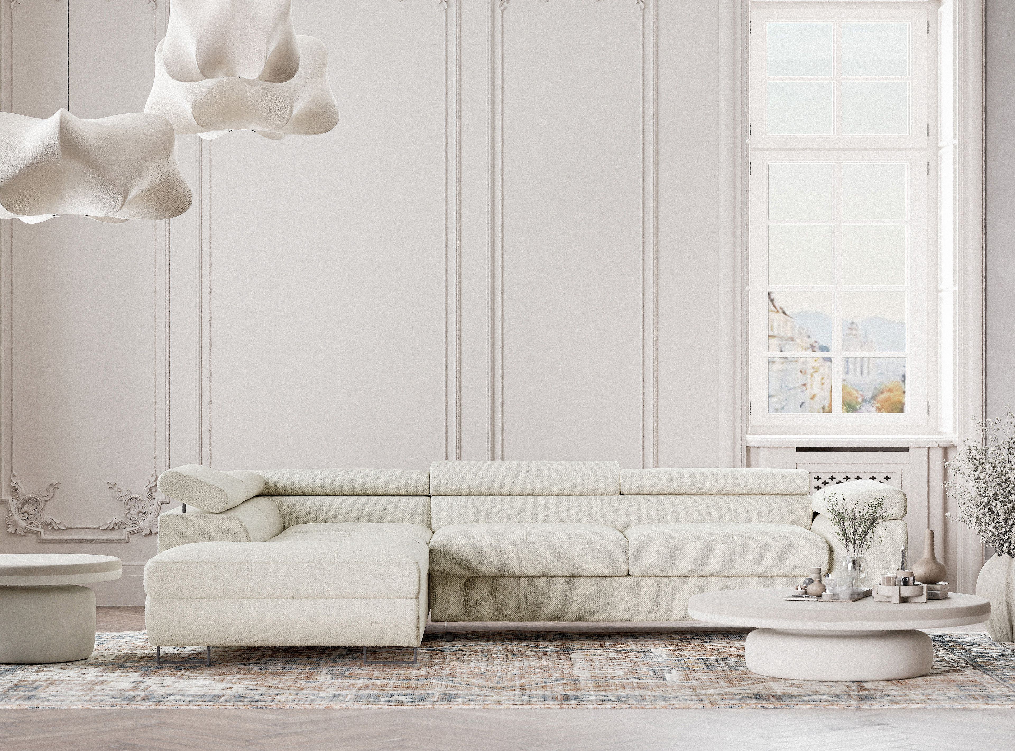 Ecksofa mit Schlaffunktion Concord aus Webstoff - Vier-Personen - creme