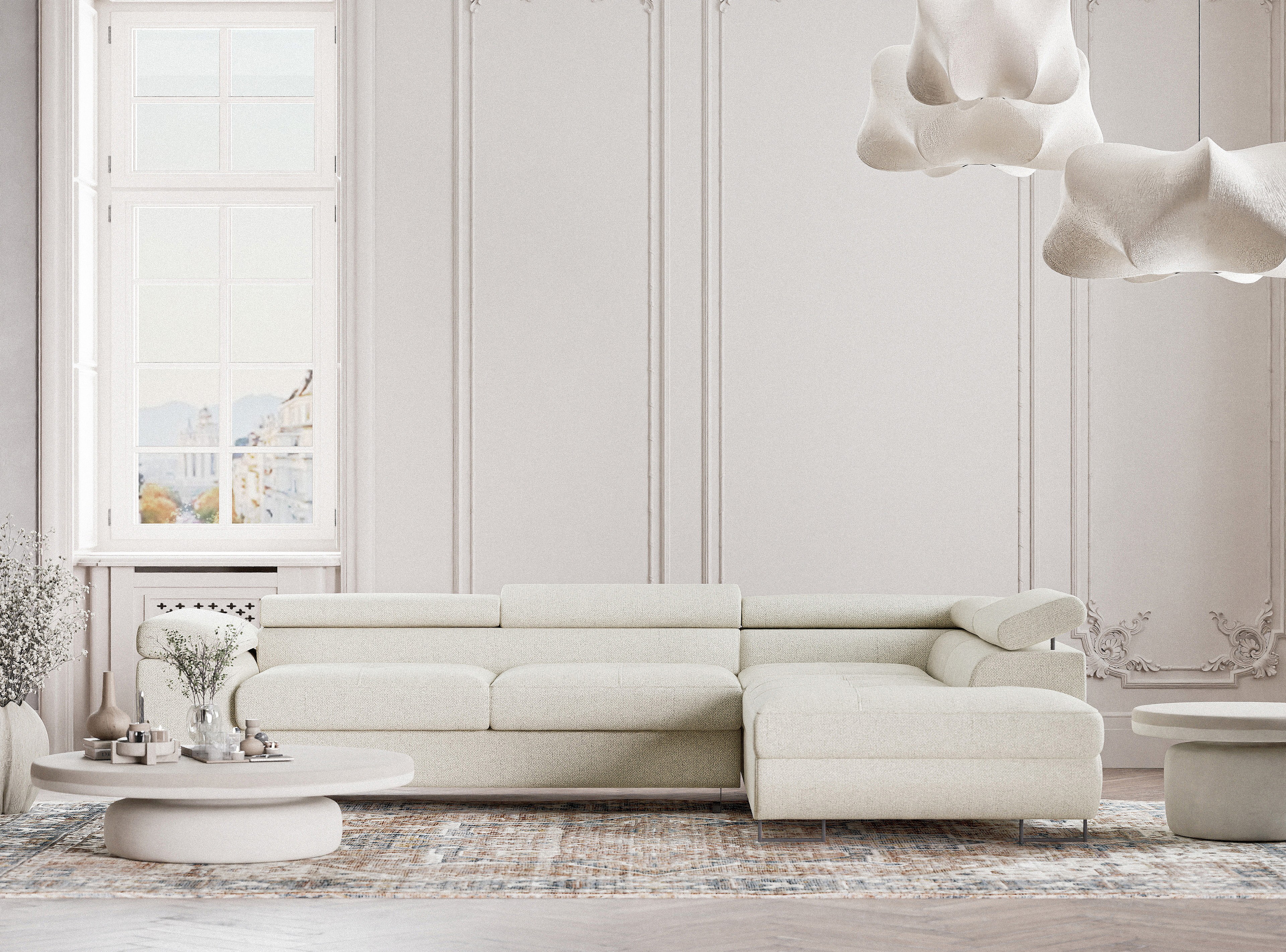 Ecksofa mit Schlaffunktion Concord aus Webstoff - Vier-Personen - creme