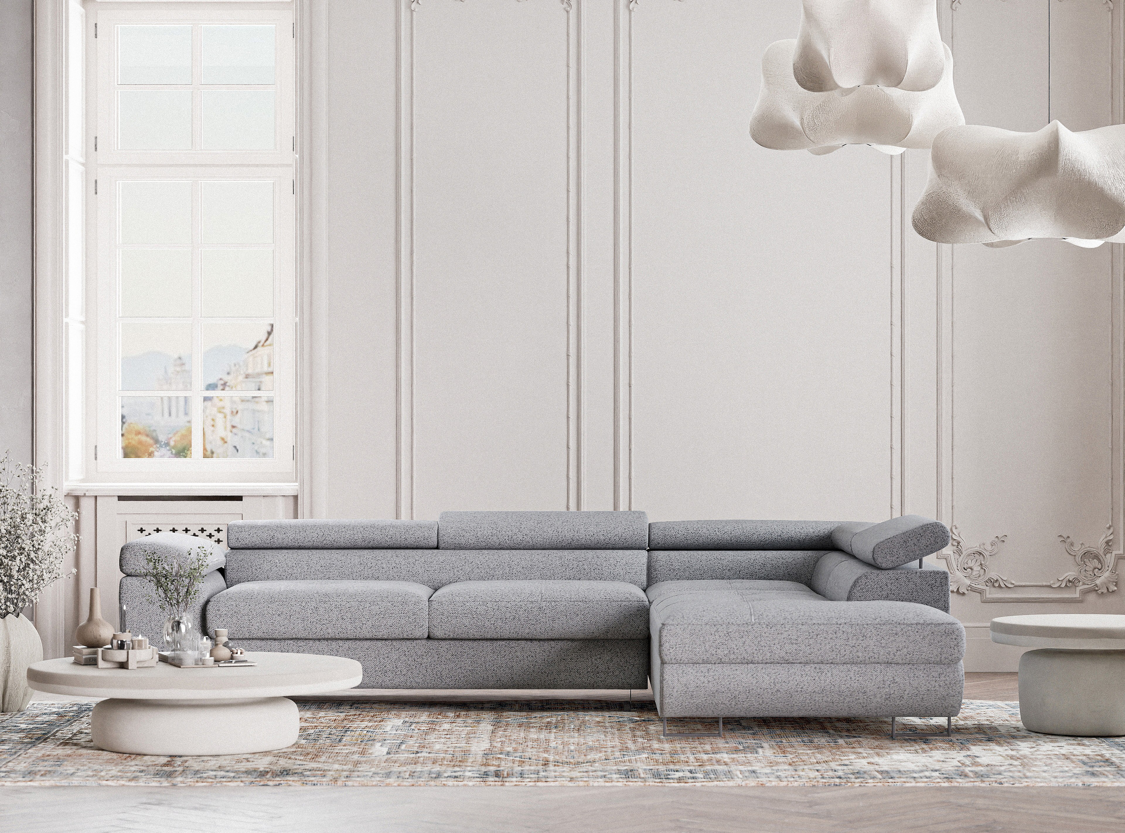 Ecksofa mit Schlaffunktion Concord aus Webstoff - Vier-Personen - hellgrau