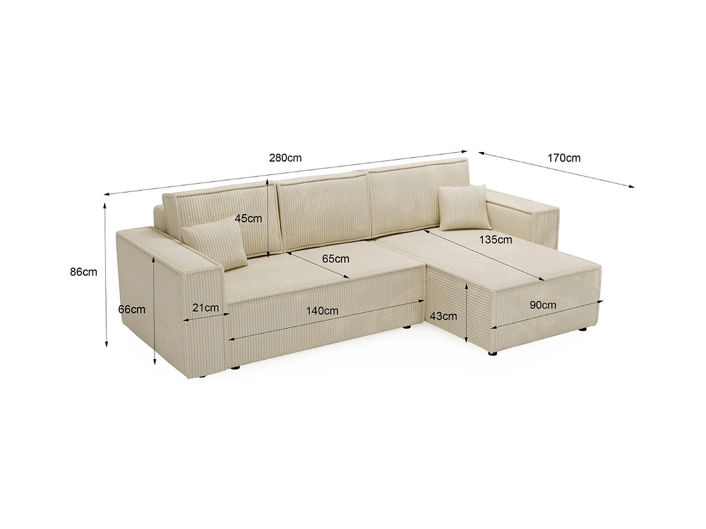 Ecksofa mit Schlaffunktion - Cord - Braun - PRATO XL