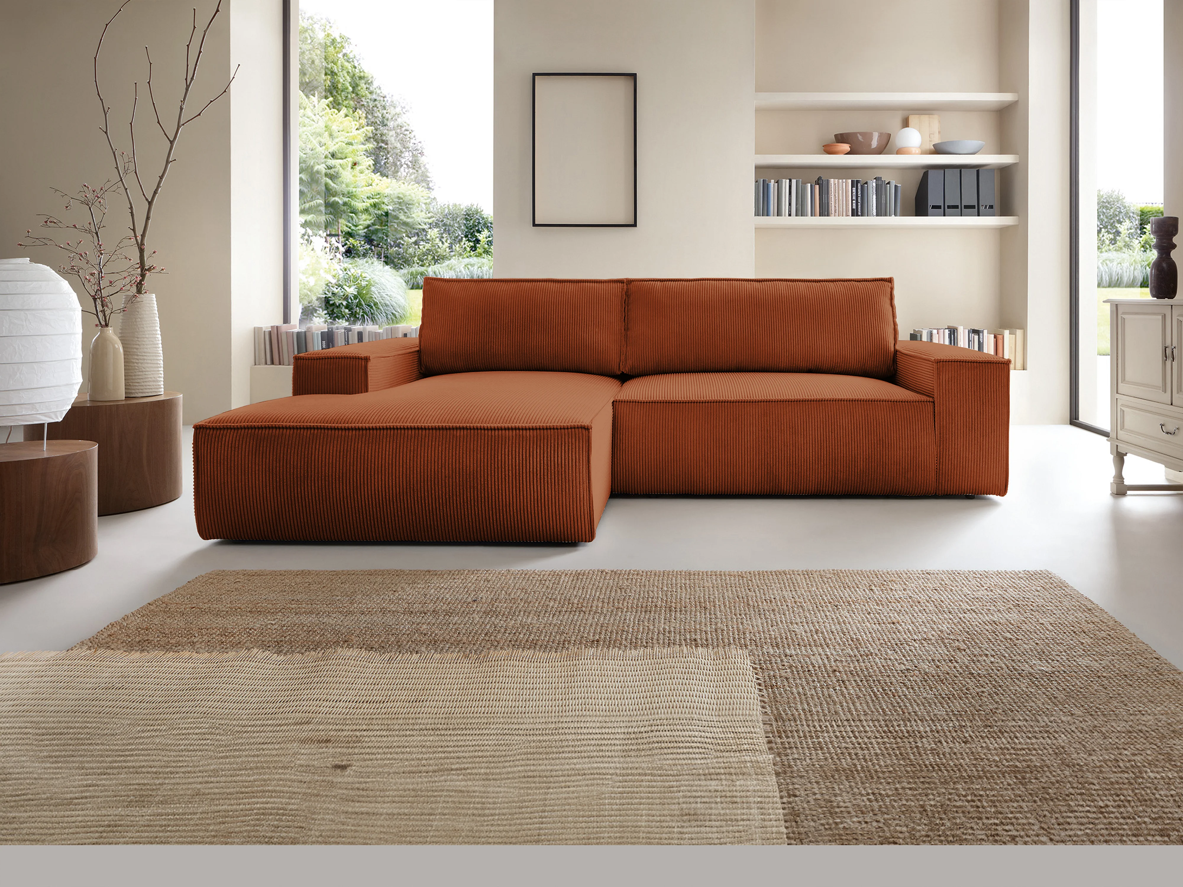 Ecksofa mit Schlaffunktion - Ecke links - Cord - Terracotta - AMELIA