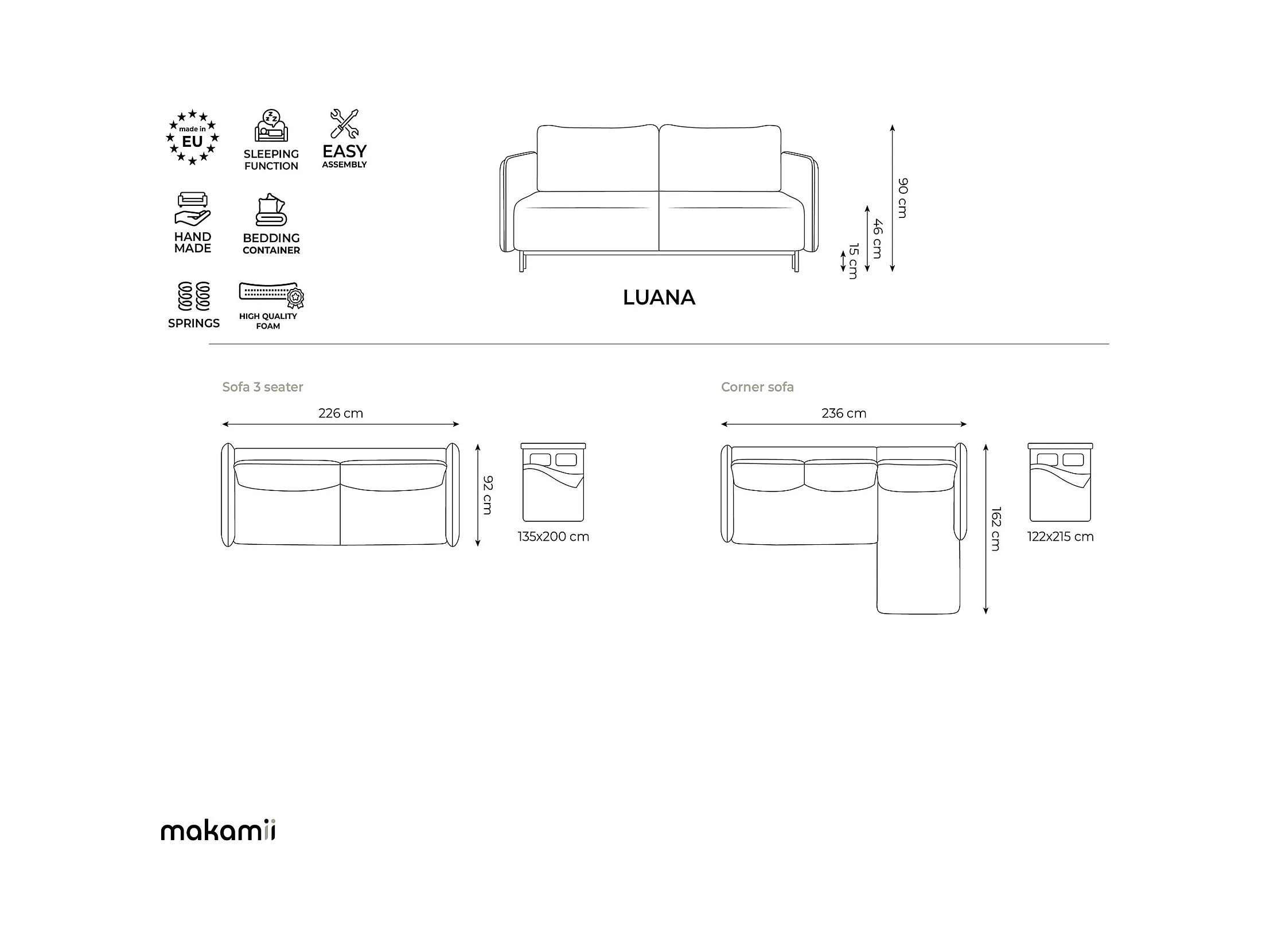 Ecksofa mit Schlaffunktion - Ecke Rechts - Strukturstoff - Flaschengrün - LUANA