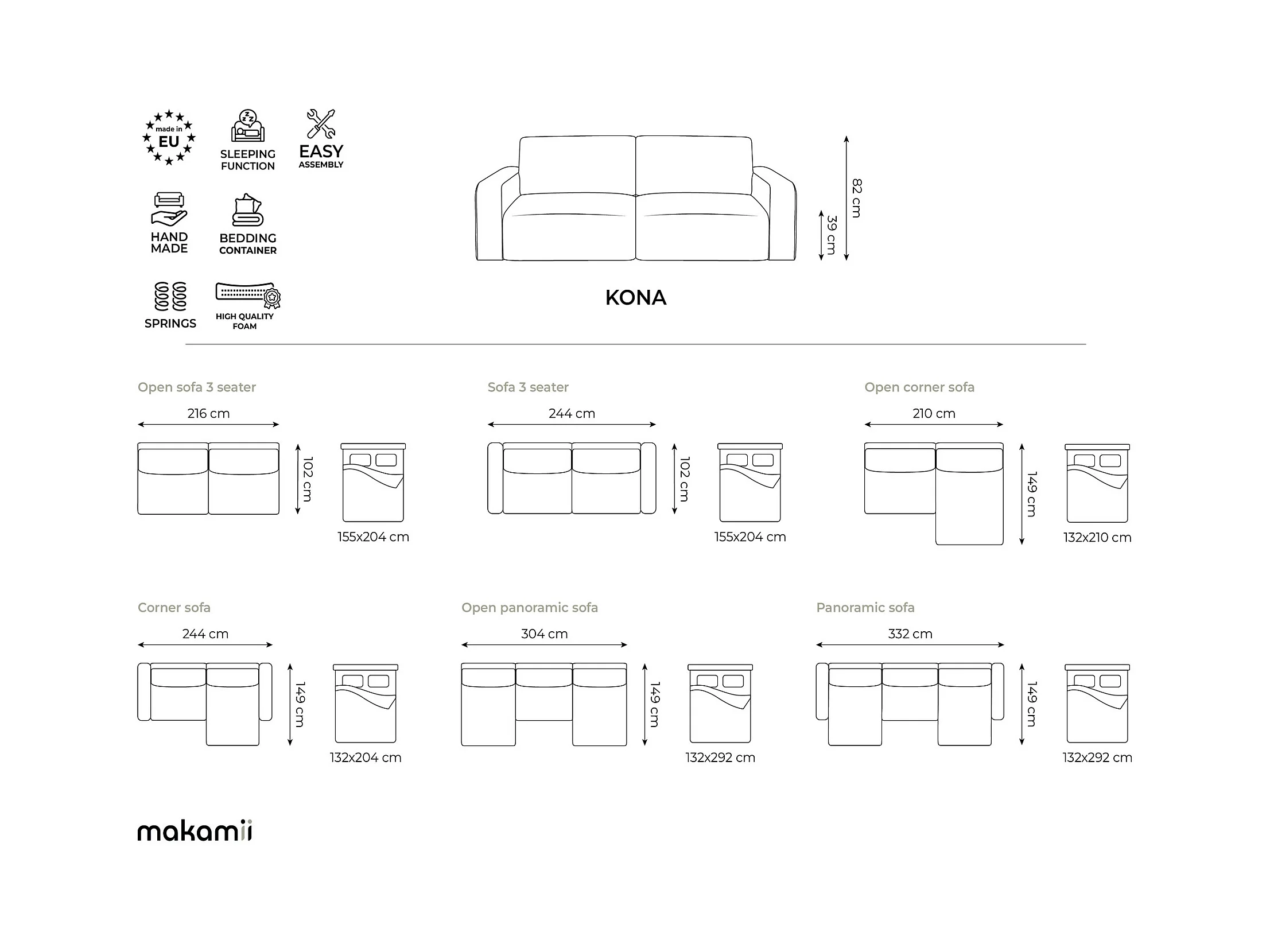 3-Sitzer Ecksofa mit Schlaffunktion - Ecke Links - Chenille - Limettengrün - KONA