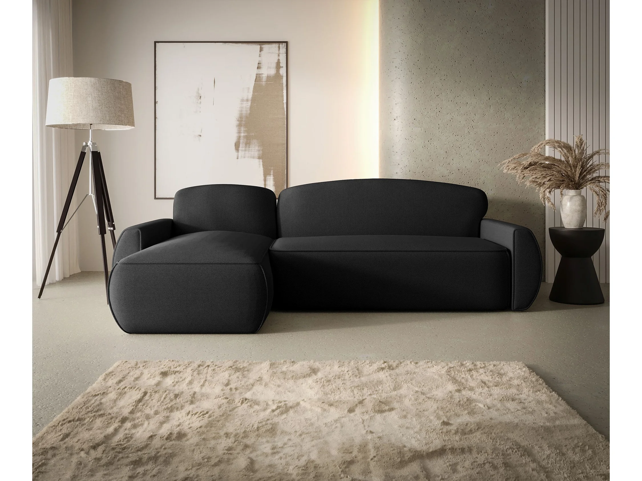 ECKSOFA mit Schlaffunktion LUCAS Curio 99 Schwarz Links L-Form Sofa mit Stauraum Bettkasten Wohnzimmersofa Couch Sofa Bettsofa Bettkasten Bettcouch