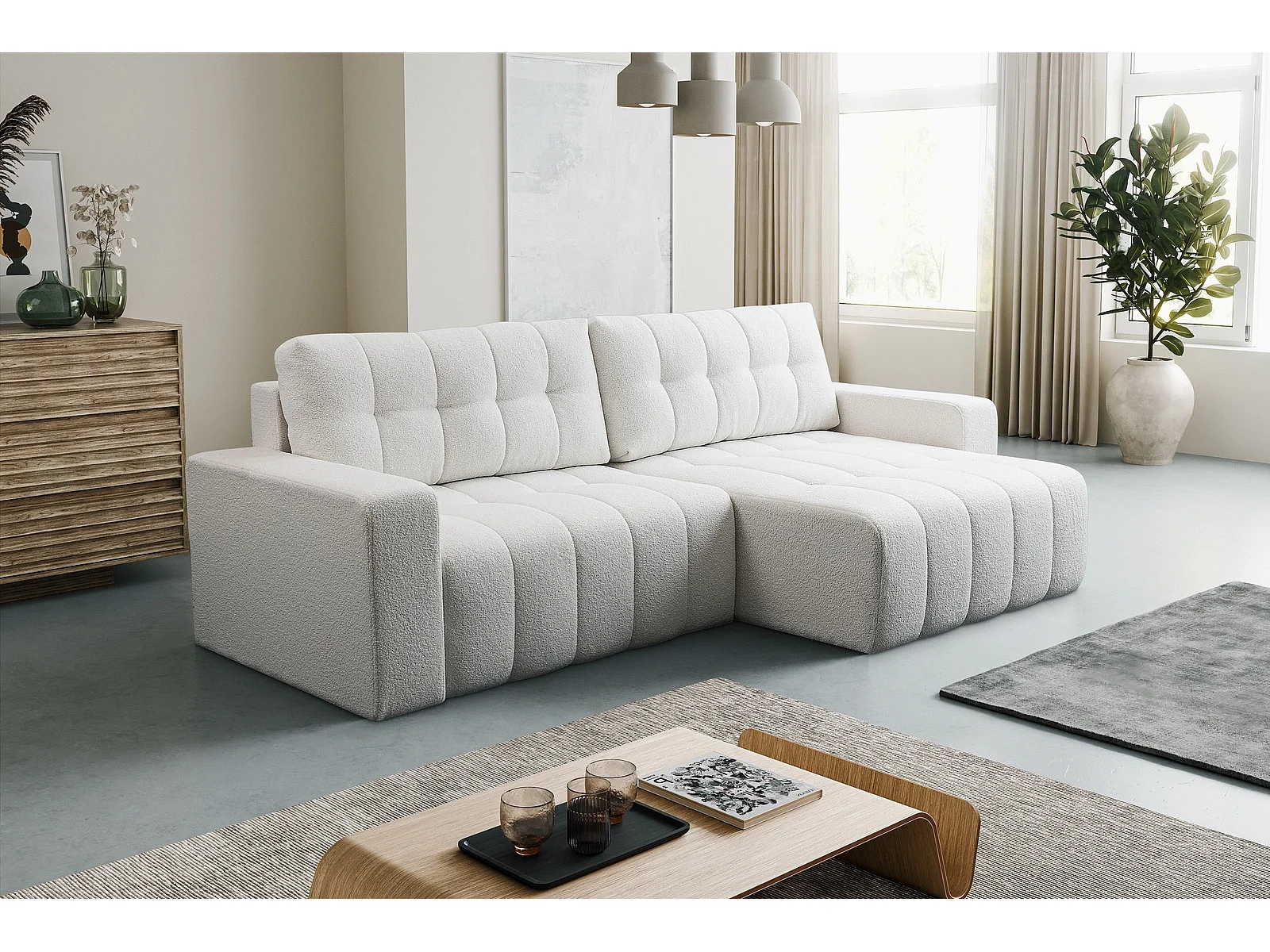 Ecksofa mit Schlaffunktion Palermo - Stoff Weiß Bravo 21 - Bettkasten