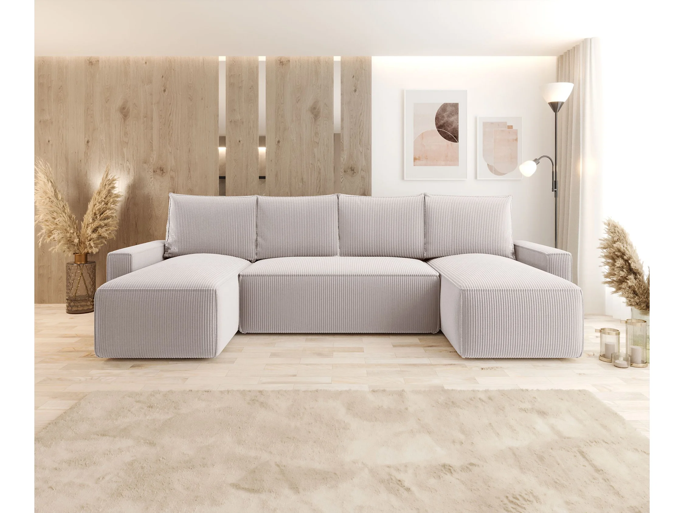 ECKSOFA mit Schlaffunktion SAVIO U Poso 100 Ecru U-Form Sofa mit Stauraum Bettkasten Wohnzimmersofa Couch Sofa Bettsofa Bettkasten Bettcouch