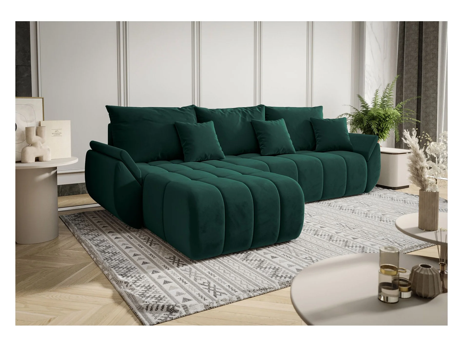 Ecksofa mit Schlaffunktion - Stauraum - Samtbezug - links - Grün - ROMULDI