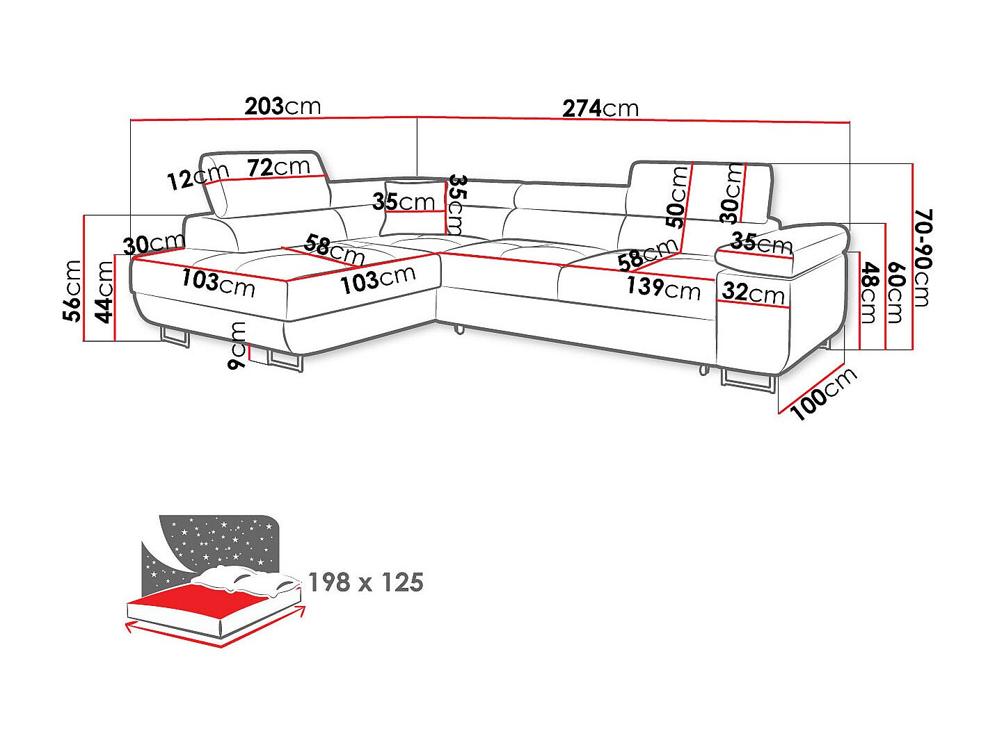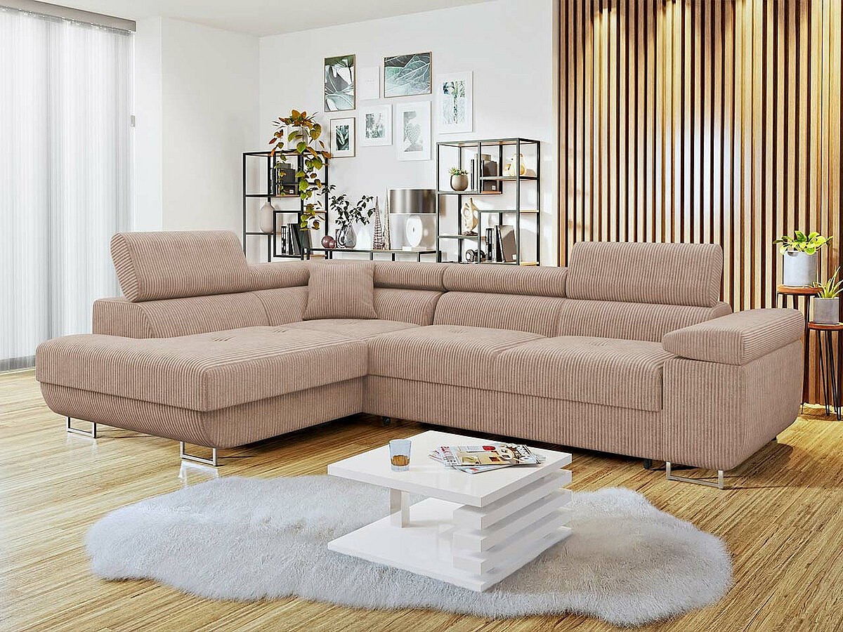 Ecksofa mit Schlaffunktion und Bettkasten - 274x203x70-90 cm - Poso 52 - Seite: Links - Torezio Cord