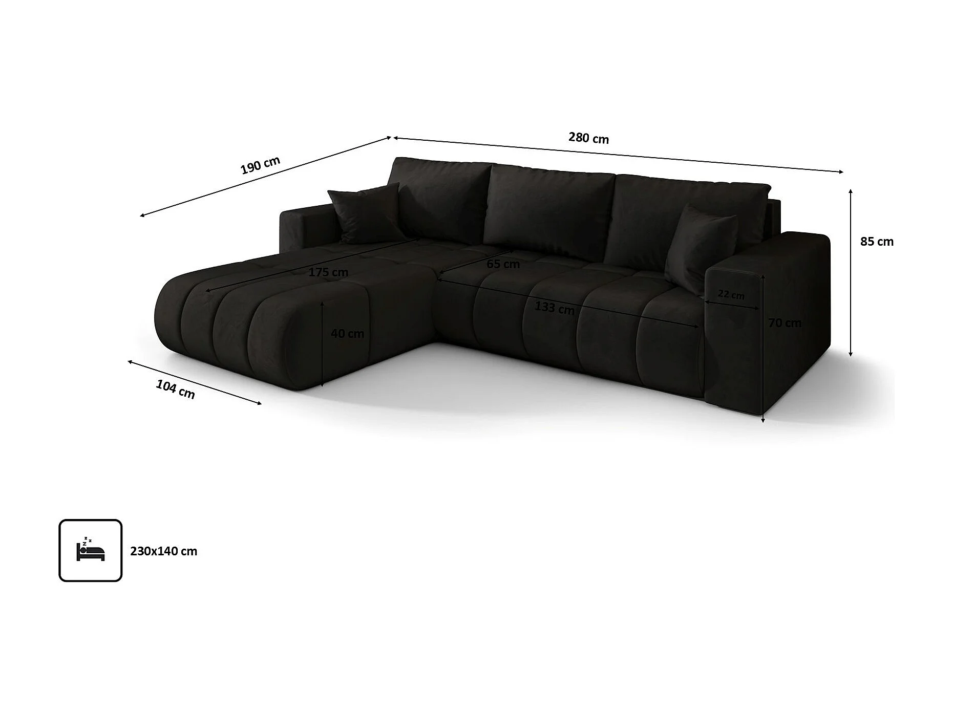 Ecksofa mit schlaffunktion und bettkasten MILO PREMIUM, stoff MONOLITH, Anthrazit, Links