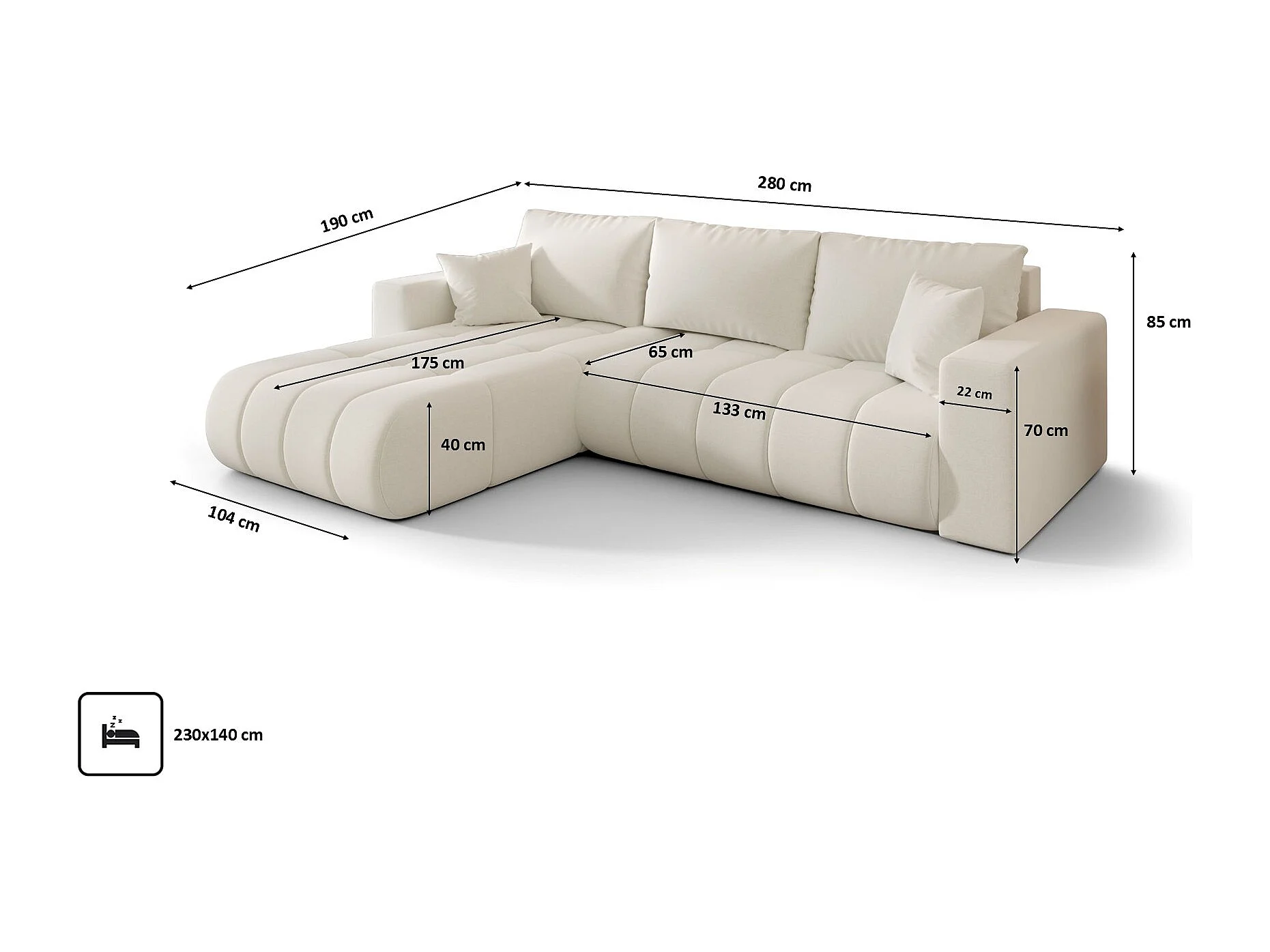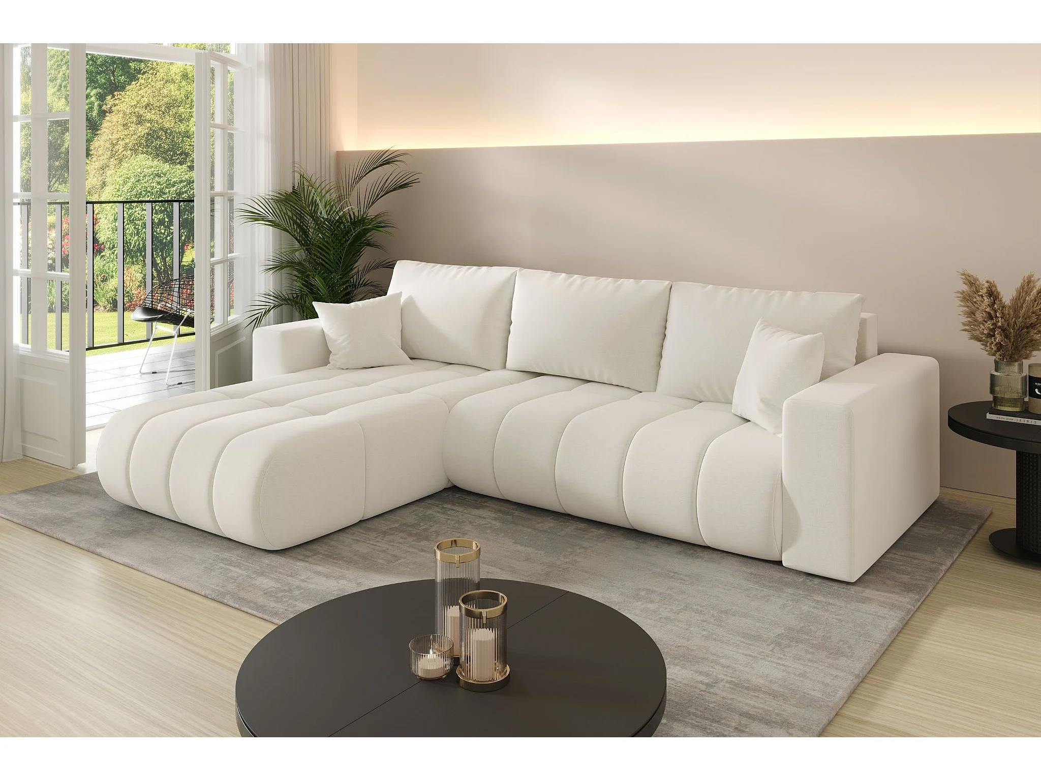 Ecksofa mit schlaffunktion und bettkasten MILO PREMIUM, stoff WIND, Ecru, Links