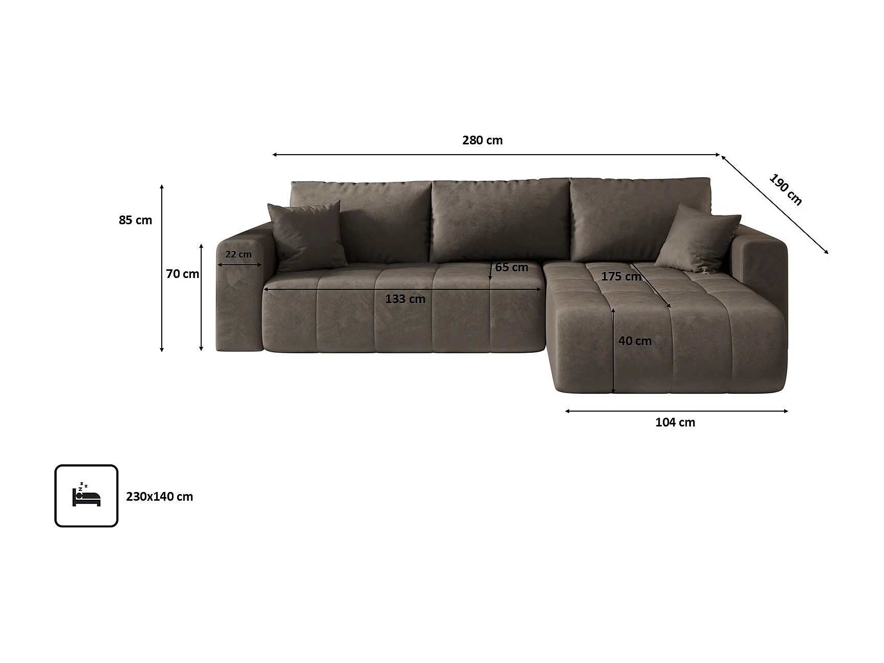 Ecksofa mit schlaffunktion und bettkasten MILO, stoff MONOLITH, Schokolade, Rechts