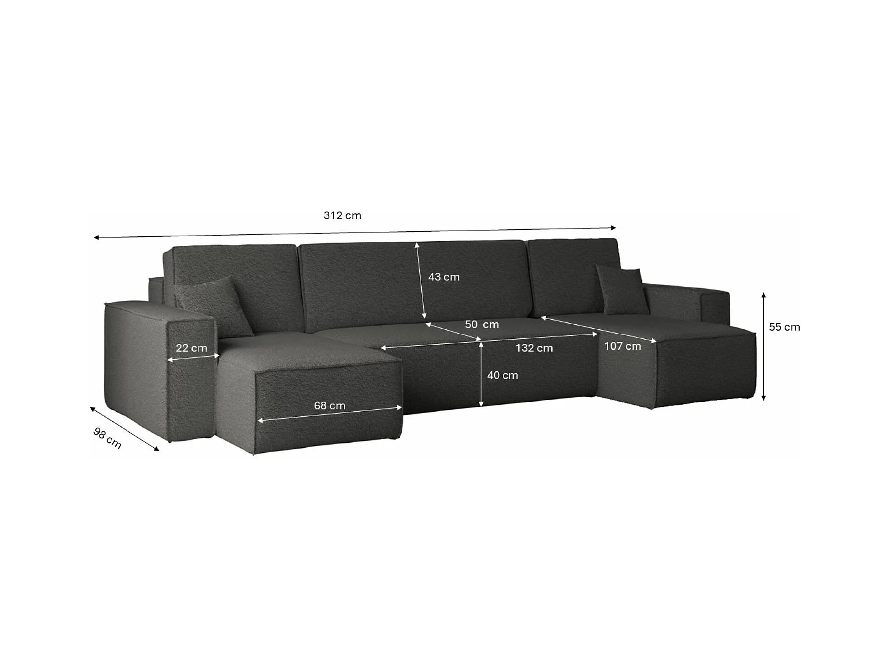 Ecksofa mit schlaffunktion und bettkasten, Sofa U-form, Couch U-form BEST stoff Abriamo Graphit