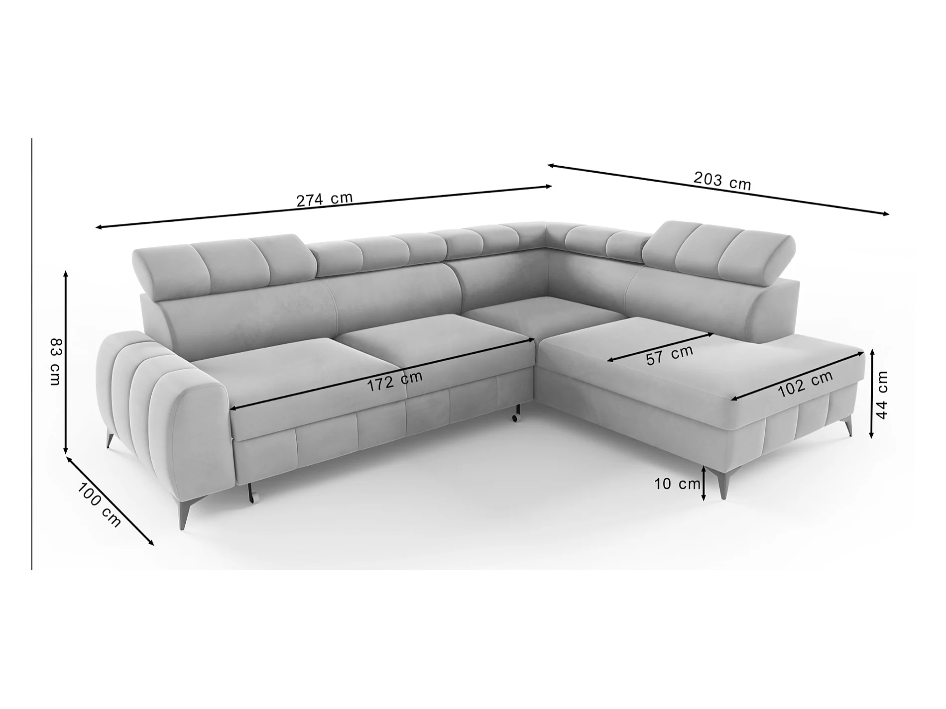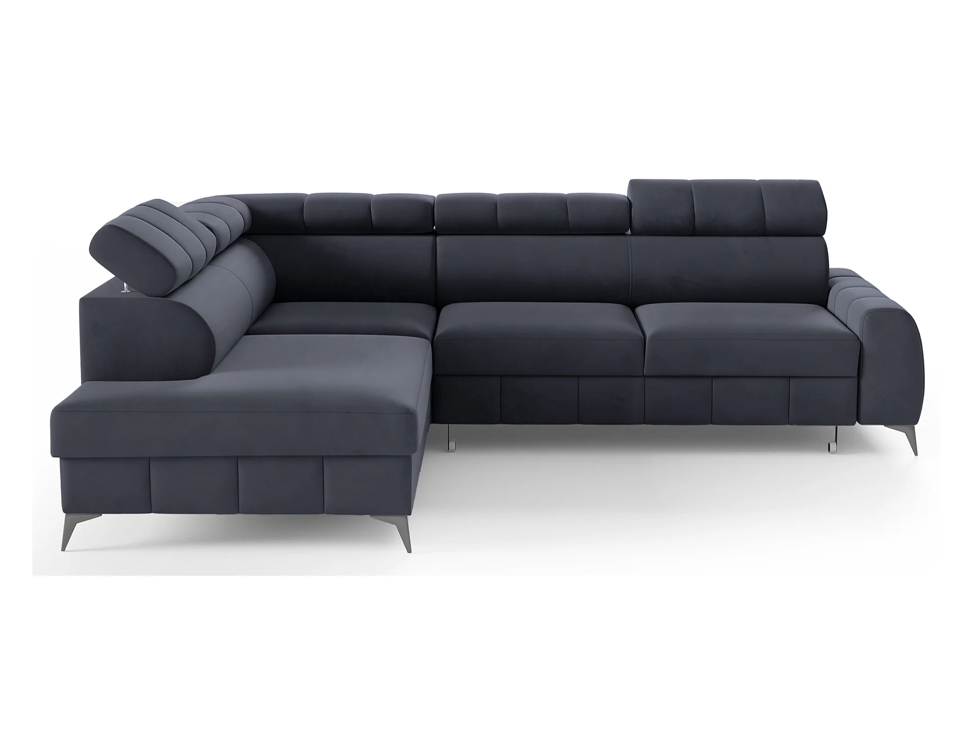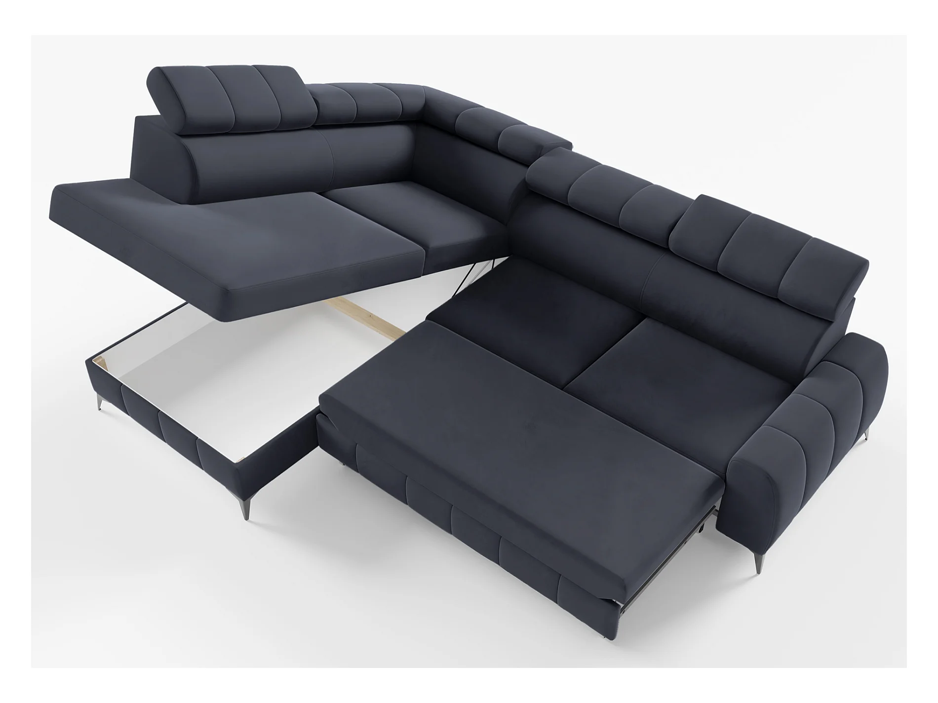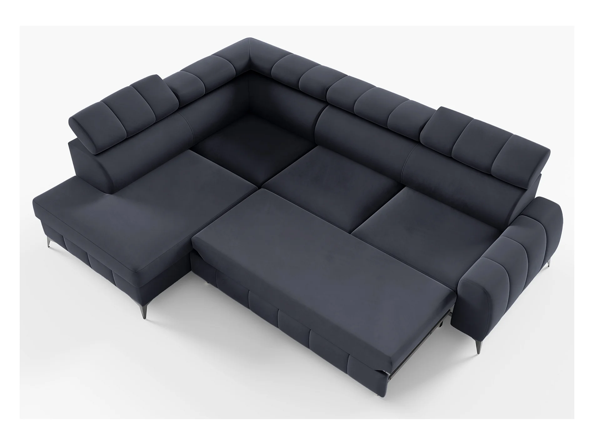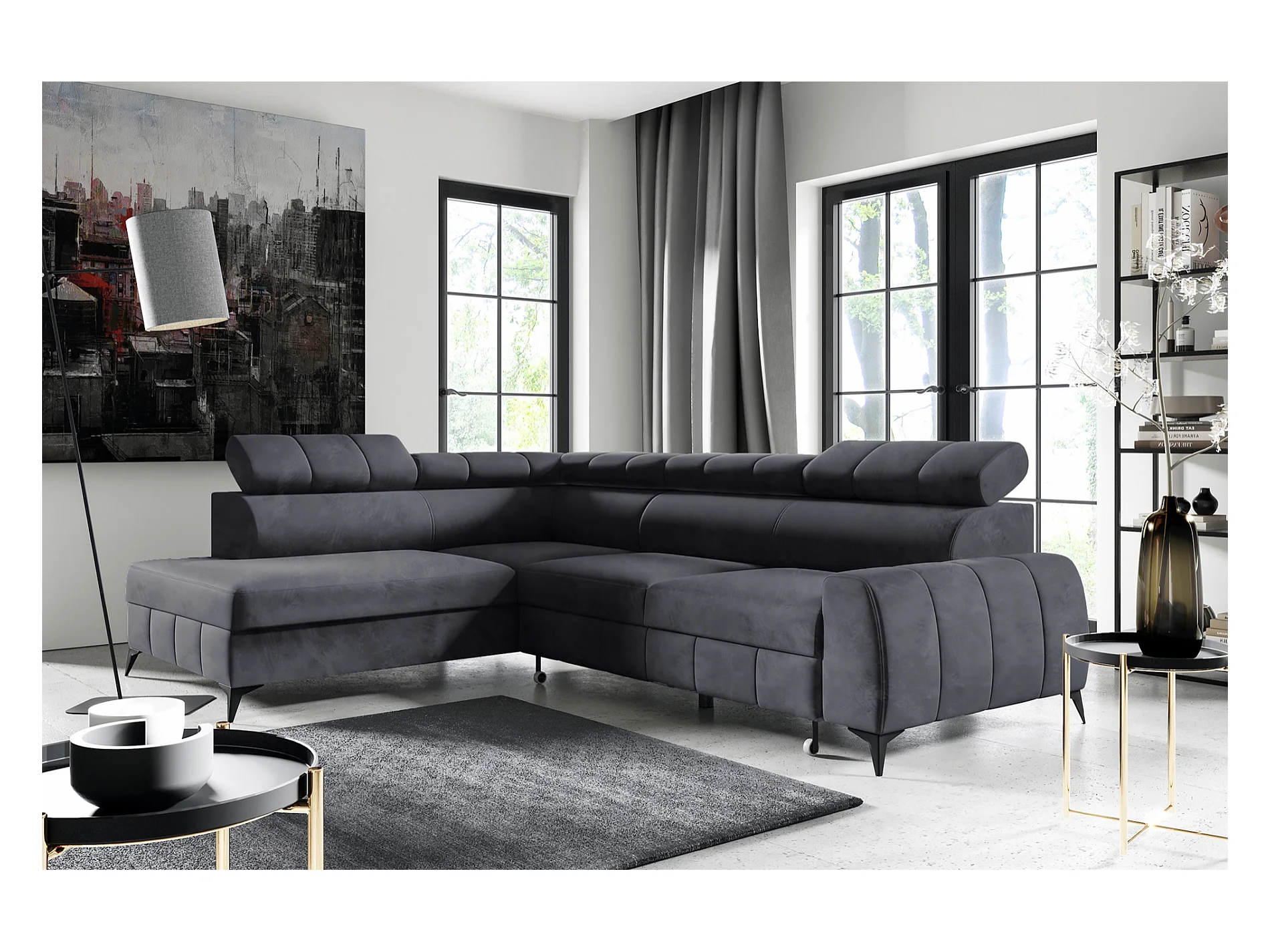 Ecksofa mit Schlaffunktion - Veloursbezug in Dunkelgrau - linksseitig - LONDON