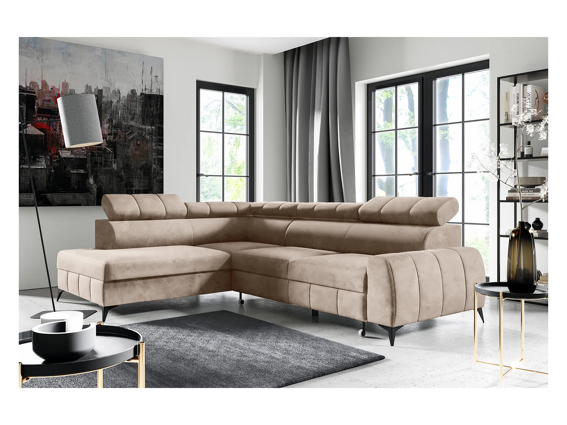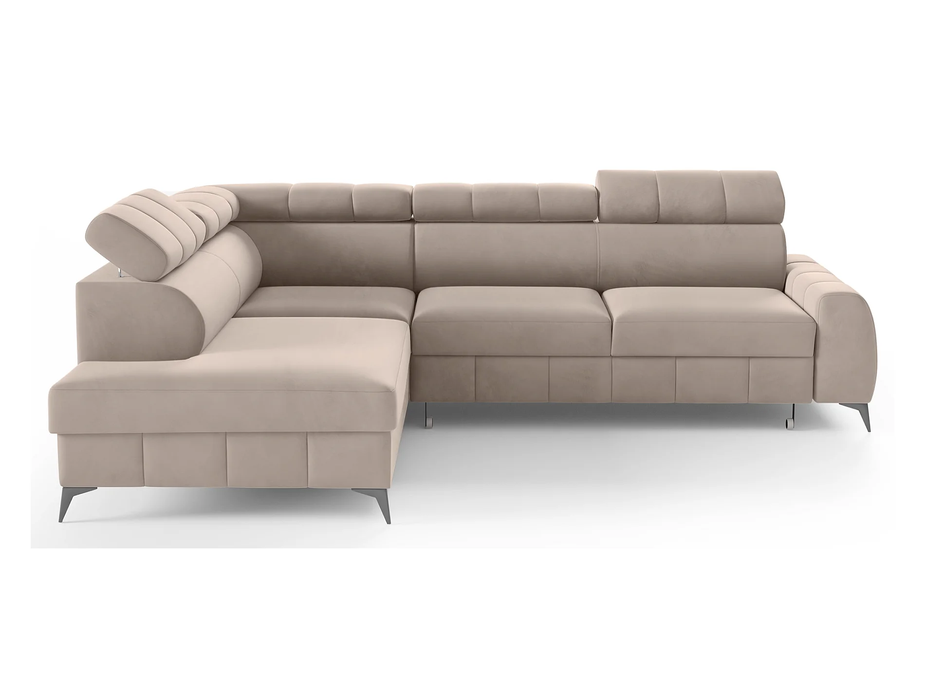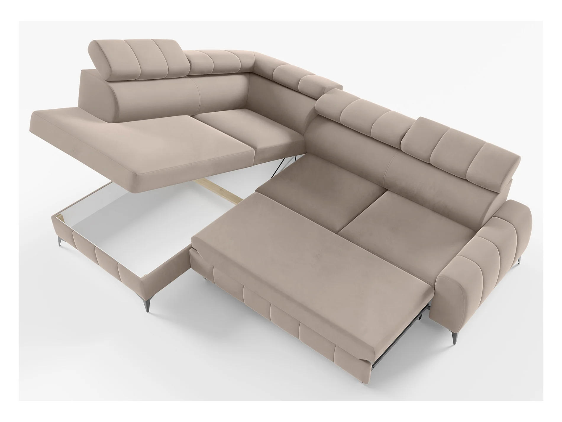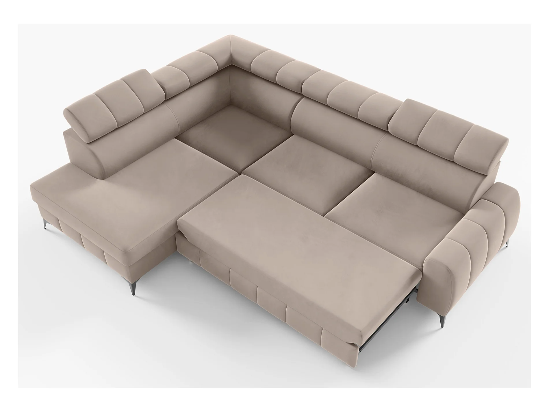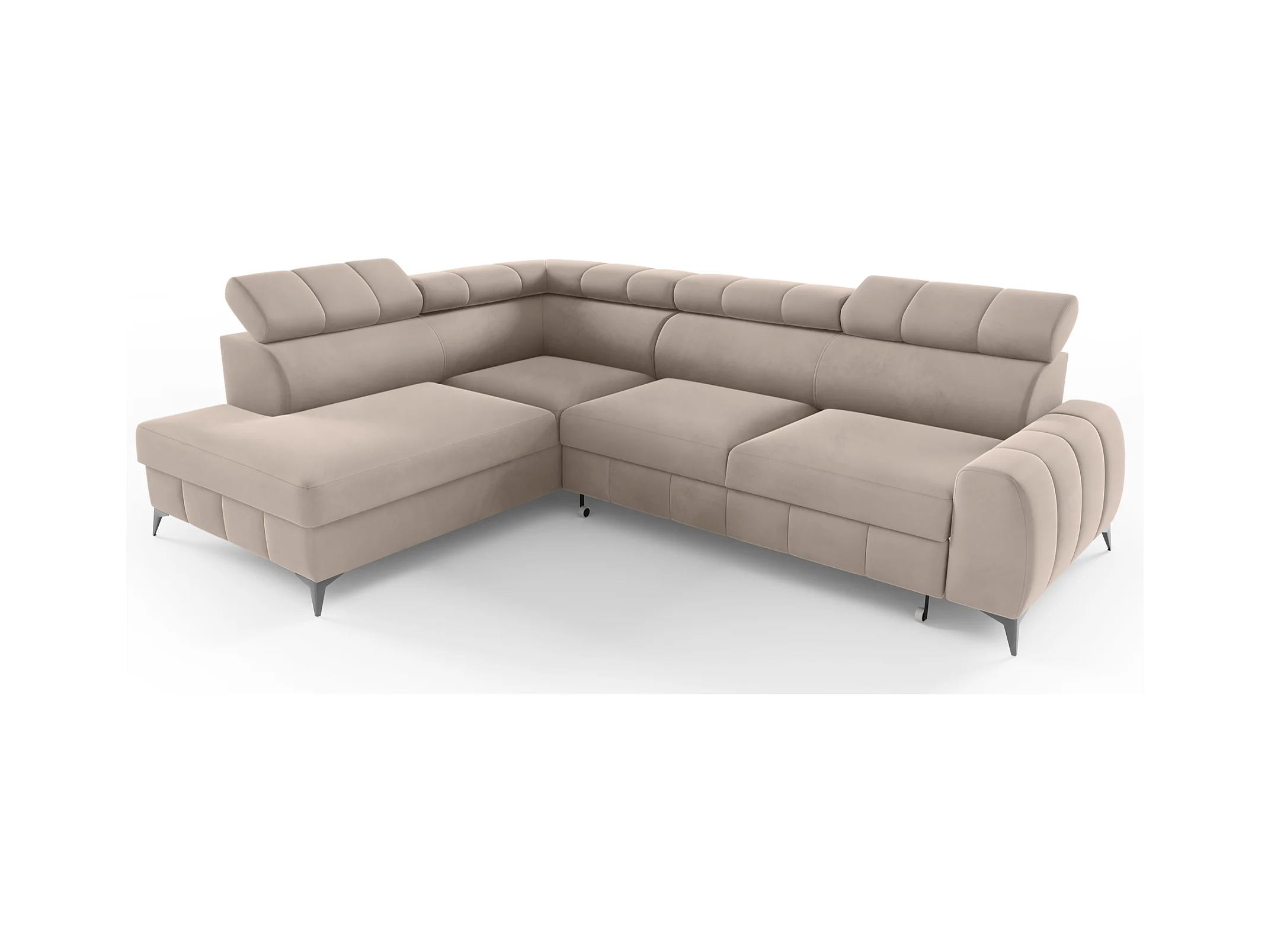 Ecksofa mit Schlaffunktion - Veloursbezug in Greige - linksseitig - LONDON