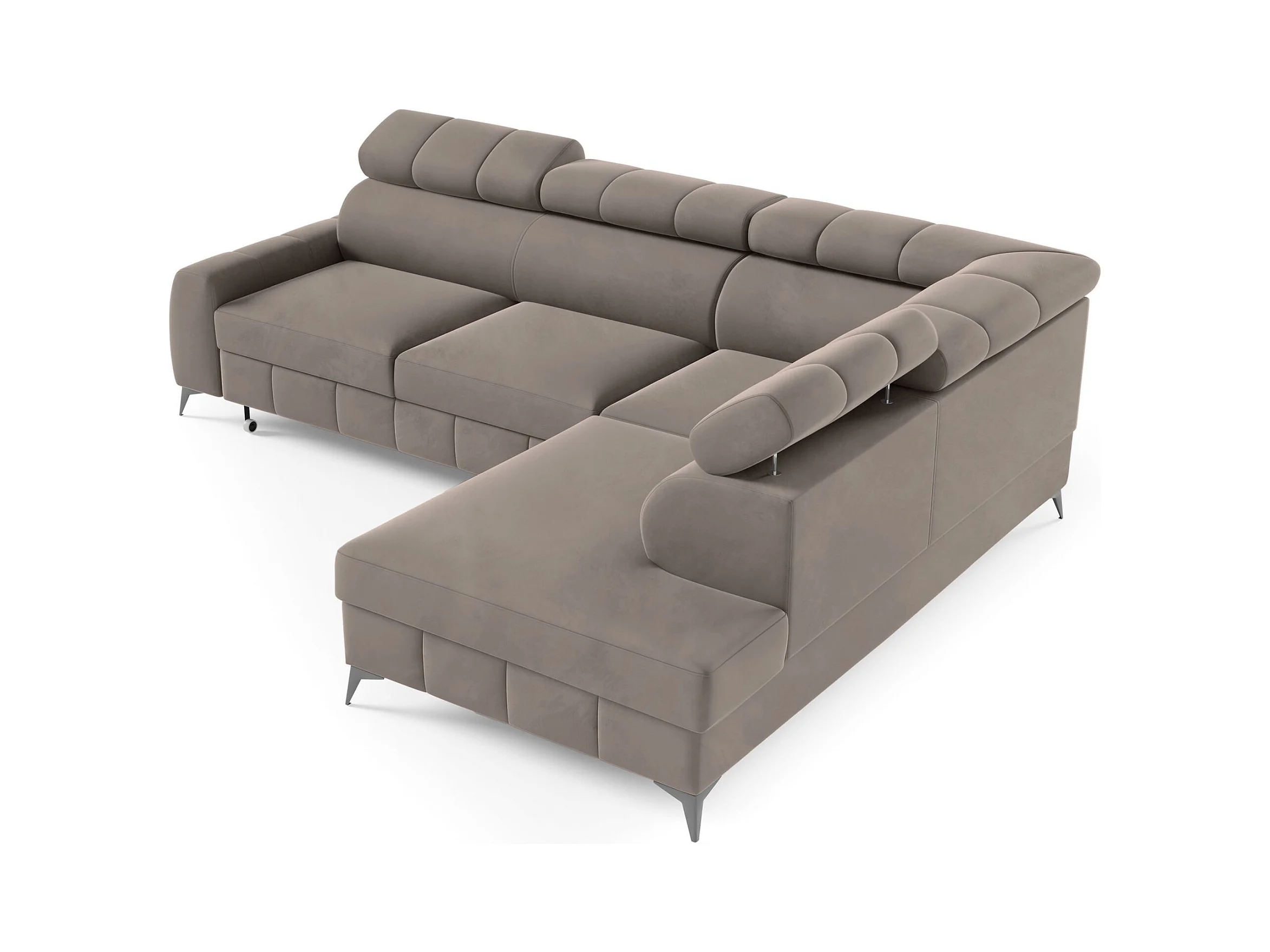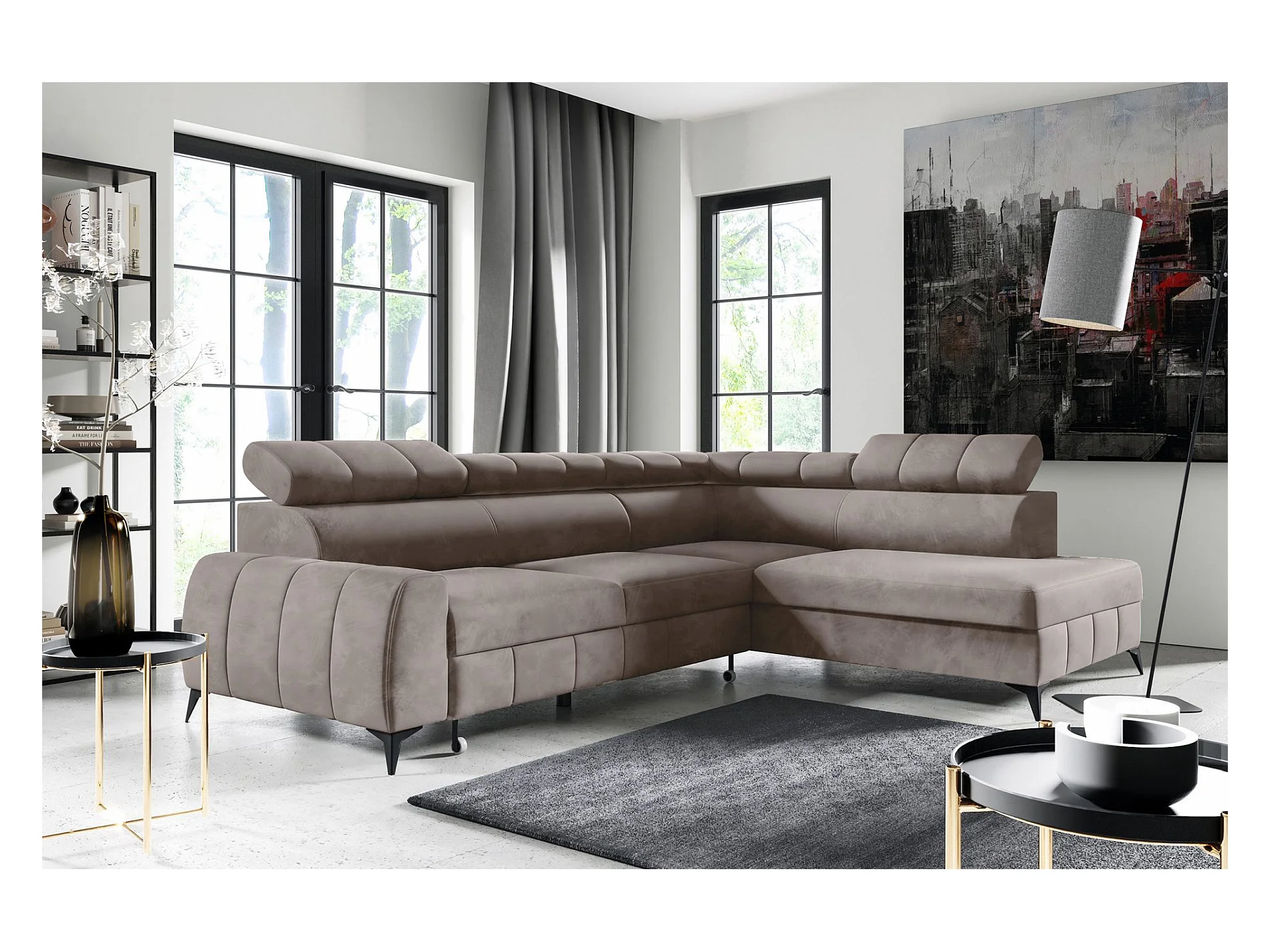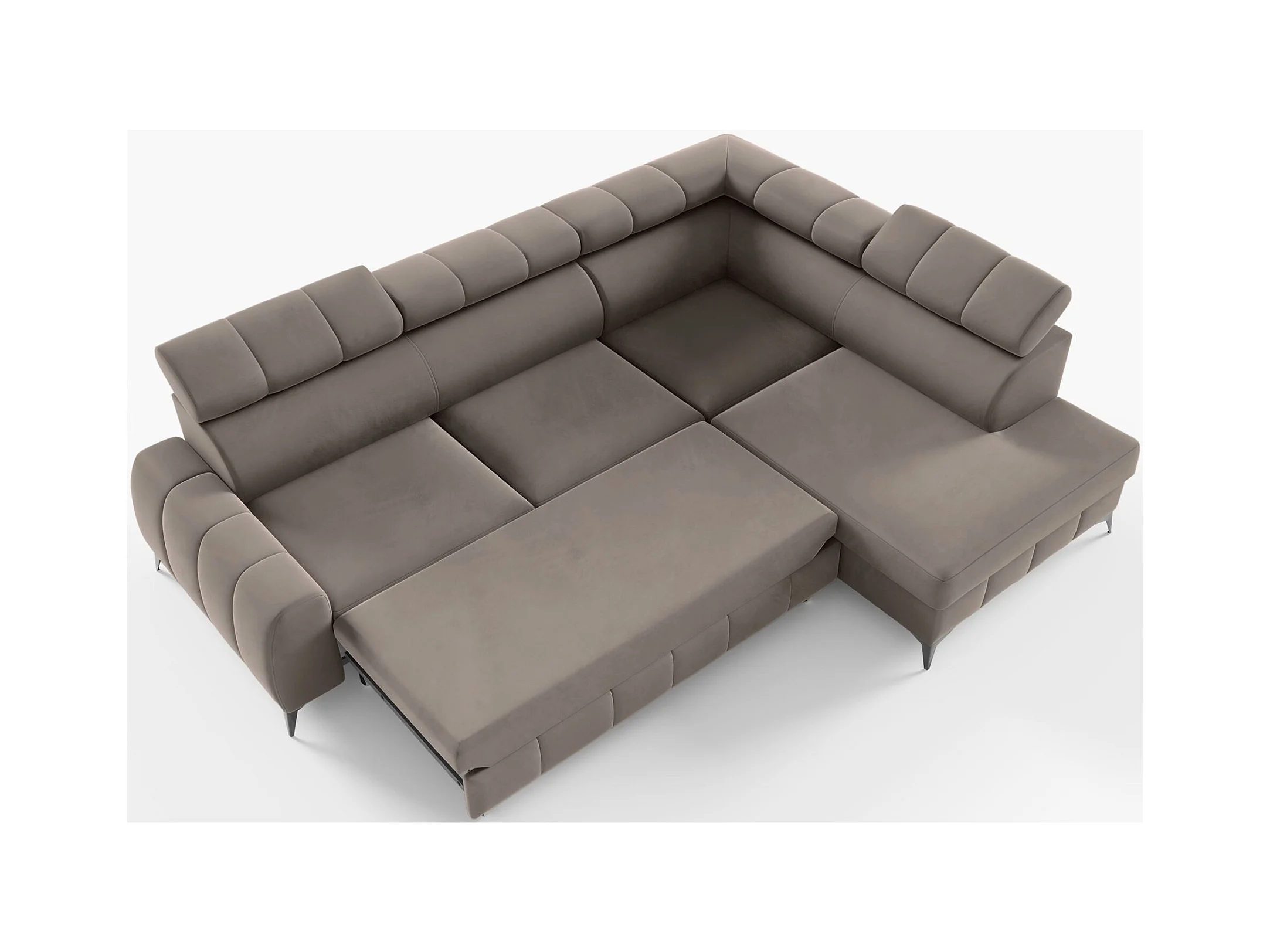 Ecksofa mit Schlaffunktion - Veloursbezug in Hellbraun - rechtsseitig - LONDON