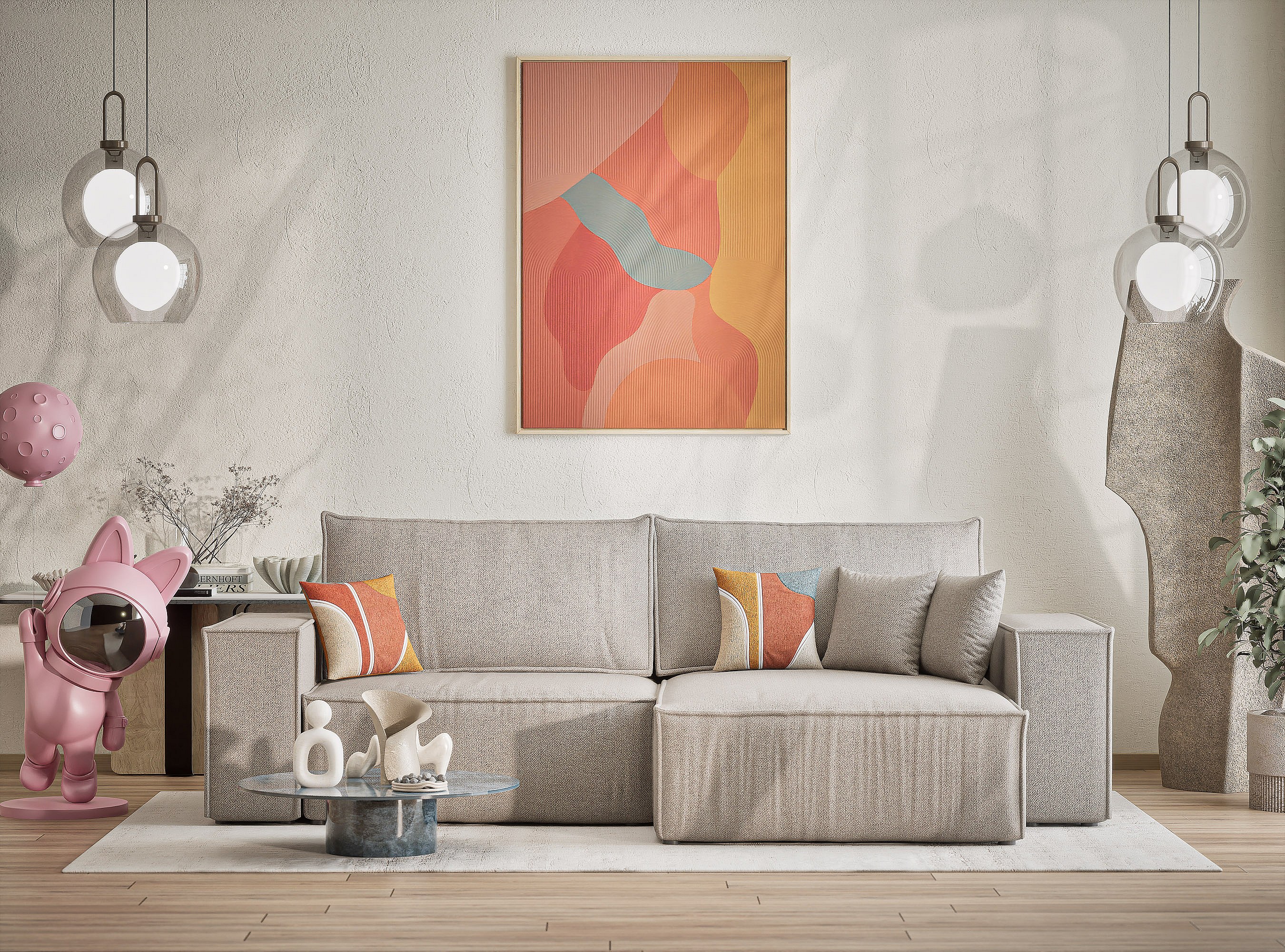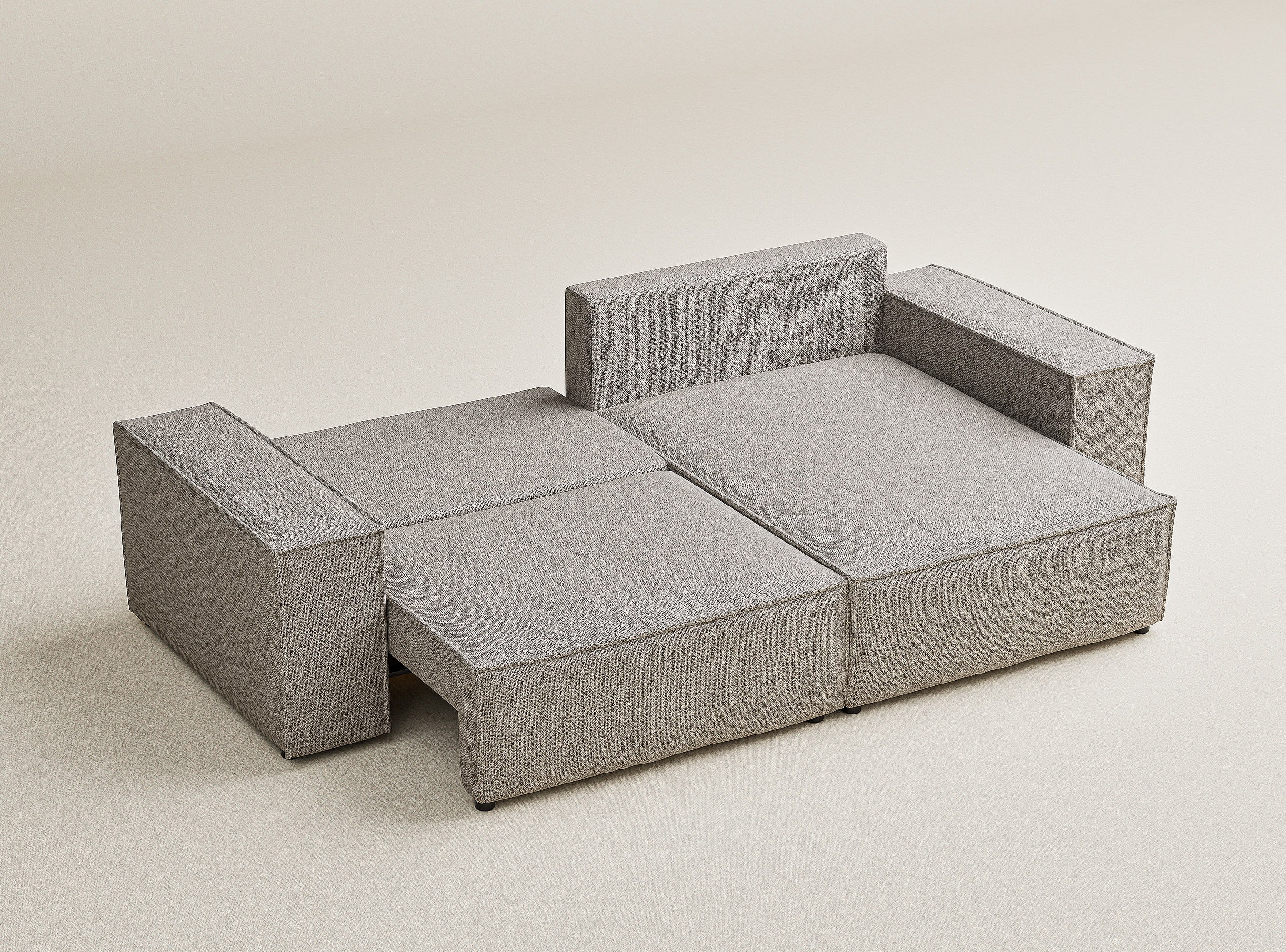 Ecksofa mit Schlaffunktion Zaya aus Webstoff - Drei-Personen - beige