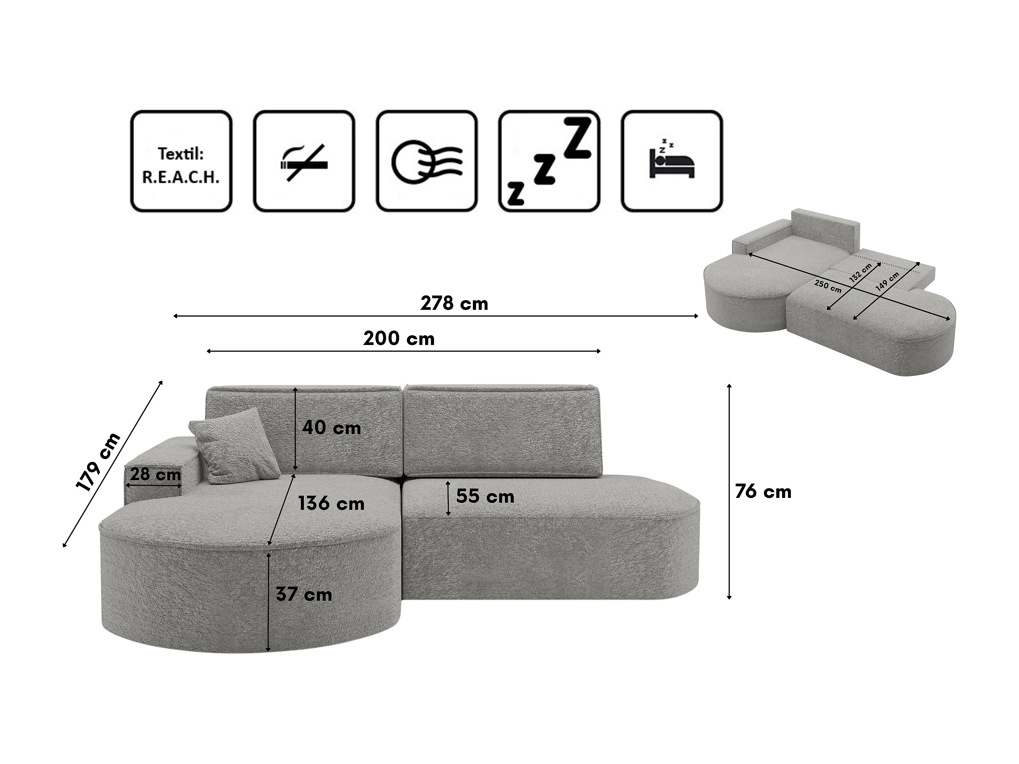 Ecksofa Modena Pro - Komfort und Stil in modernem Design stoff Arena Grau Links