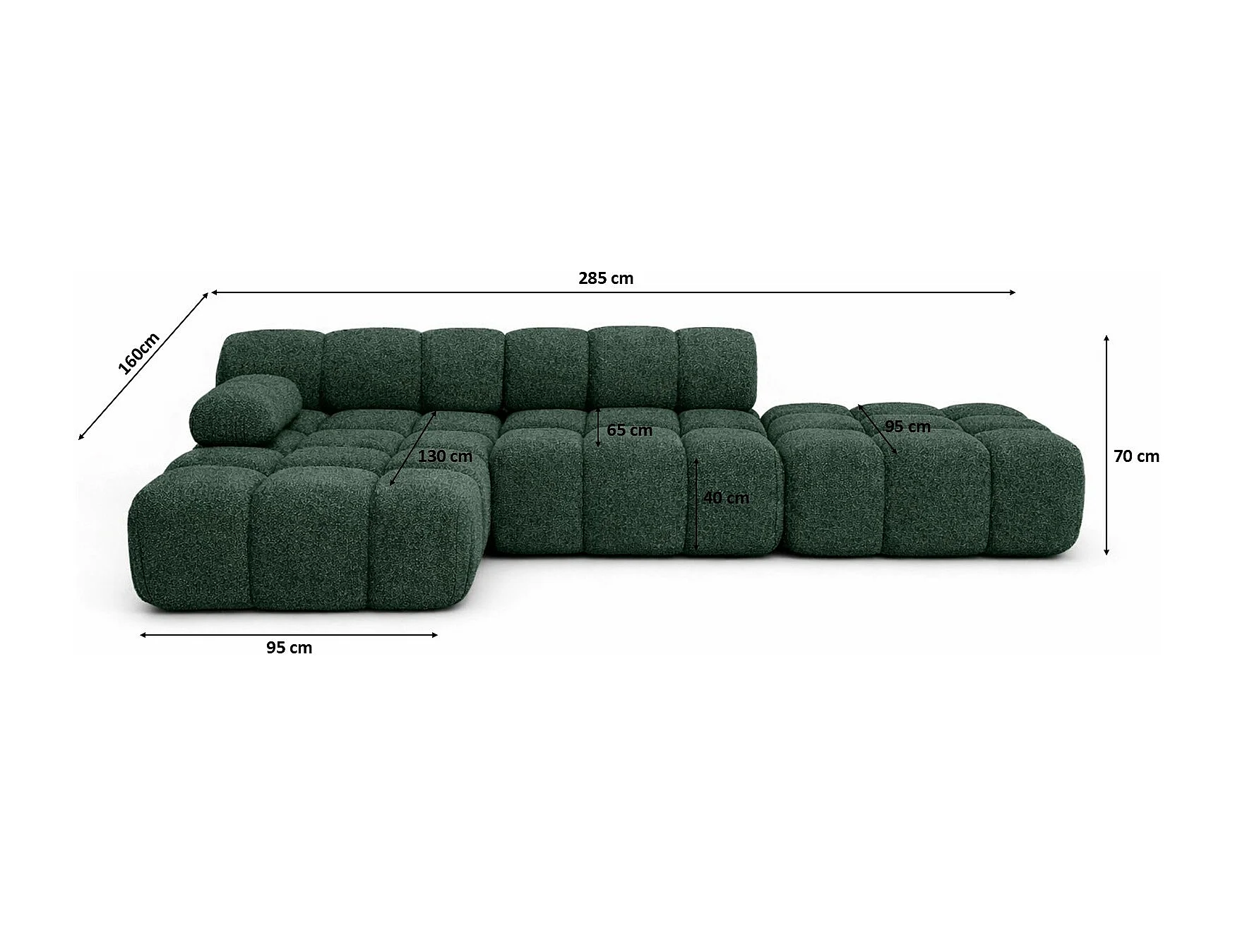 Ecksofa modular mit Hocker, Sofa L-Form, Bouclé-Stoff Abriamo, Dunkelgrün, Links, Selia