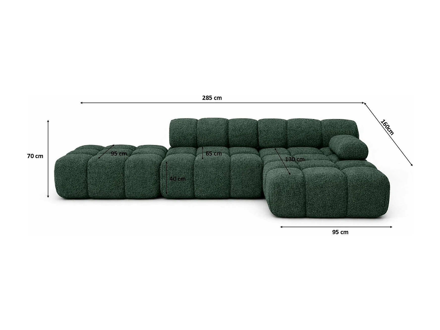 Ecksofa modular mit Hocker, Sofa L-Form, Bouclé-Stoff Abriamo, Dunkelgrün, Rechts, Selia