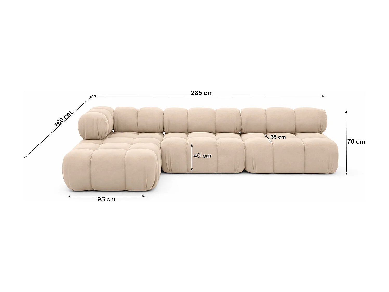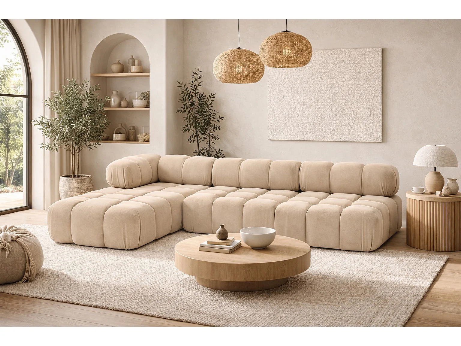 Ecksofa Modulare L-Form, Veloursstoff Salvador, Beige, Links, Selia
