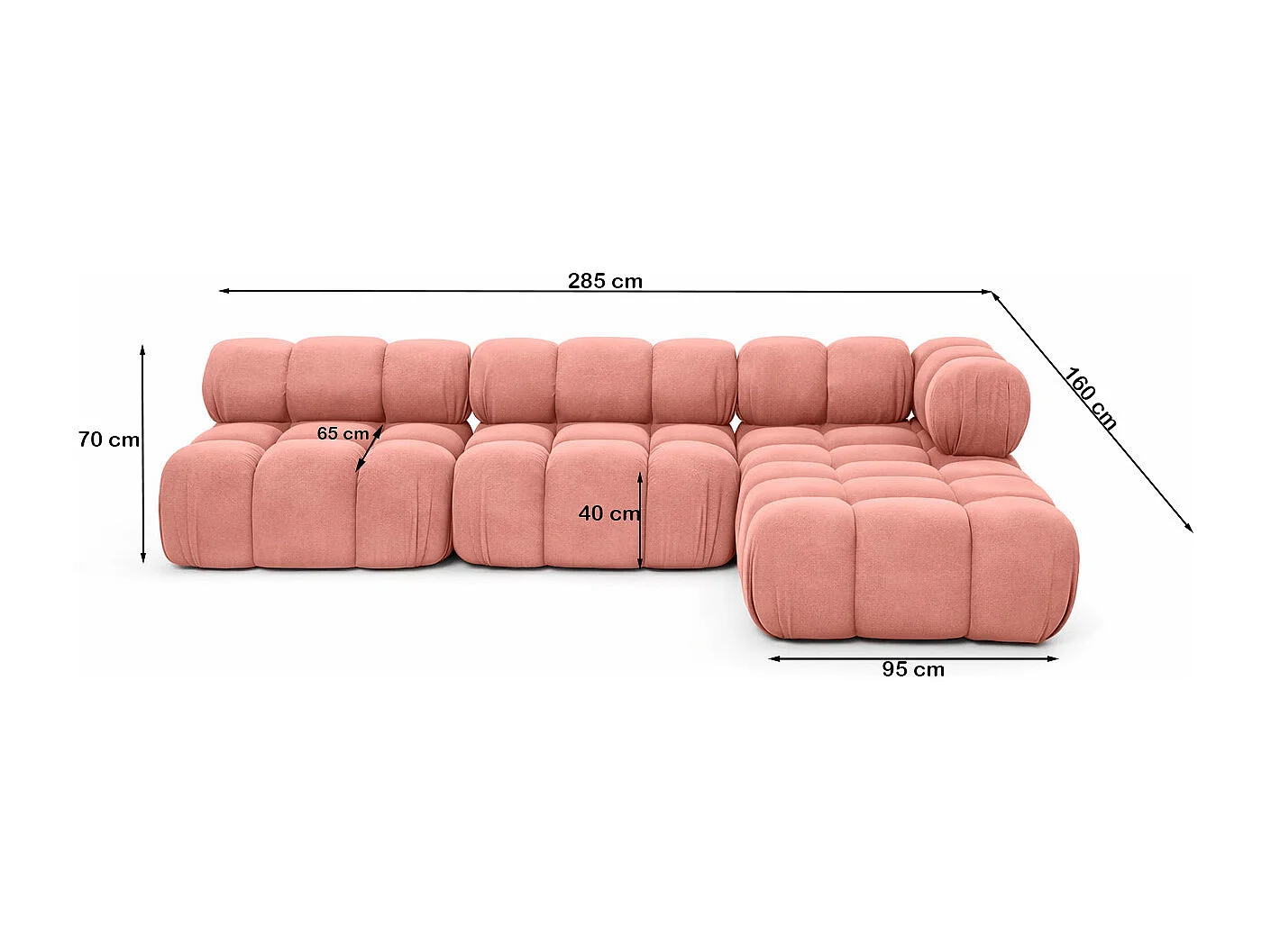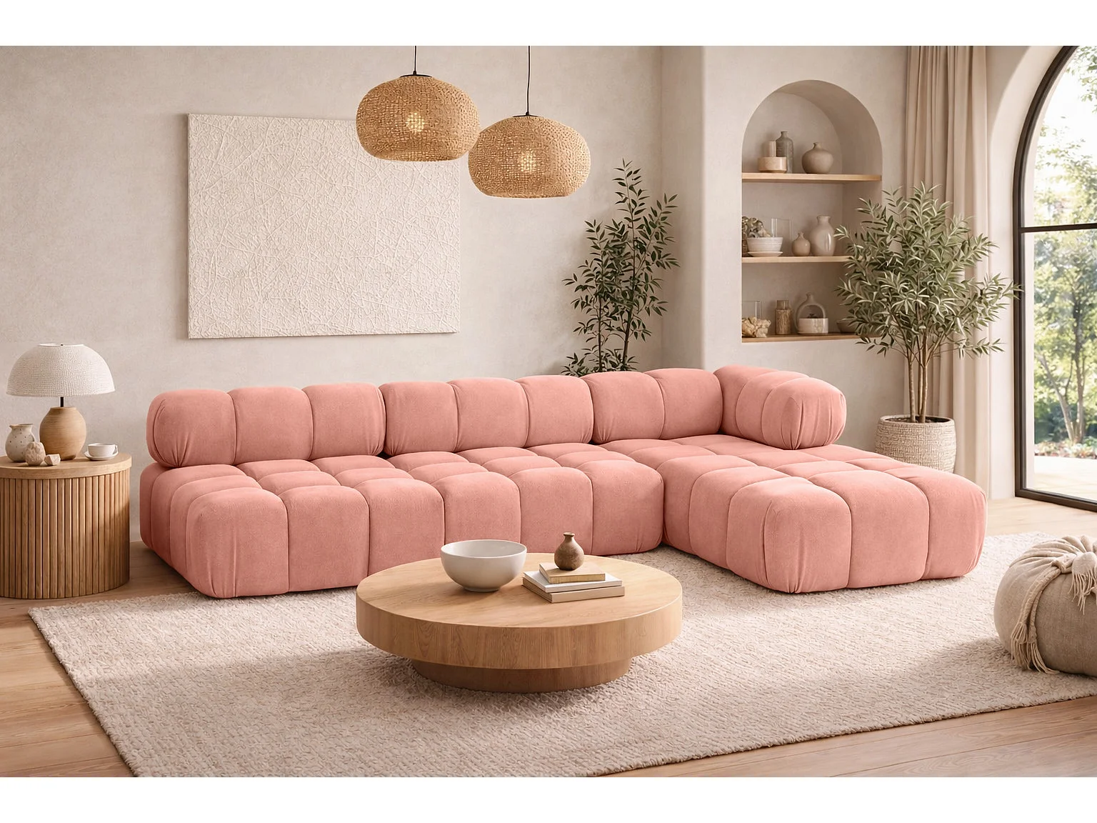 Ecksofa Modulare L-Form, Veloursstoff Salvador, Rosa, Rechts, Selia