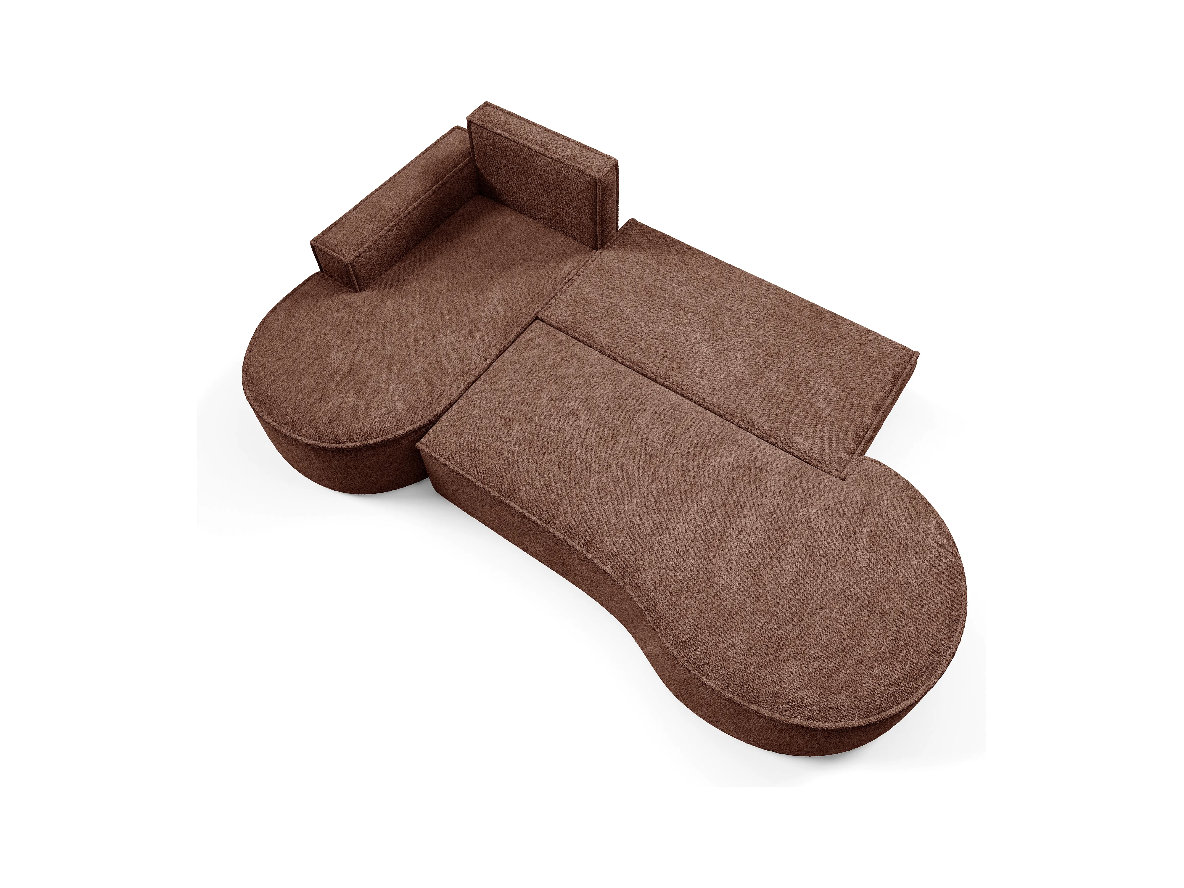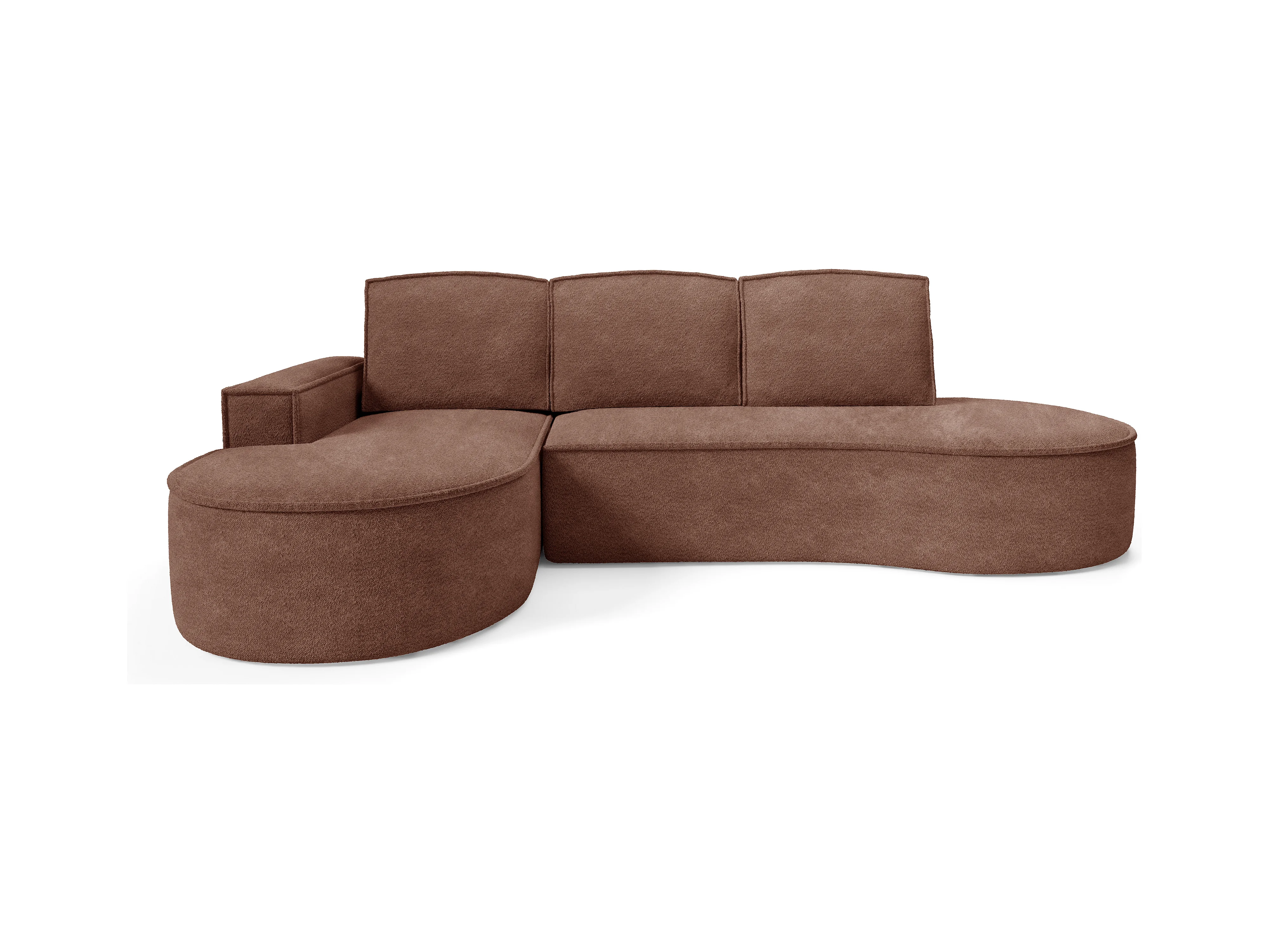 Ecksofa MOLLY mit Schlaffunktion – Halbrund, freistehend, Liegefläche 140x207 cm, 3 Kissen, Abriamo-Stoff, 277x157x88 cm, Links Braun