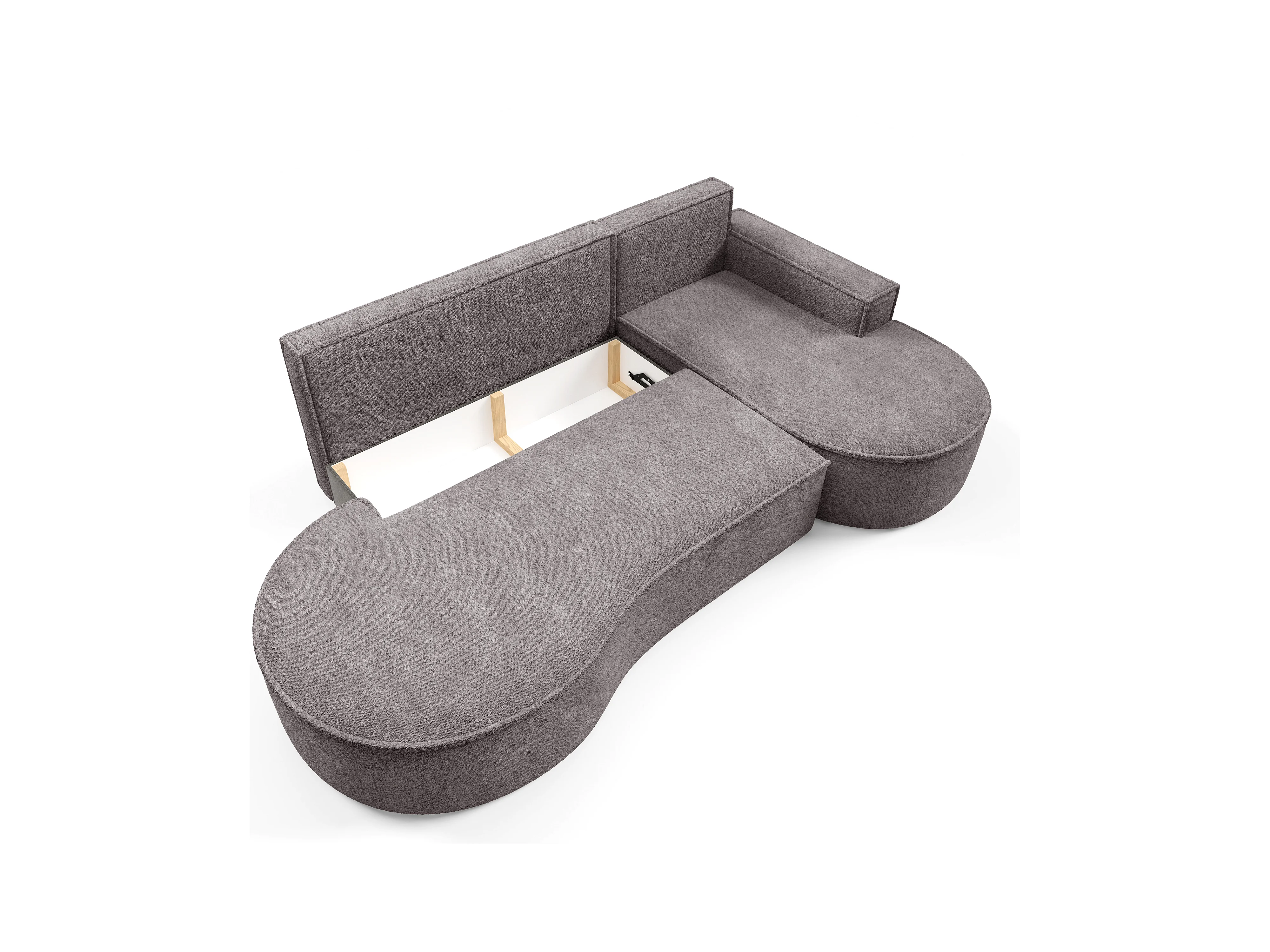 Ecksofa MOLLY mit Schlaffunktion – Halbrund, freistehend, Liegefläche 140x207 cm, 3 Kissen, Curio-Stoff, 277x157x88 cm, Rechts Grau Seide