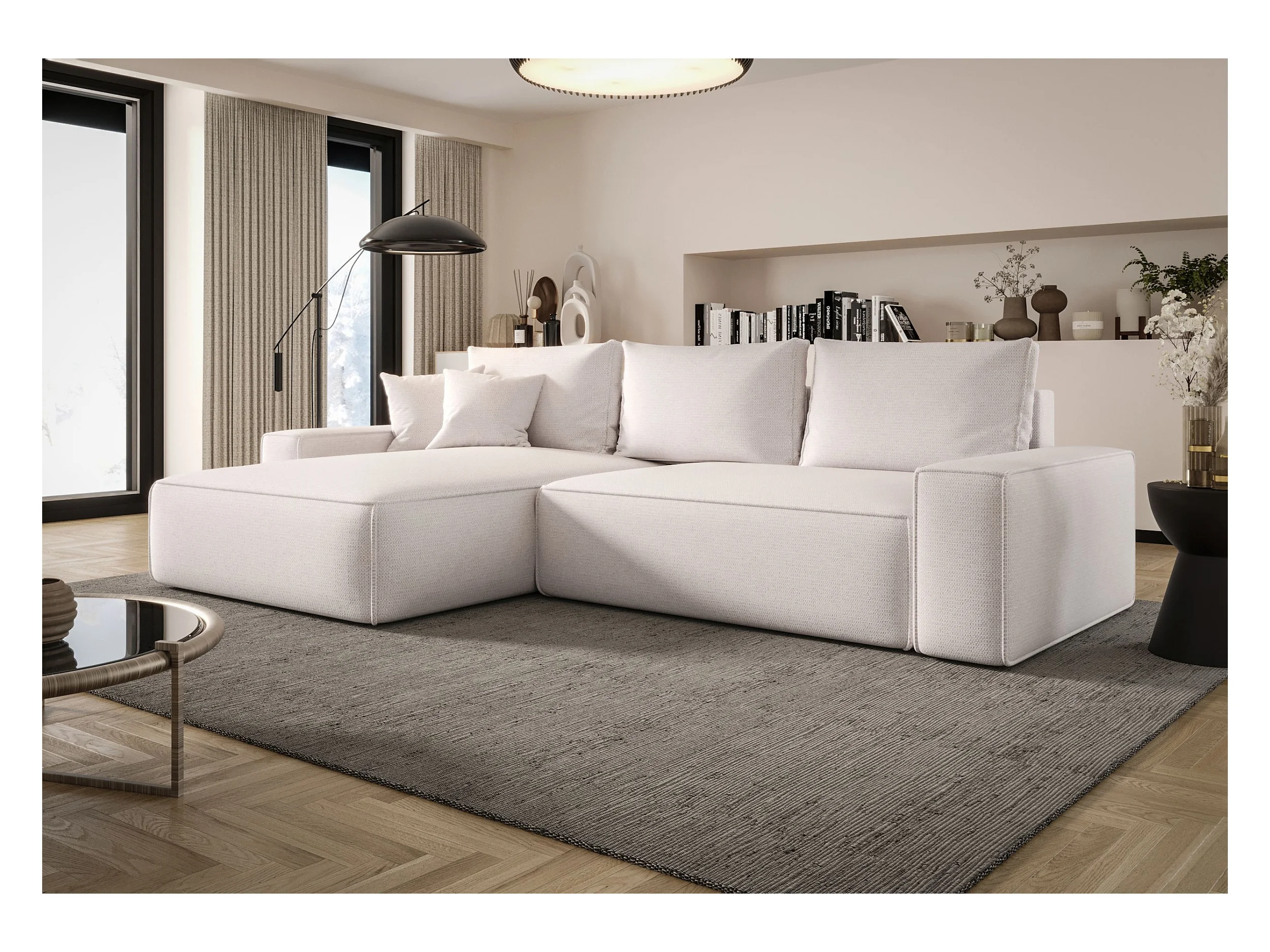 ECKSOFA MONA mit Schlaffunktion ARAGON 01 Weiß Links L-Form Sofa mit Stauraum Bettkasten Wohnzimmersofa Couch Sofa Bettsofa Bettkasten Bettcouch