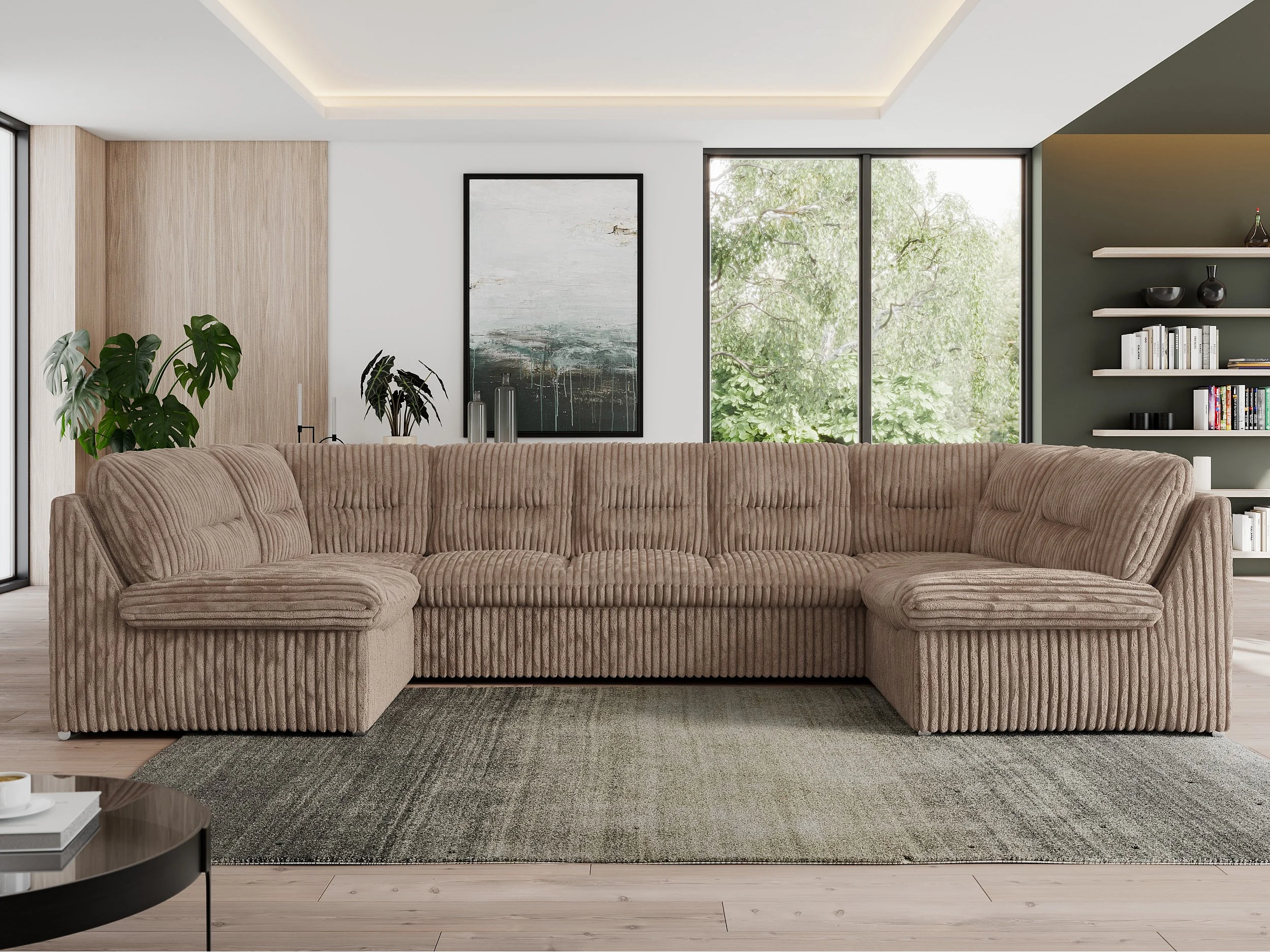 Ecksofa MORBIDO U, XXL Wohnlandschaft mit schlaffunktion - Braun Cord
