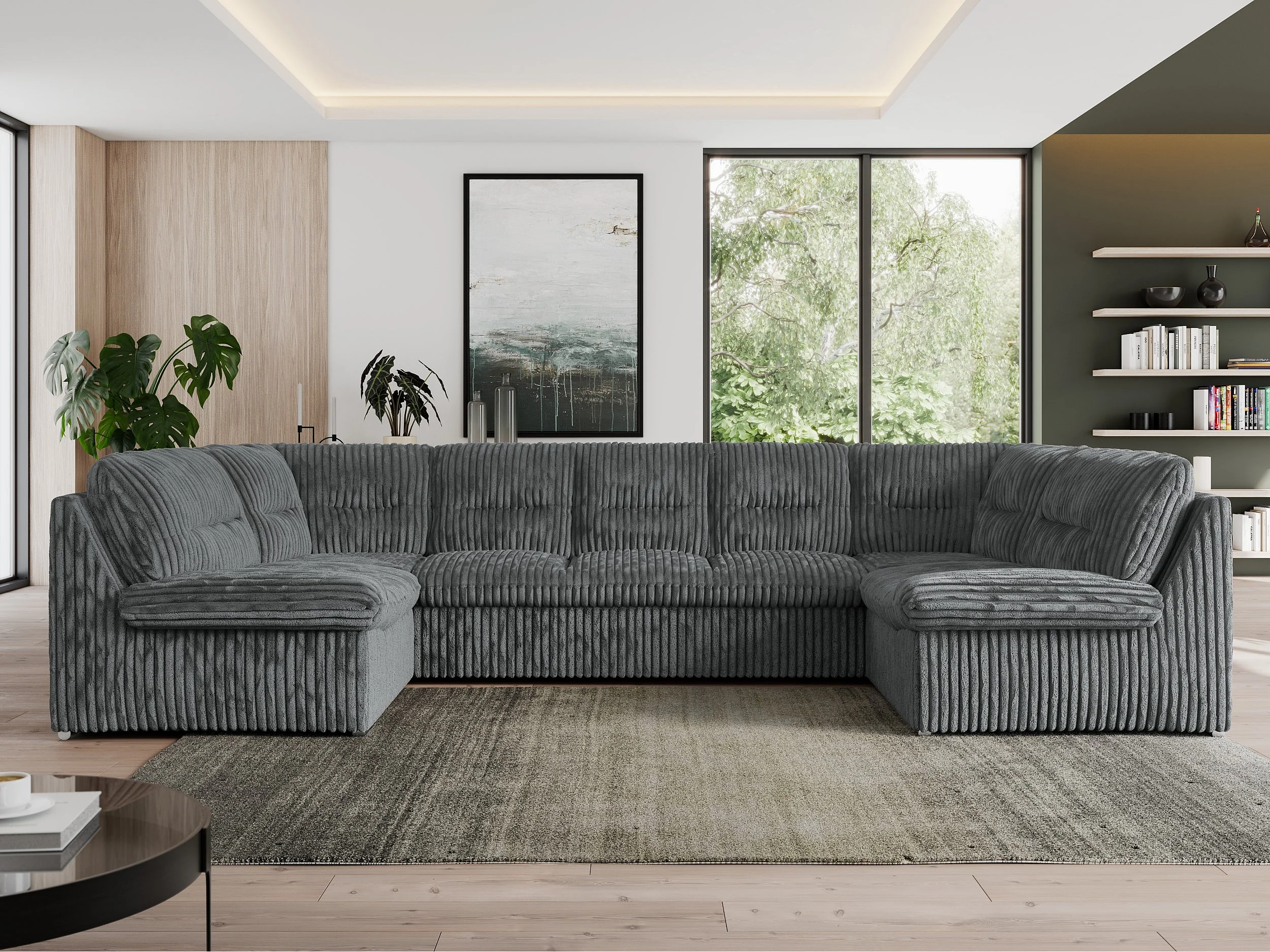 Ecksofa MORBIDO U, XXL Wohnlandschaft mit schlaffunktion - Dunkelgrau Cord