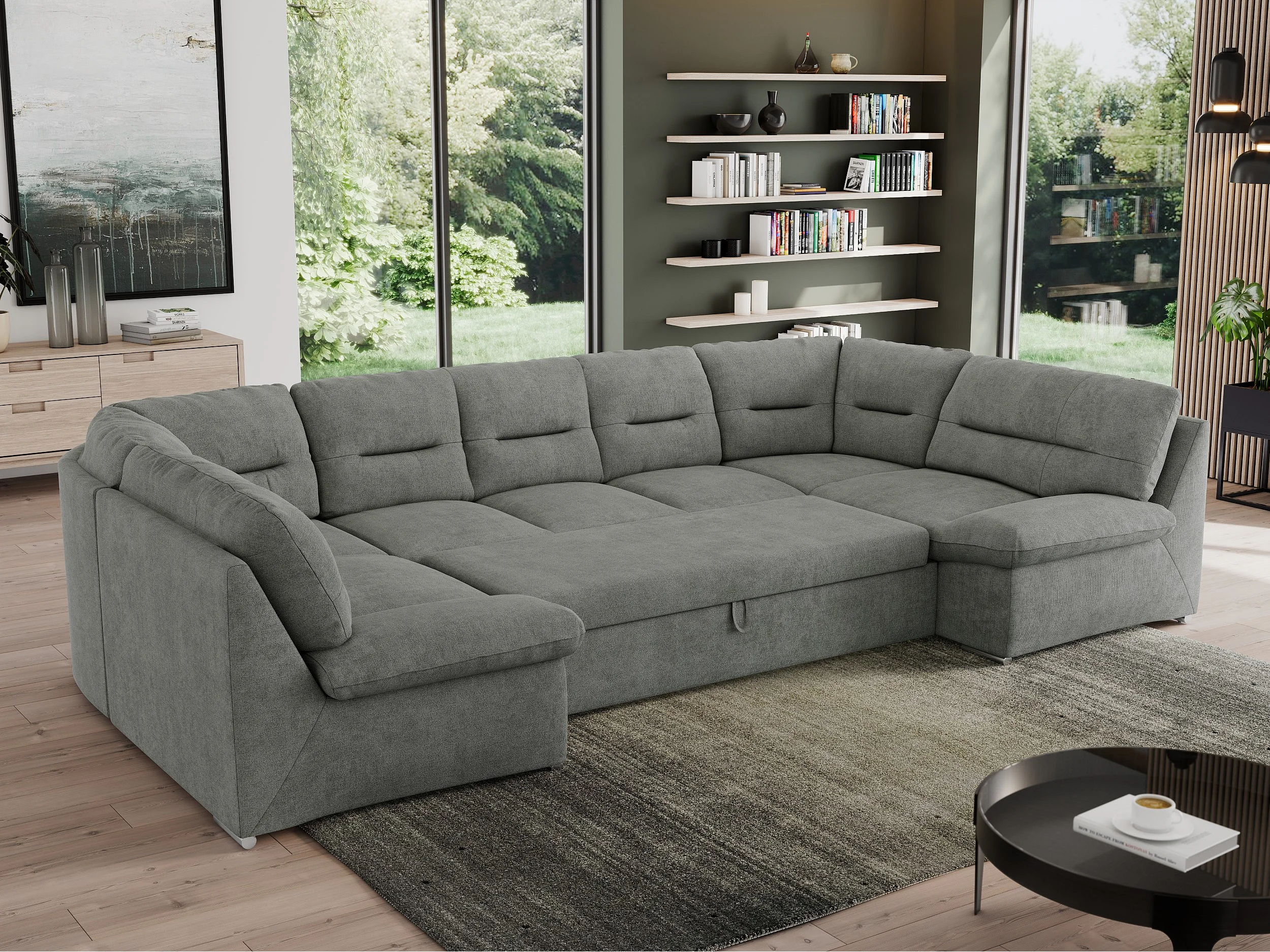 Ecksofa MORBIDO U, XXL Wohnlandschaft mit schlaffunktion - Grau Stukture
