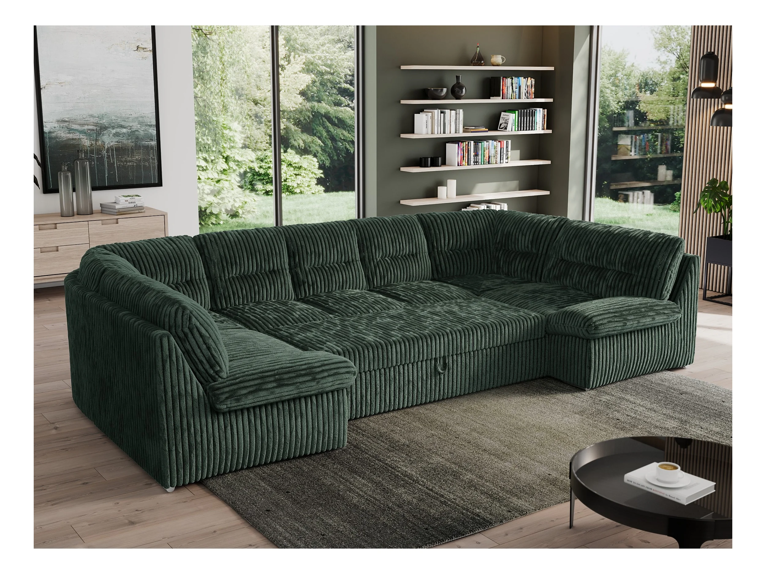 Ecksofa MORBIDO U, XXL Wohnlandschaft mit schlaffunktion - Grün Cord
