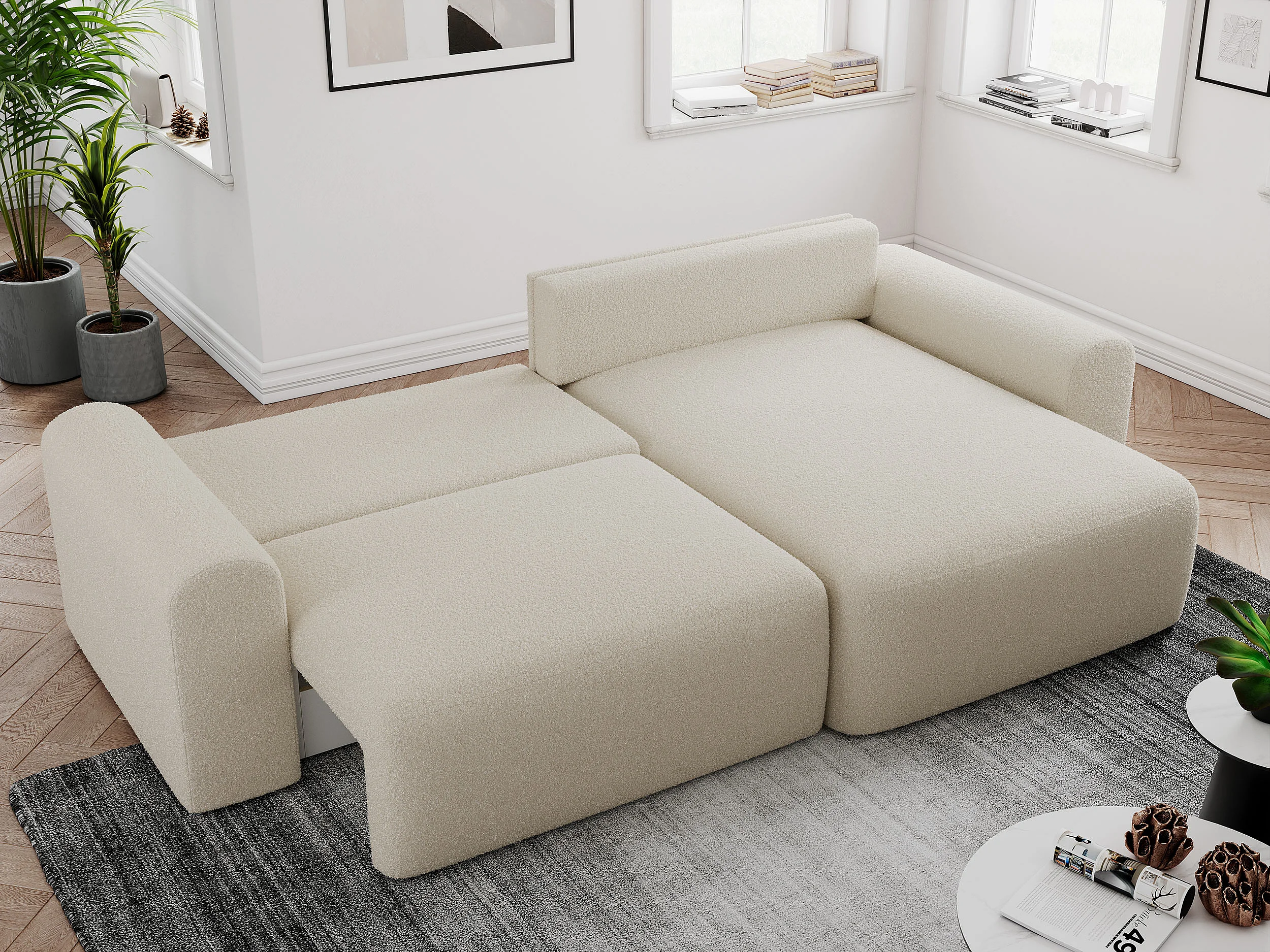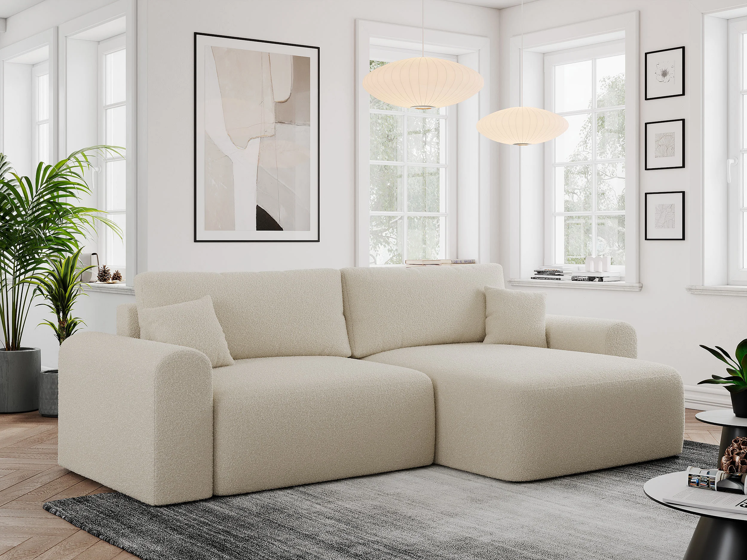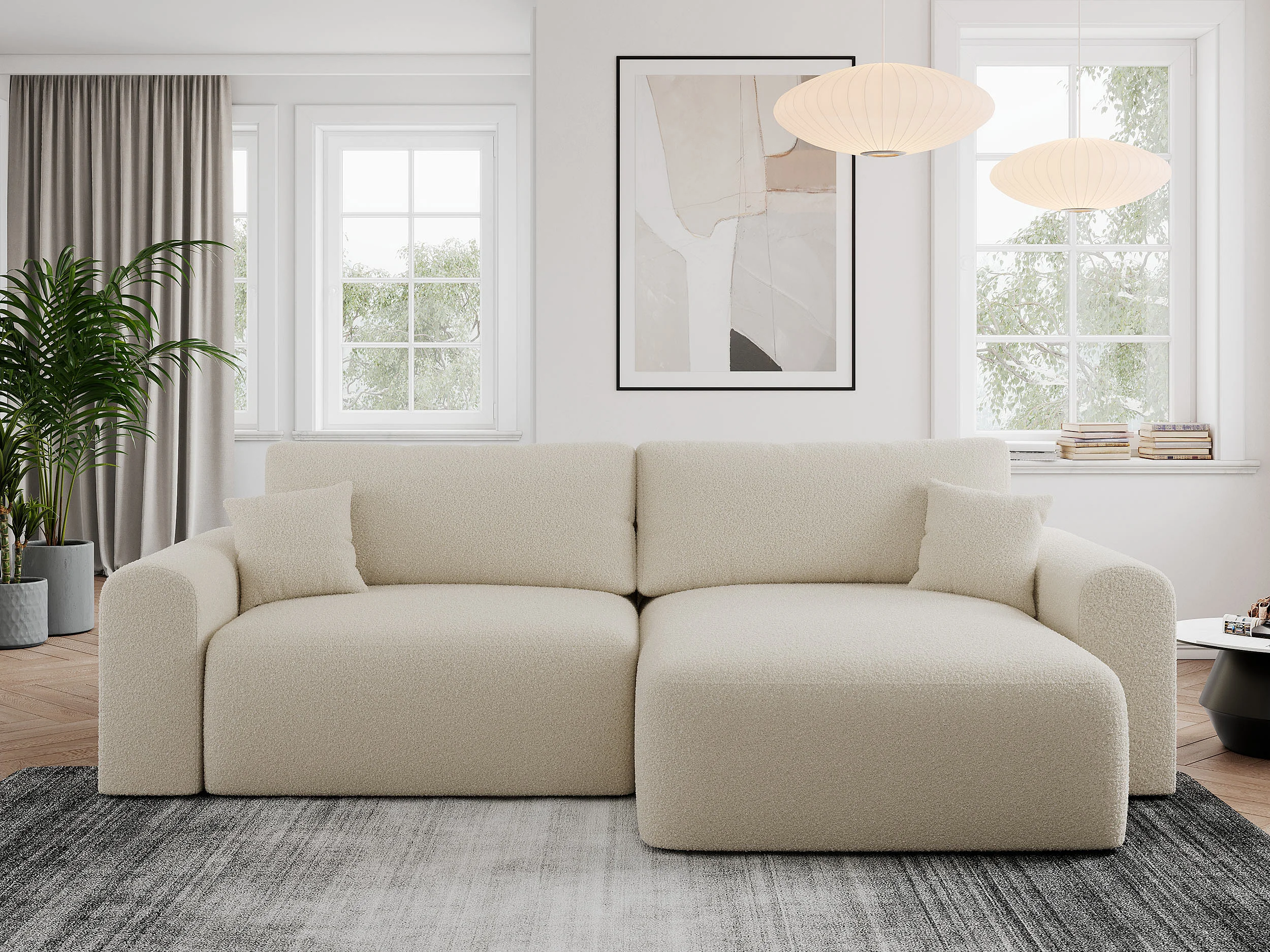 Ecksofa NELSON - Schlafcouch mit Armlehnen und Bettkasten, universelles L-förmige Ecksofa - Beige Boucle