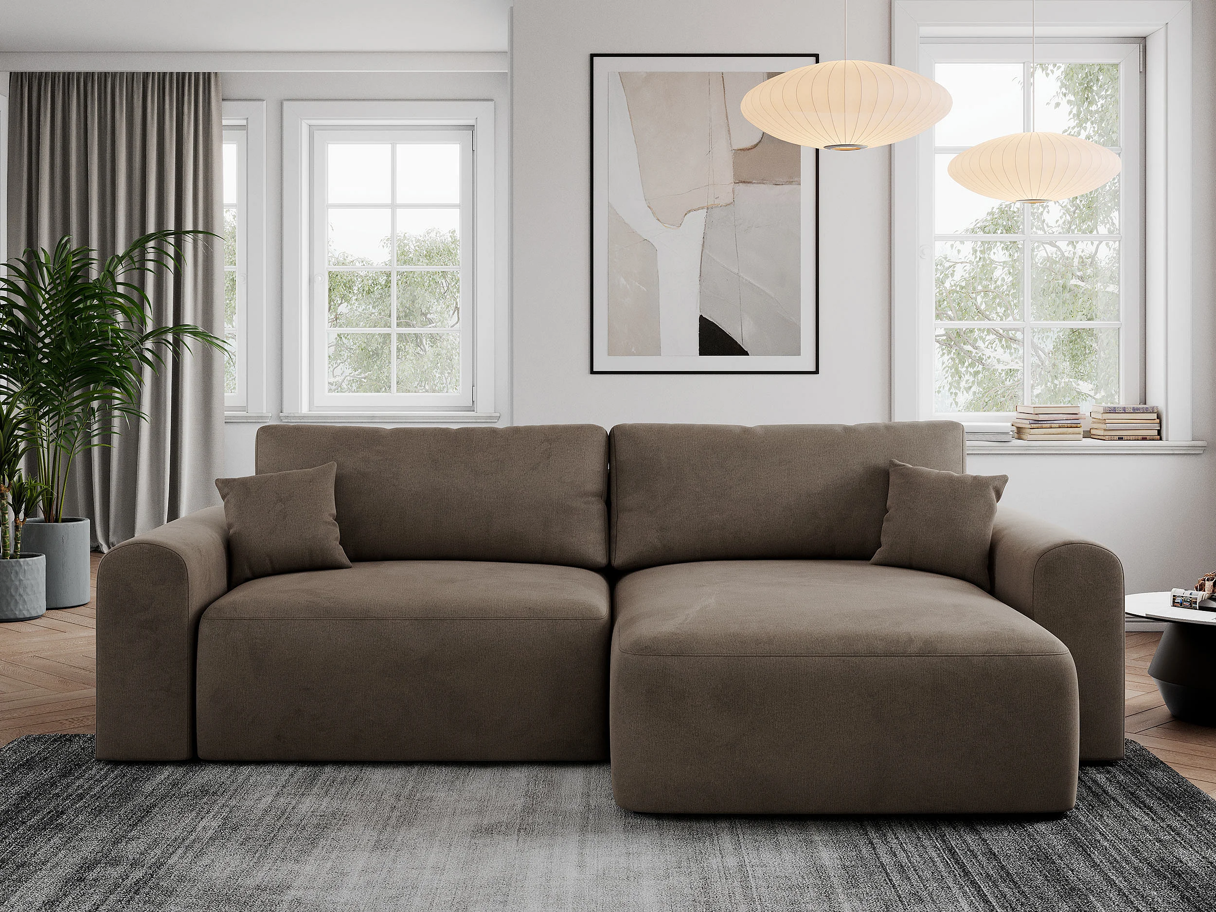 Ecksofa NELSON - Schlafcouch mit Armlehnen und Bettkasten, universelles L-förmige Ecksofa - Braun Velvet