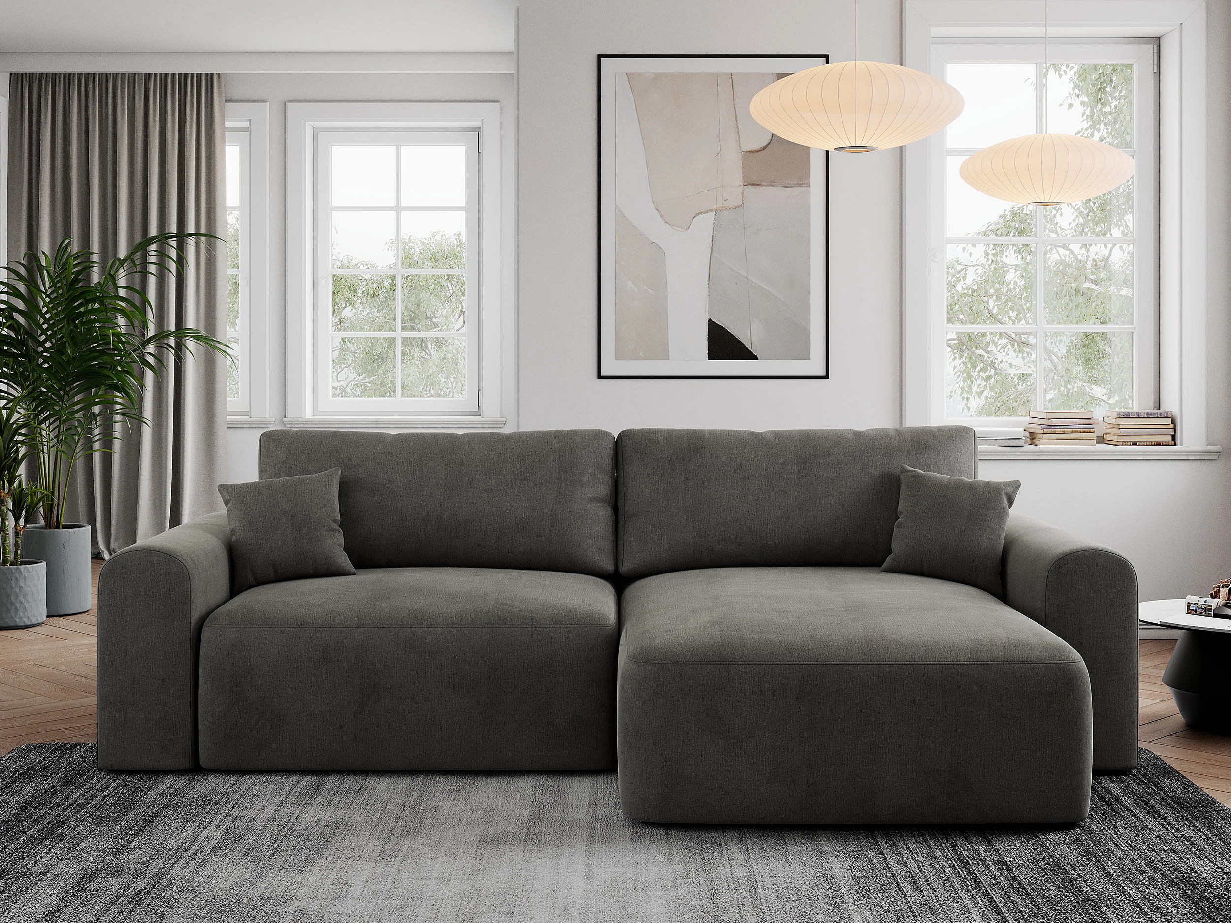 Ecksofa NELSON - Schlafcouch mit Armlehnen und Bettkasten, universelles L-förmige Ecksofa - Dunkelgrau Velvet
