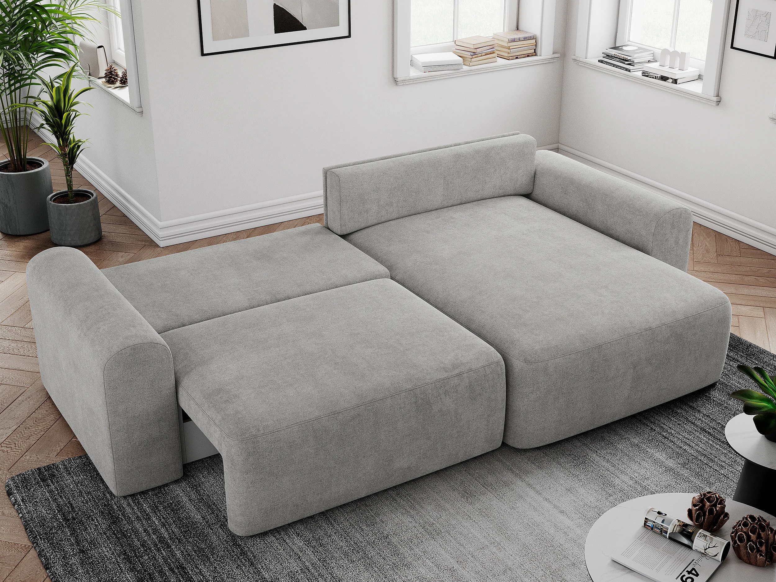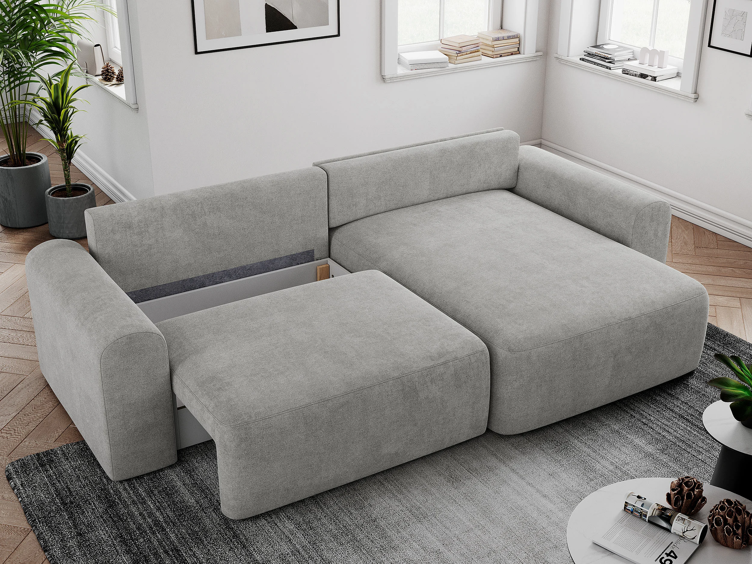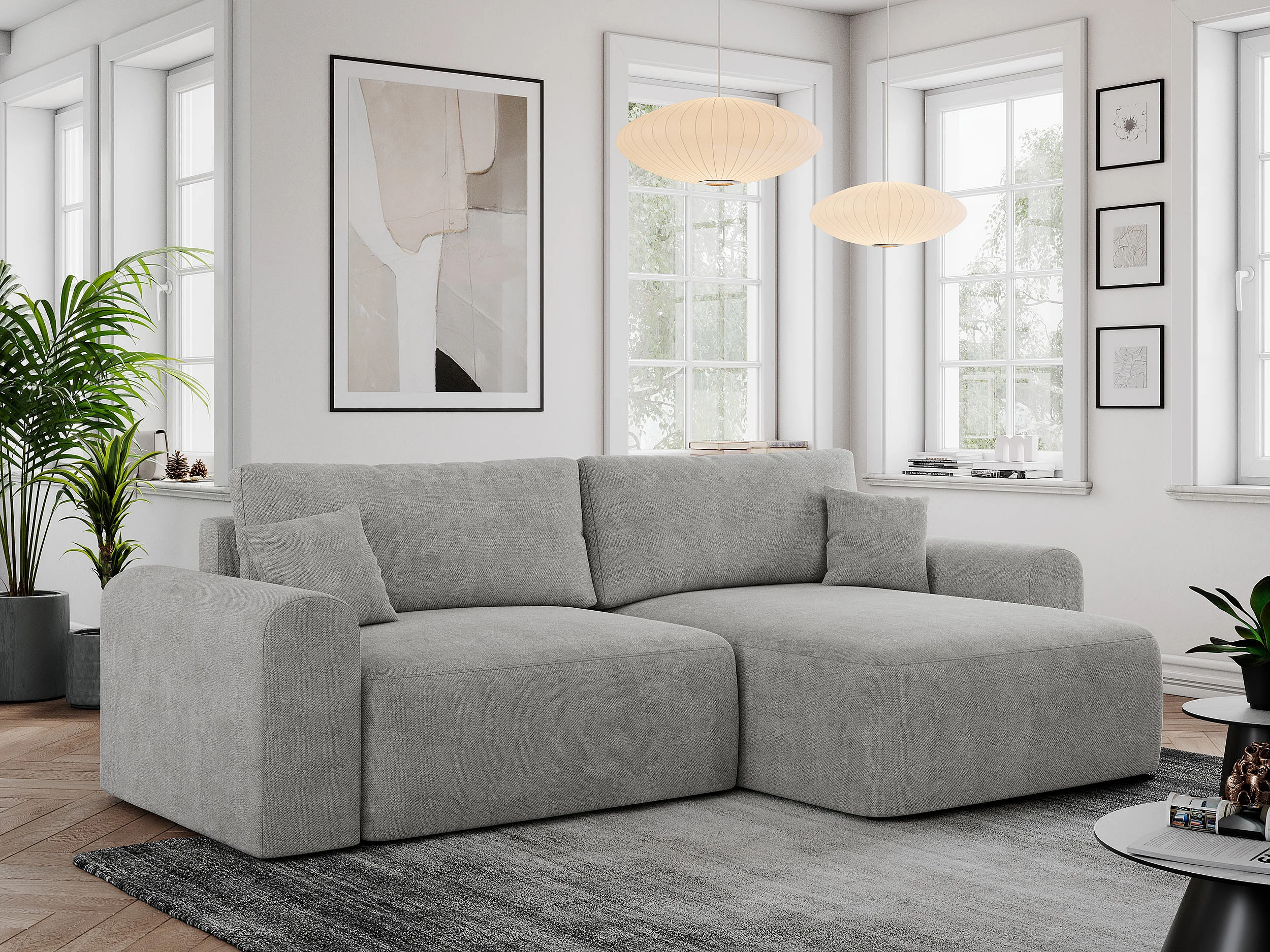 Ecksofa NELSON - Schlafcouch mit Armlehnen und Bettkasten, universelles L-förmige Ecksofa - Hellgrau Stukture