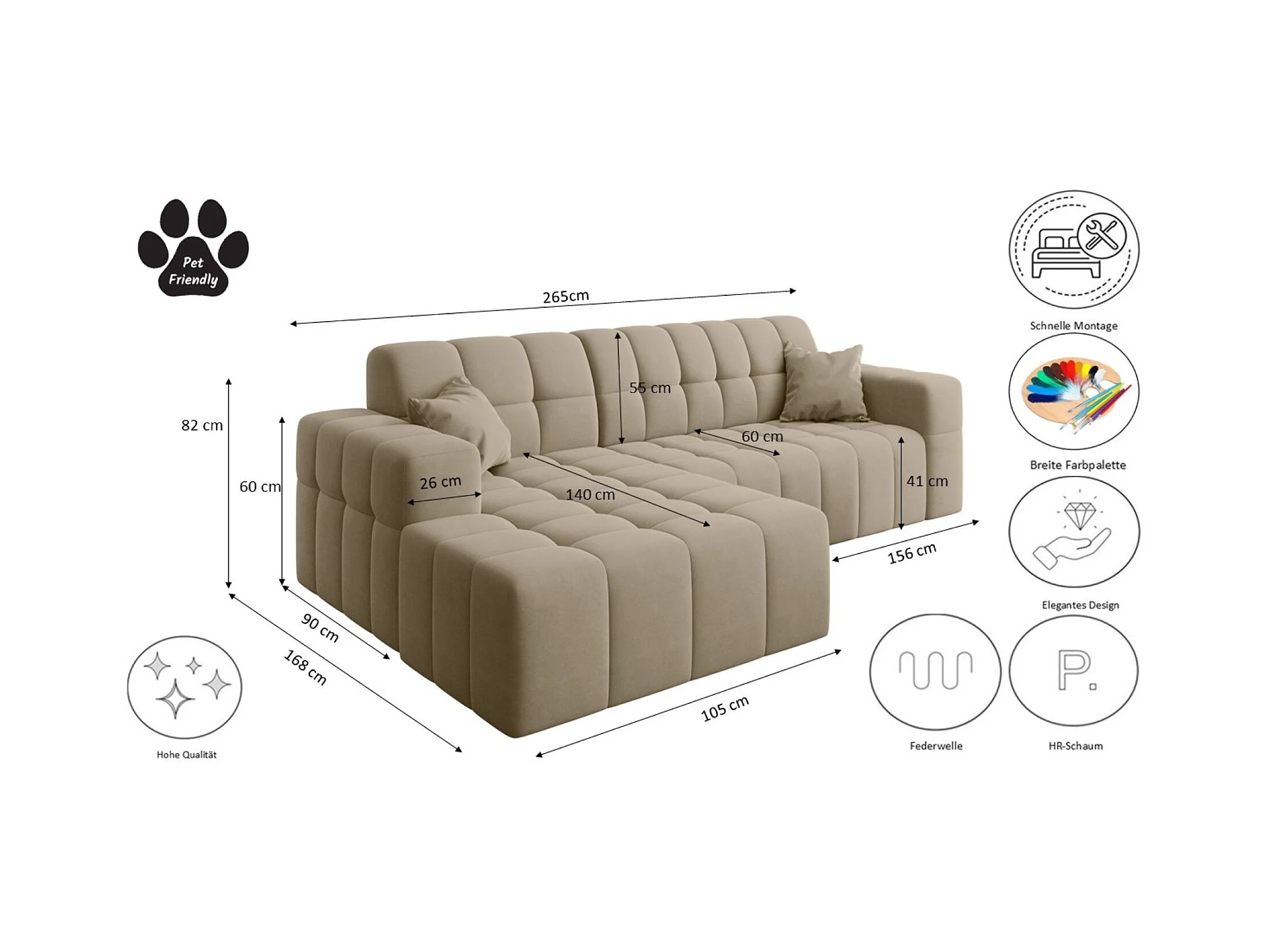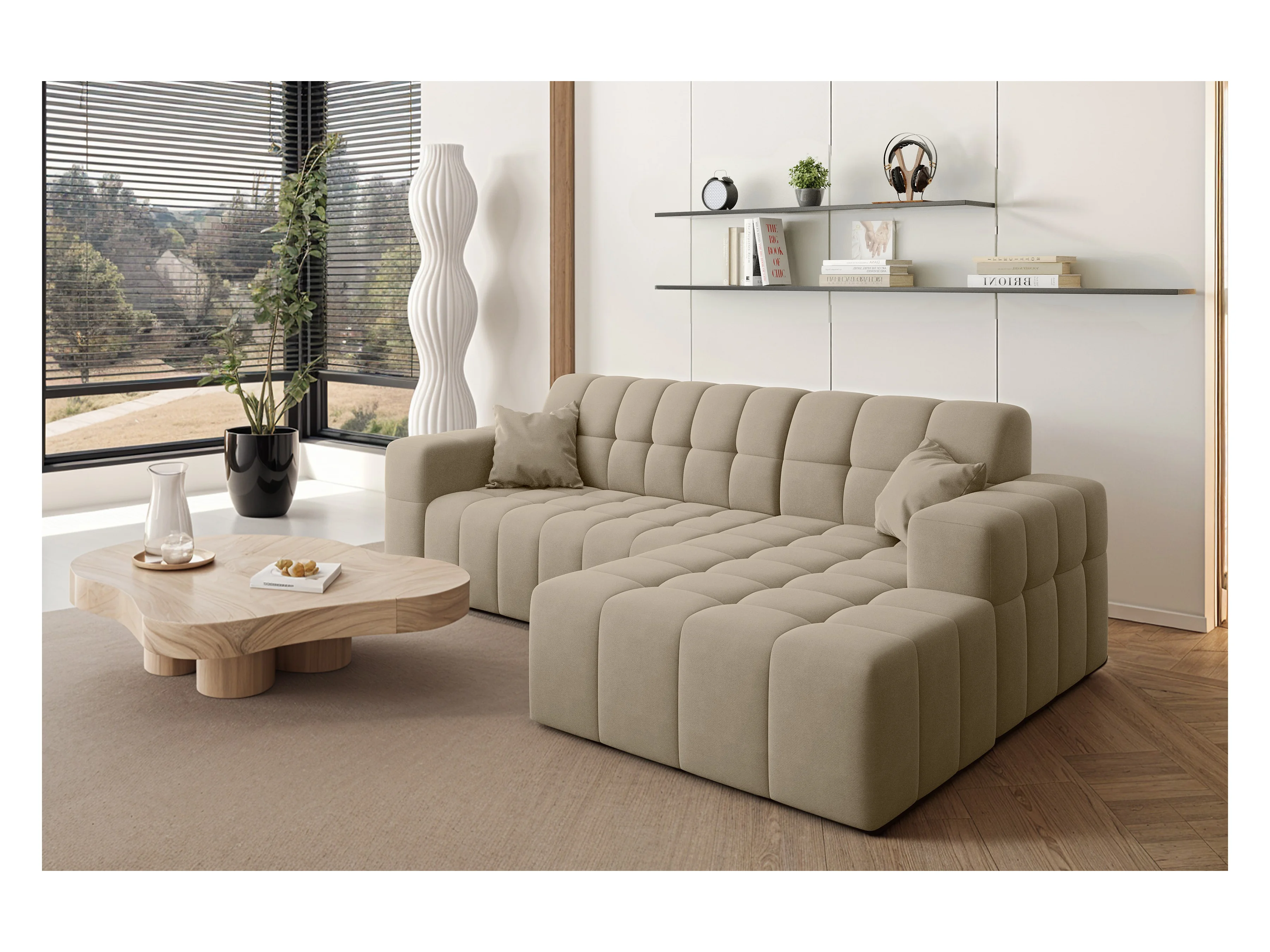 Ecksofa NIMES L-Form, Stoff Portland, Beige, Rechts