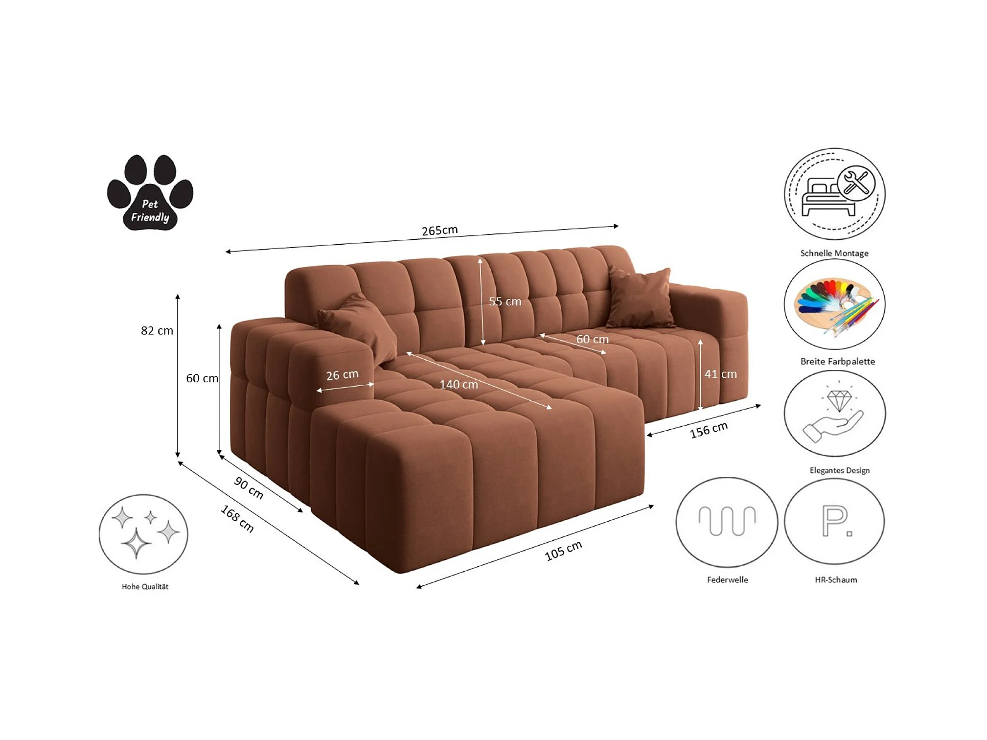 Ecksofa NIMES L-Form, Stoff Portland, Kupfer, Rechts