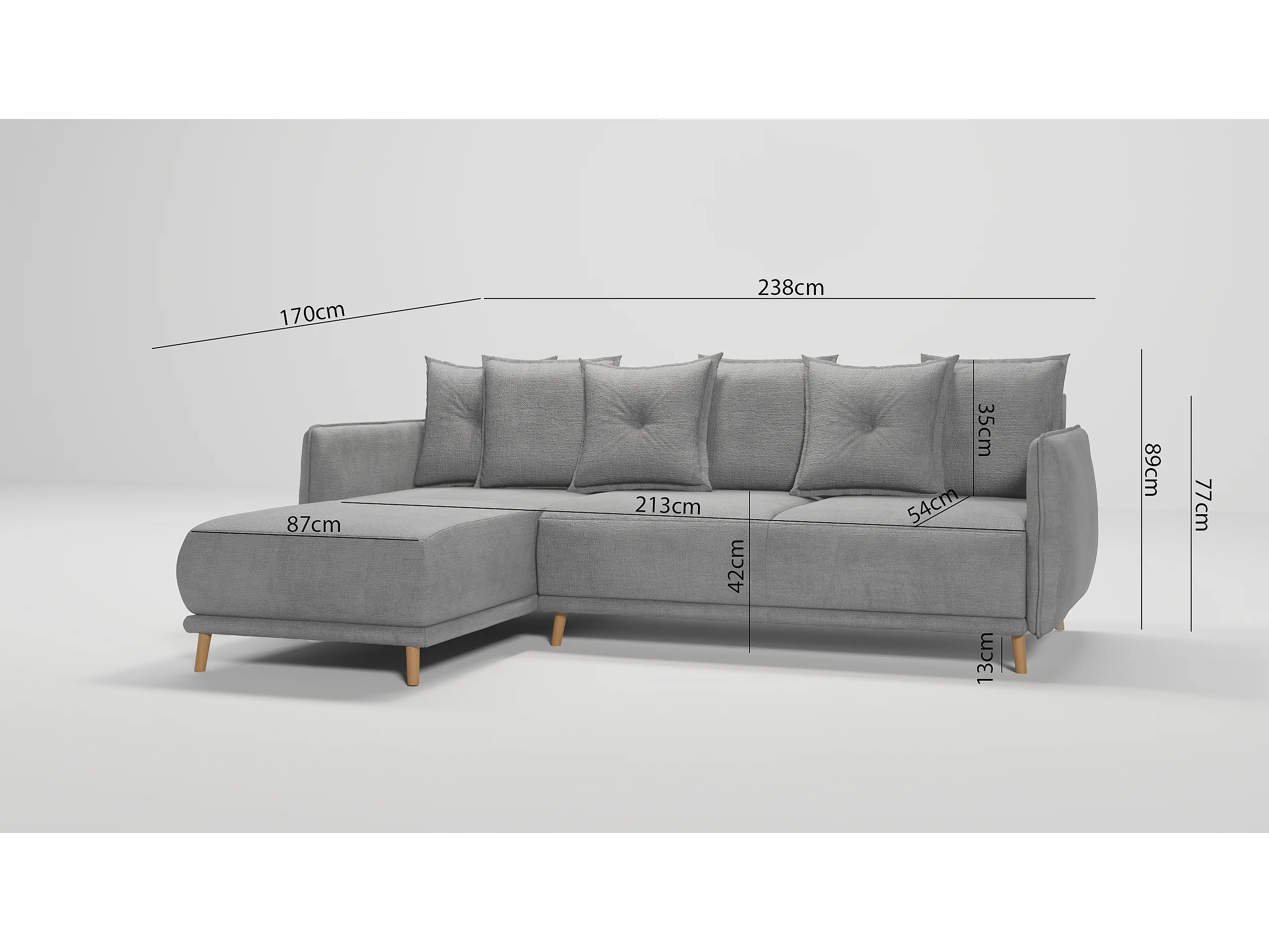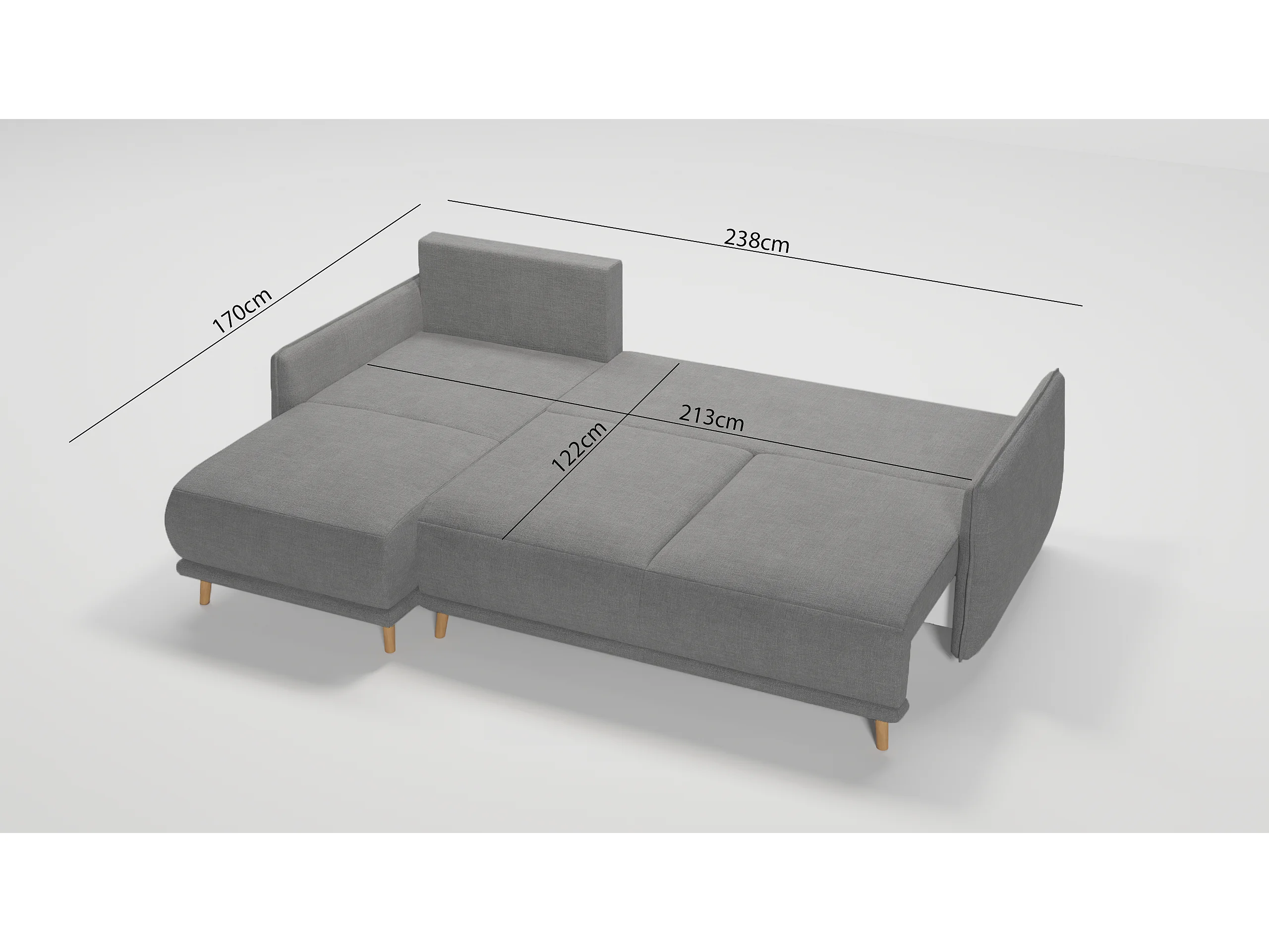 Ecksofa Noah mit Bettfunktion und Bettkasten, im skandinavischen Design