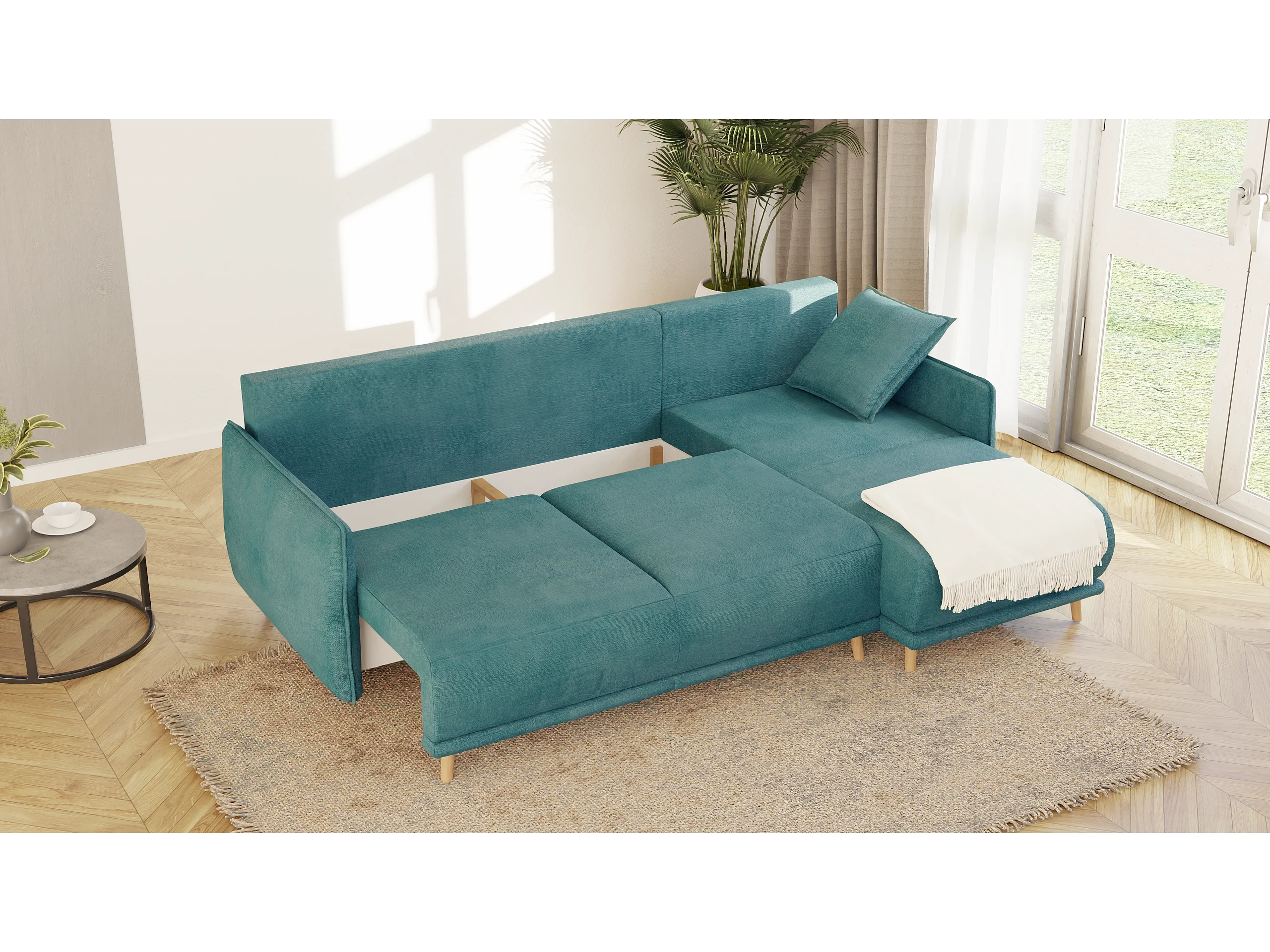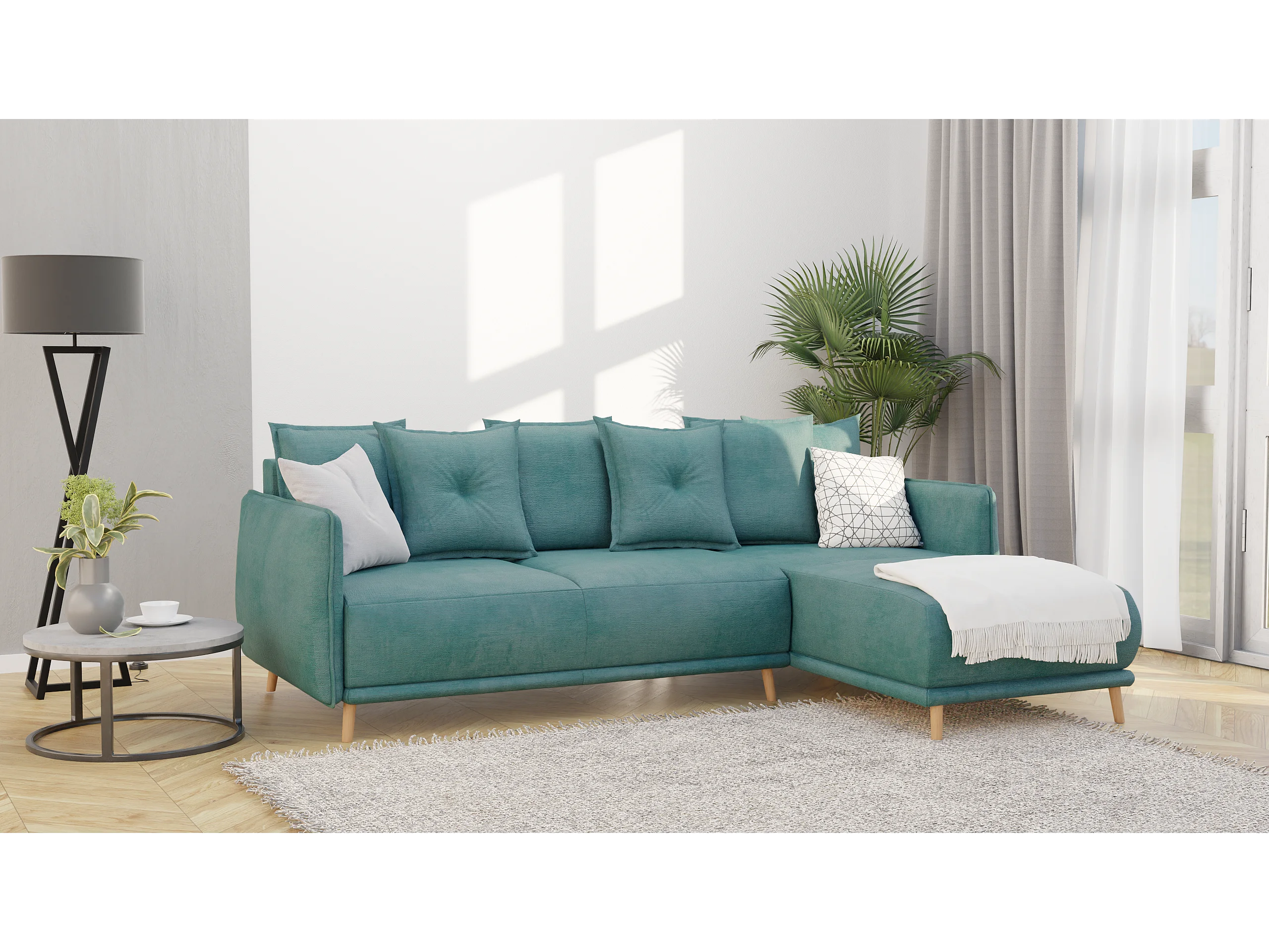 Ecksofa Noah mit Bettfunktion und Bettkasten, im skandinavischen Design