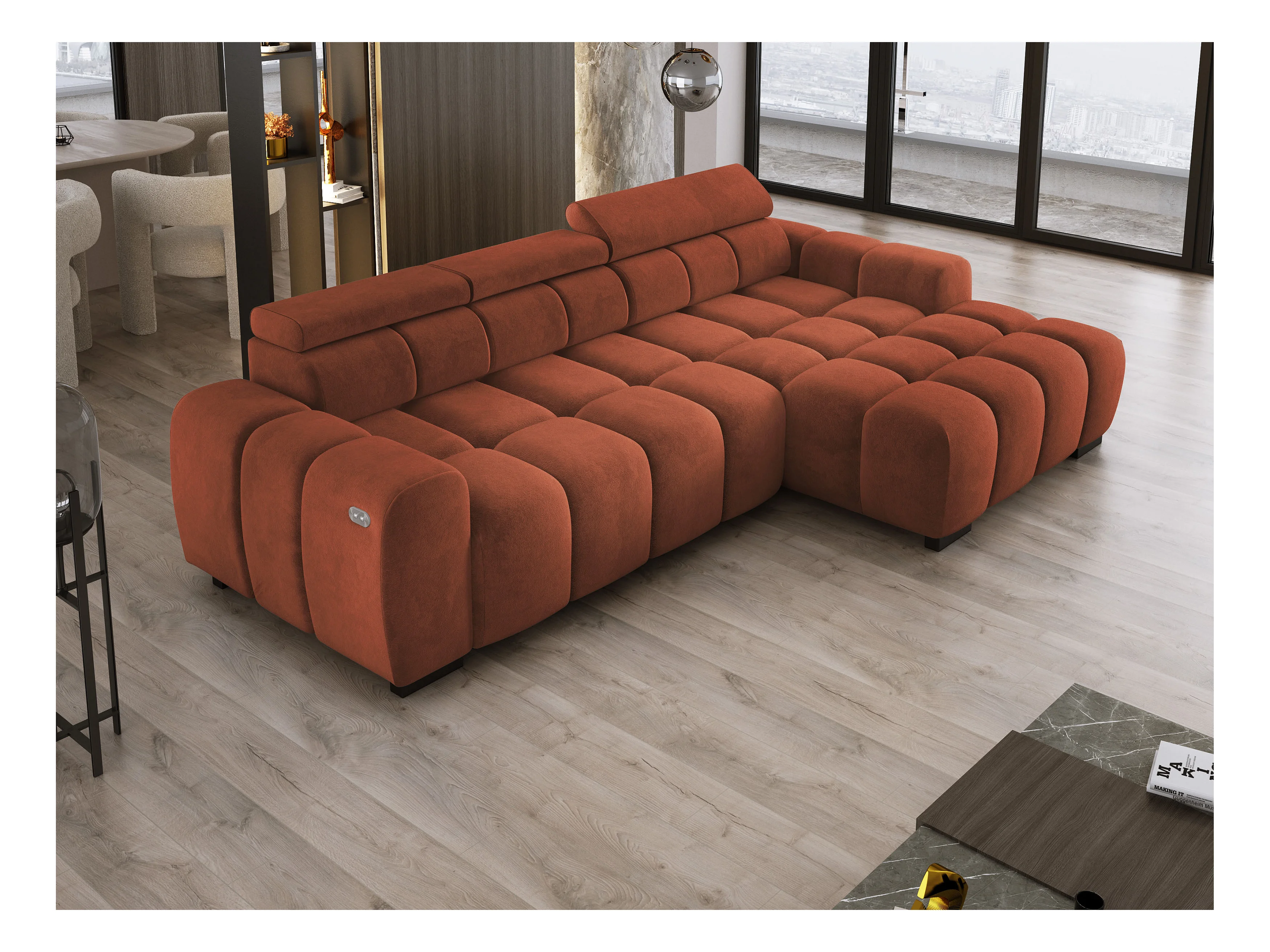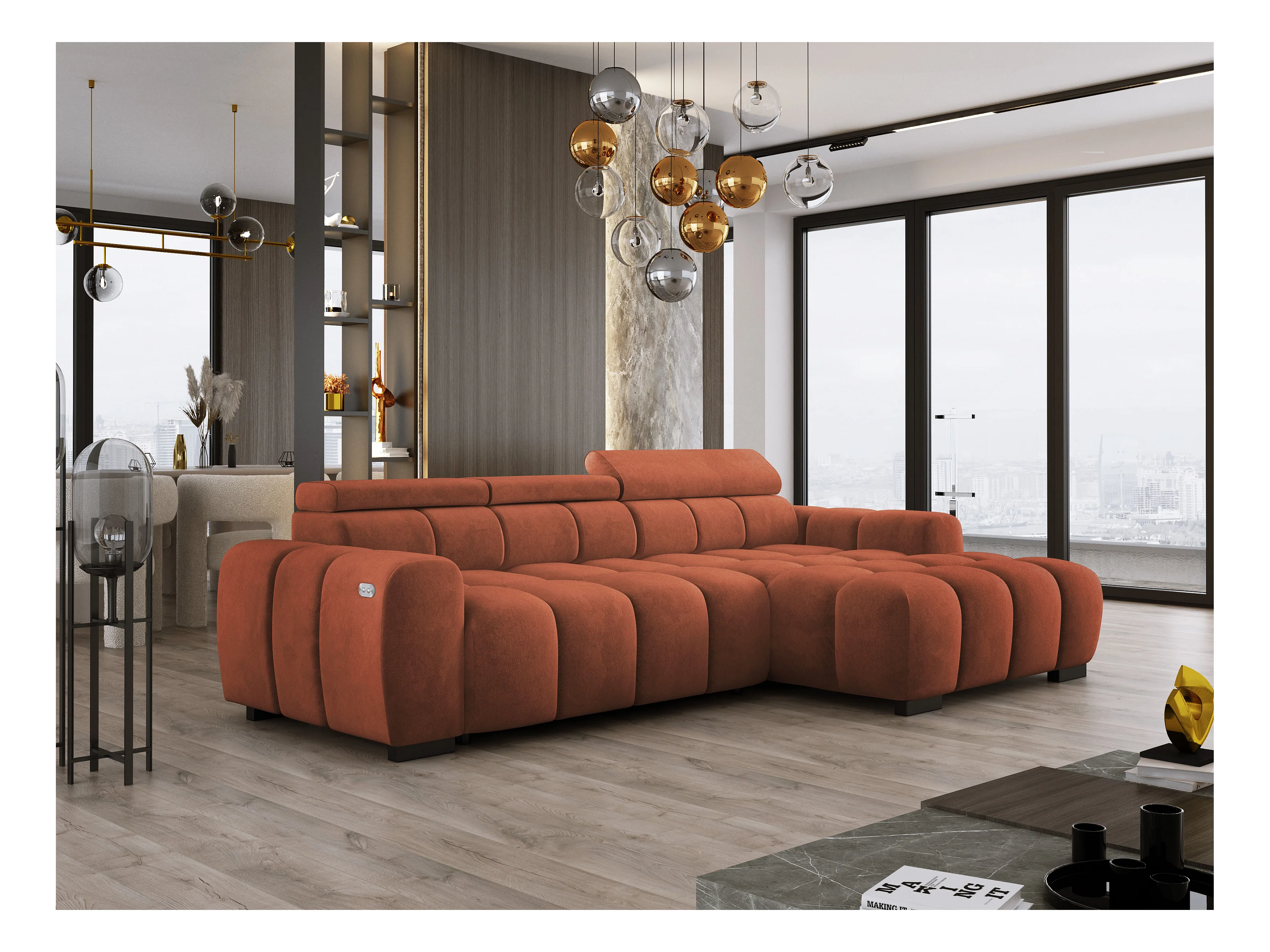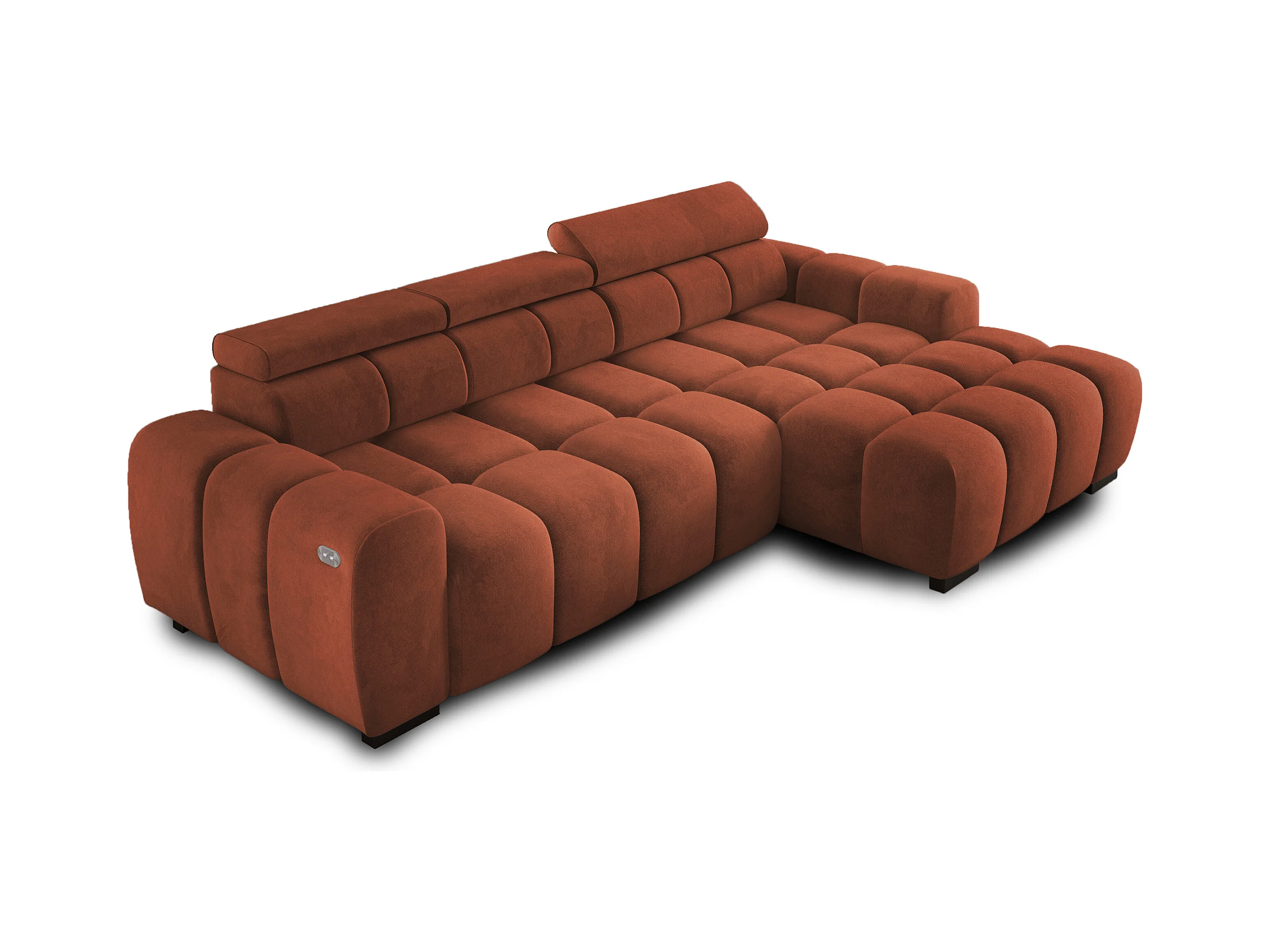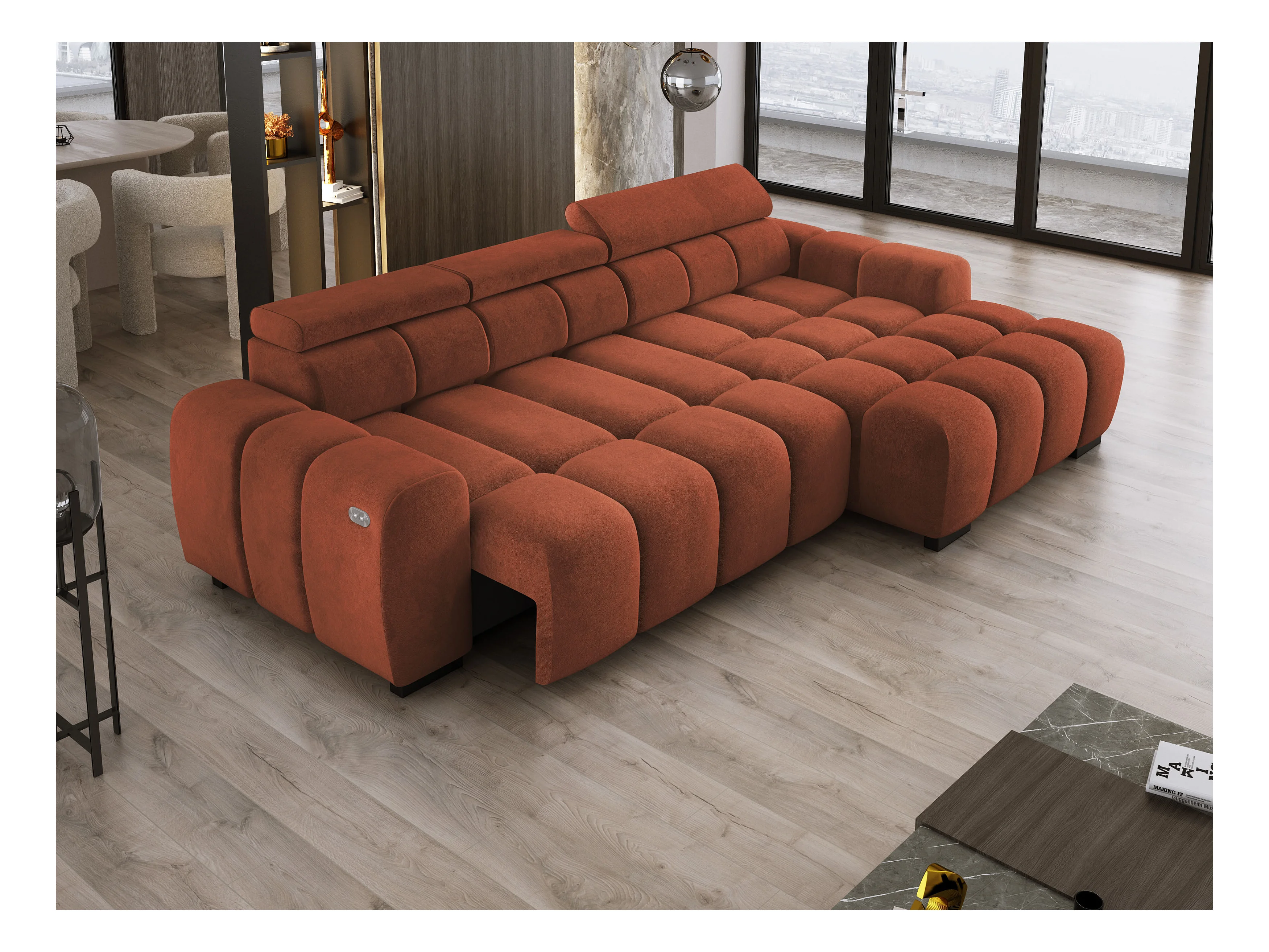Ecksofa OMBO 285x168x77/97 cm, Rechts, Schlaffunktion, elektr. Sitz, Kopfstützen, Buche dunkel, hydrophober SALVADOR-Stoff – Olivgrün