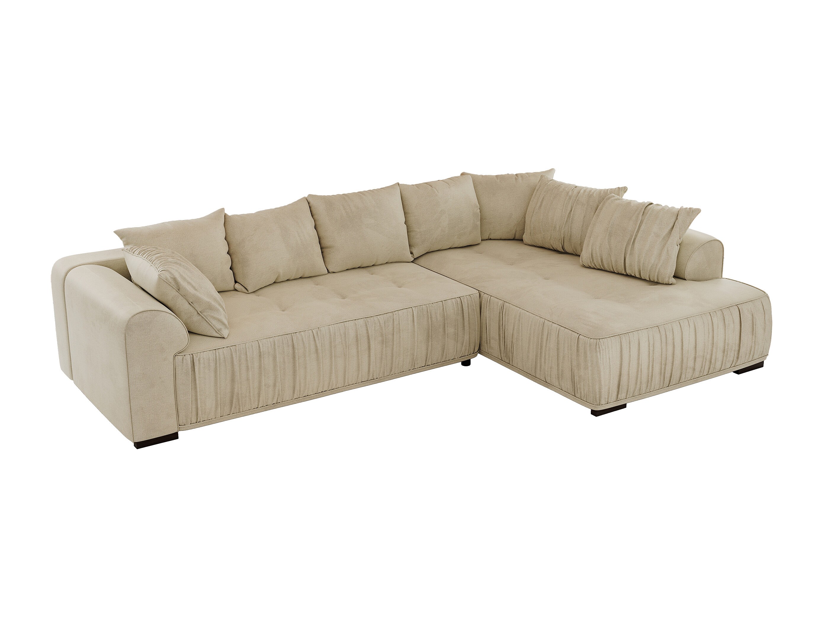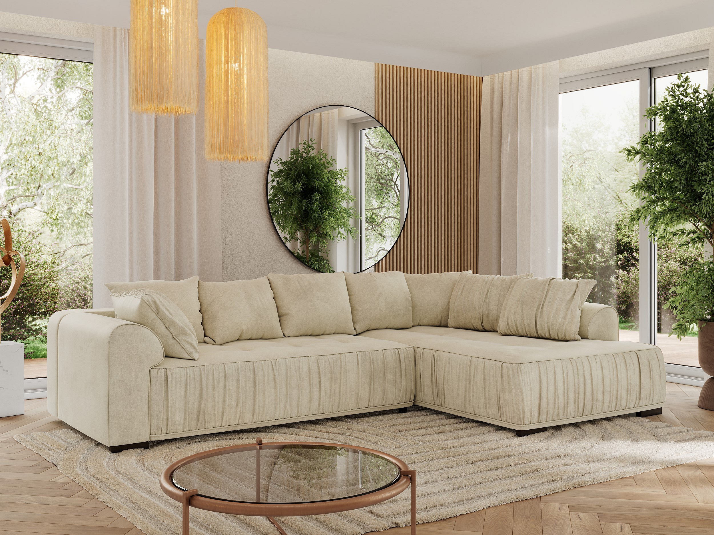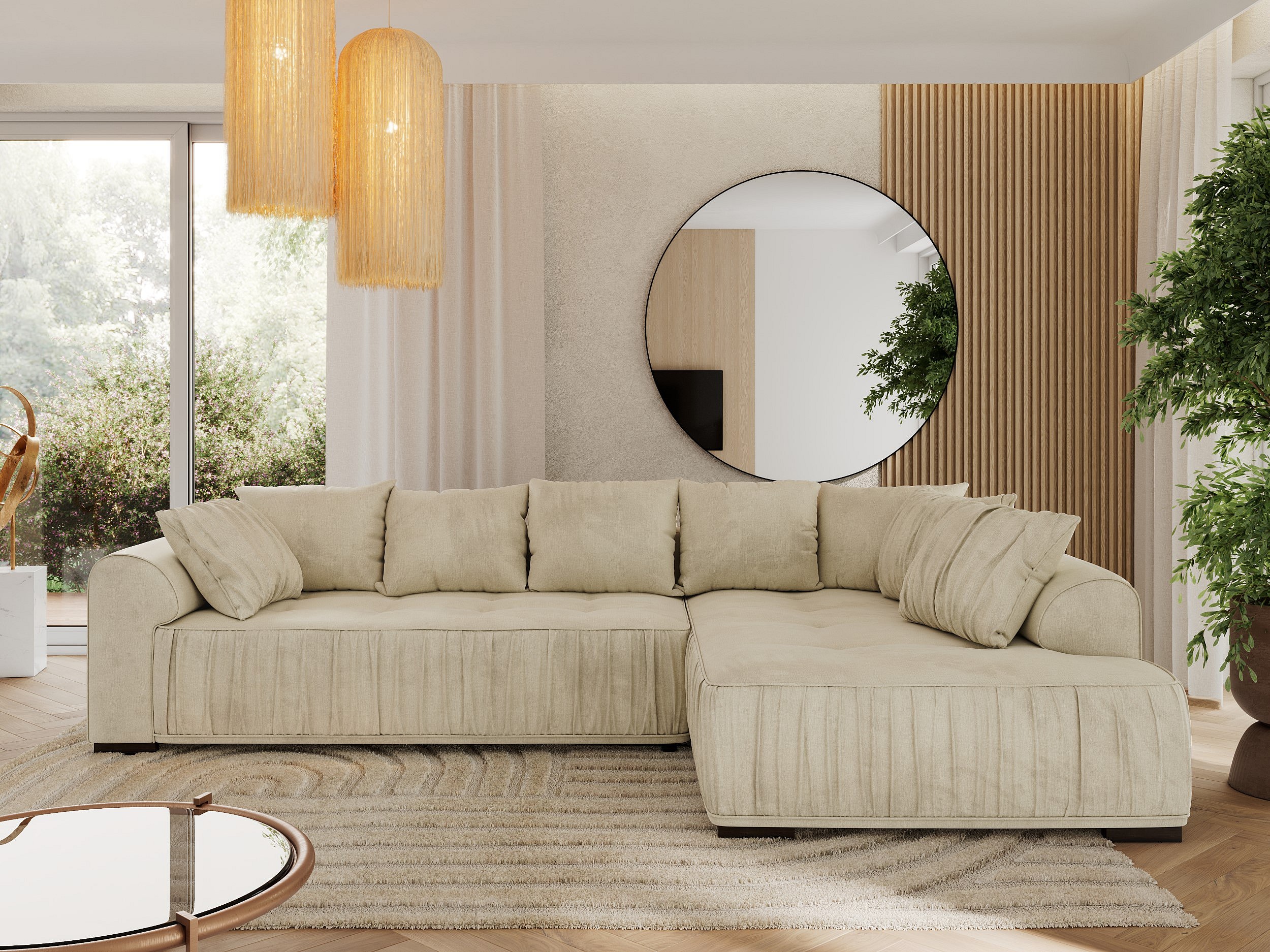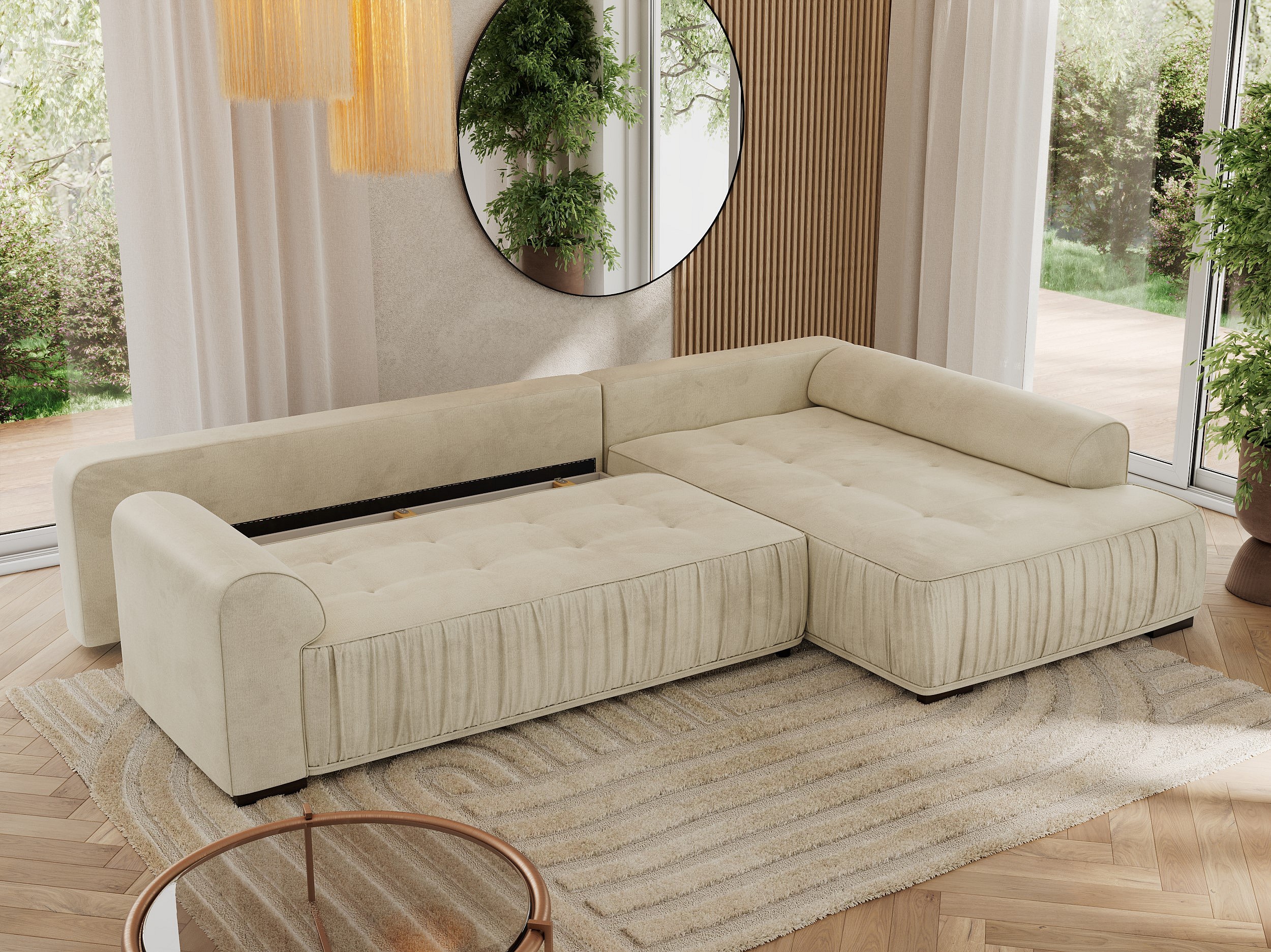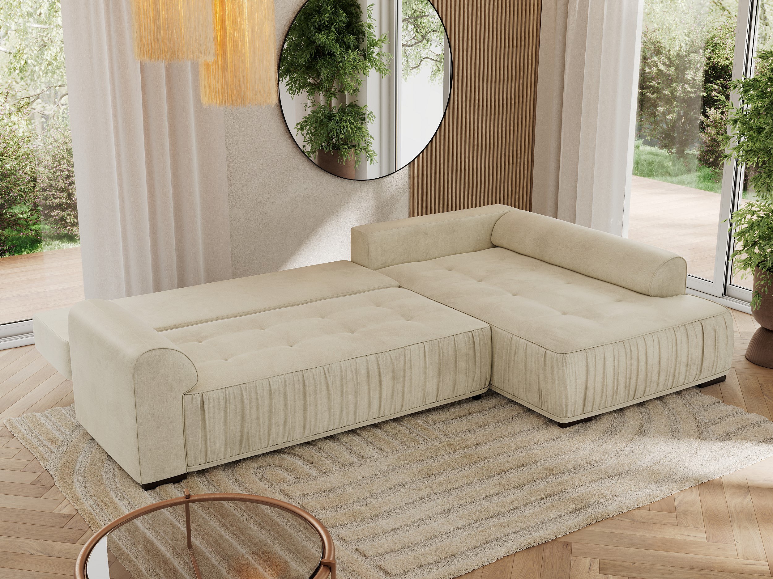 Ecksofa ORTA - Schlaffunktion und Bettkasten, lose Kissen, gesteppter Sitz, L-förmige Ecke - Beige Velvet - Ecke Rechts